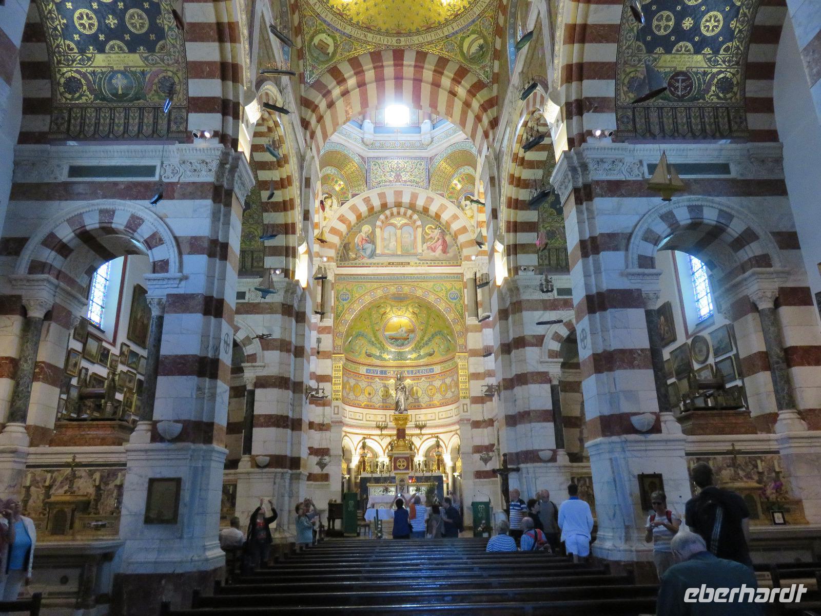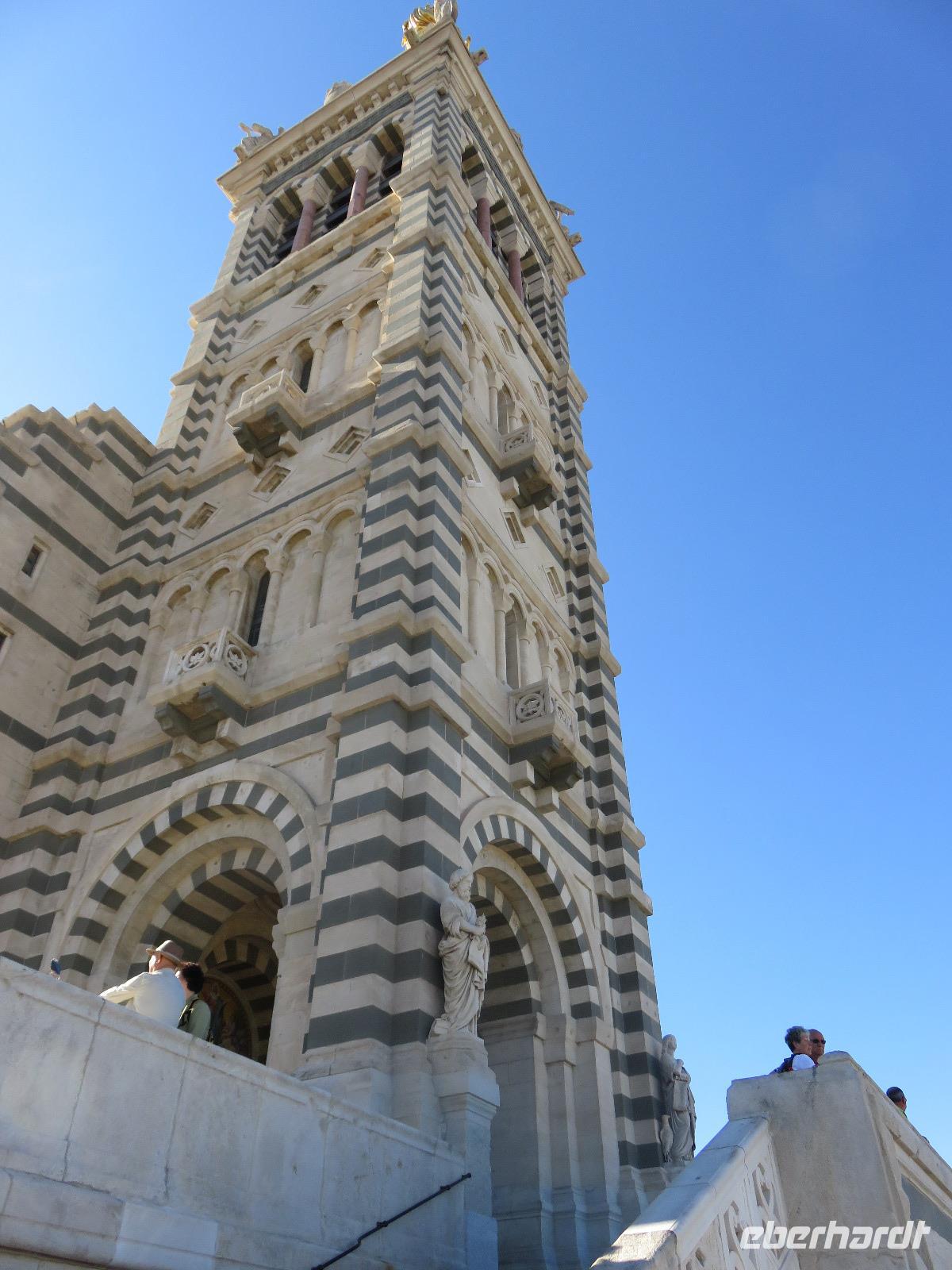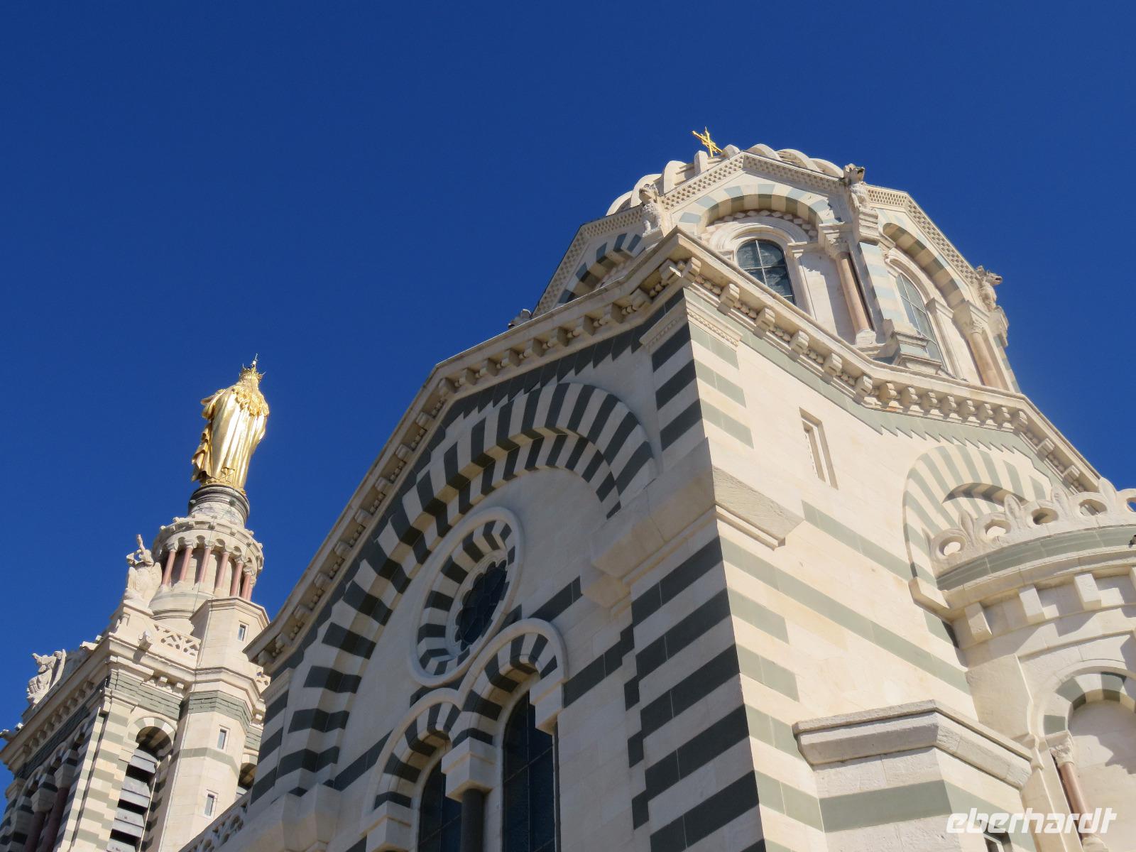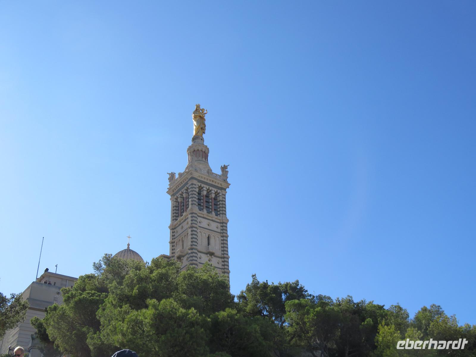 Nach einer erneut ruhigen Nacht und der Überfahrt zum Hafen von La Seyne/Toulon war die Region Provence-Alpes-Côte d'Azur unser Ziel. Erneut hatten wir unterschiedliche Ausflugsziele Toulon selbst, Aix-en-Provence und natürlich Marseille. Dafür hatte sich die Mehrzahl der Gäste unserer Gruppe entschieden. Unsere örtliche Reiseleiterin Daniele berichtete auf dem Weg in die zweitgrößte Stadt Frankreichs vom Leben in der Region, vom besonderen Licht der Provence, von der Geschichte ... darunter von der Anlandung der ersten griechischen Siedler vor rund 2.600 Jahren und immer wieder vom besonderen Charme der Region zwischen den Bergen der Pyrenäen und dem Meer, der Sonne und dem Mistral. Bald erreichten wir die Metropole des Südens, in der ca. 1 Millionen Menschen leben. In der Stadt angekommen, sahen wir sofort, dass es ein besonderer Tag ist. Überall waren Angehörige der Gendarmerie zu sehen. Es stand der Besuch von Präsident Macron an und zudem sollte es mehrere Demonstrationen geben. Zuerst fuhren wir hinauf zur Kirche Notre-Dame-de-la-Garde, die hoch über der Stadt und dem südlichen Hafen im 19. Jahrhundert erbaut wurde. Ganz oben leuchtete die fast zehn Meter hohe, vergoldete Madonna mit dem Kind in der Sonne. Wir besichtigten das imposante Kircheninnere und erfreuten uns am Blick über das Gewirr der Straßen und Gassen der Altstadt, den Hafen, das Meer und die vorgelagerten Inseln in den Buchten der Calanques, darunter zum Château d'If, der Gefängnisinsel aus dem Roman von Alexandre Dumas Der Graf von Monte Christo. Nach unserer Abfahrt in die Altstadt fuhren wir vorbei an der Kathedrale La Major. Unweit des Alten Hafens stiegen wir aus und verbrachten etwas Freizeit. Leider waren große Teile des Areals heute nicht zu besichtigen. Dann eben eine Erfrischung und ein kurzer Bummel zum Fischmarkt. Während der Ausfahrt aus Marseille berichtete Daniele von der Legende um die heilige Marien, die mit einem Schiff ohne Segel und Steuerruder 45 - 45 nach Christus in Saintes-Maries-de-la-Mer gestrandet sein sollen. Maria Jakobäa, Maria Salome und Maria Magdalena missionierten die Bevölkerung. Wir sahen einen Brunnen der daran erinnert.Zurück an Bord wärmten wir uns in der milden Sonne - es war Zeit zum Erholen und Relaxen. Am Abend lockte dann die zweite Poolparty, wieder zeigten sich am Himmel dicke Wolken, sollten wir wieder kein Glück haben ...