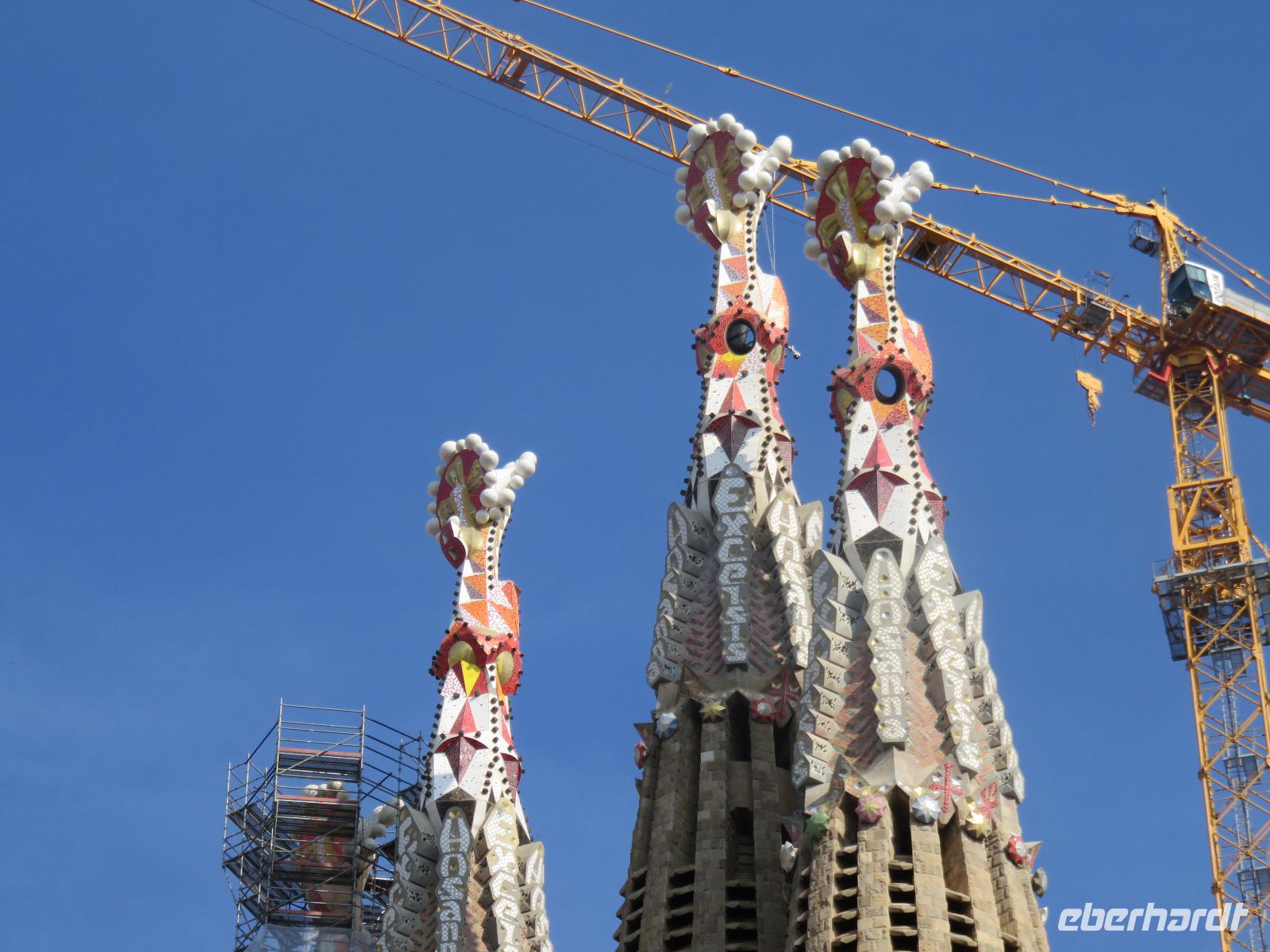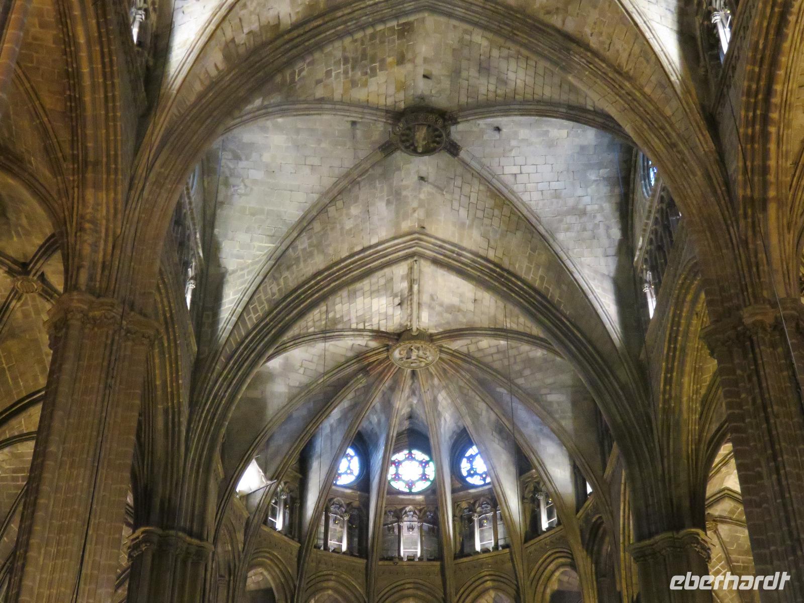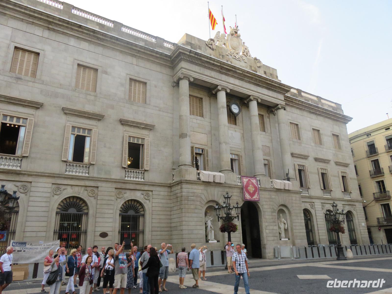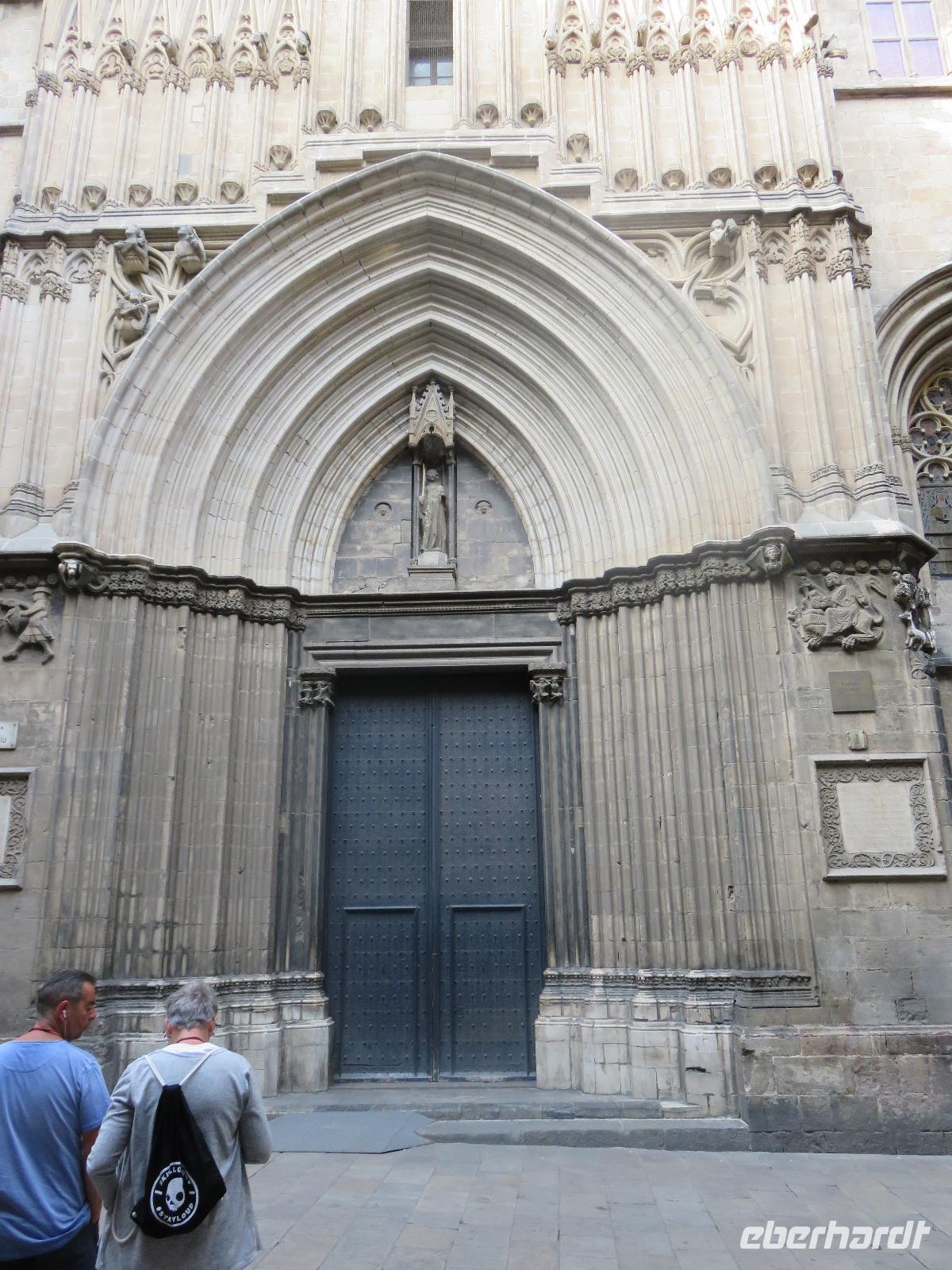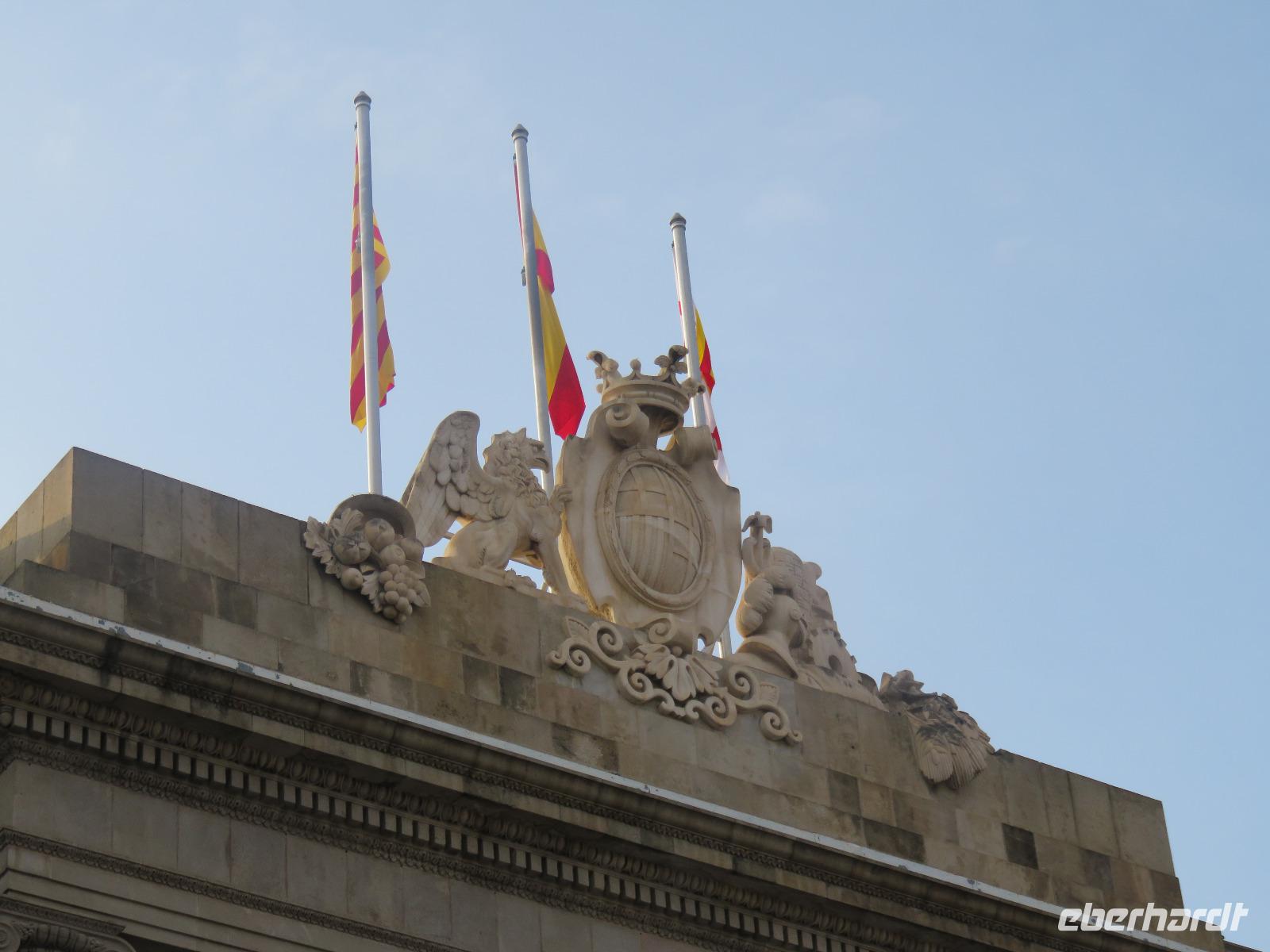 Wieder zeigte sich die Sonne vom fast wolkenlosen Himmel. Wir trafen uns im Theater und die Mehrzahl der Gäste unserer Gruppe begab sich auf die Besichtigungstour in der Hauptstadt Kataloniens. Mit Joke, einer Holländerin, spazierten wir zuerst durch die Altstadt mit dem Barri Gòtic, dem Gotischen Viertel, zur gewaltigen Kathedrale Santa Eulàlia, die wir auch von Innen besichtigten. Im Chorgestühl sahen wir die Wappen der Ritter des Goldenen Vlieses, im Kreuzgang sahen wir die berühmte Gänse, die an die Legende der Heiligen Eulalia erinnern. Vorbei an der alten Stadtmauer und dem Äquadukt, der alten römischen Wasserleitung, erreichten wir den Katalanischen Platz. Nun fuhren wir zu Sagrada Familie, dem Hauptwahrzeichen von Barcelona. Schon am Vorabend eindrucksvoll präsentierte sich nun das Bauwerk im Stil der Modernisme mit einer bereits bunten Fassade, auch wenn die Haupttürme noch fehlen! Joke erläuterte einzelne Elemente der Fassaden und wir kamen erneut ins Staunen über die Fülle an Darstellungen und die Phantasie Gaudís. Einzigartig, wie es Architekten gegenwärtig umsetzen und arrangieren.