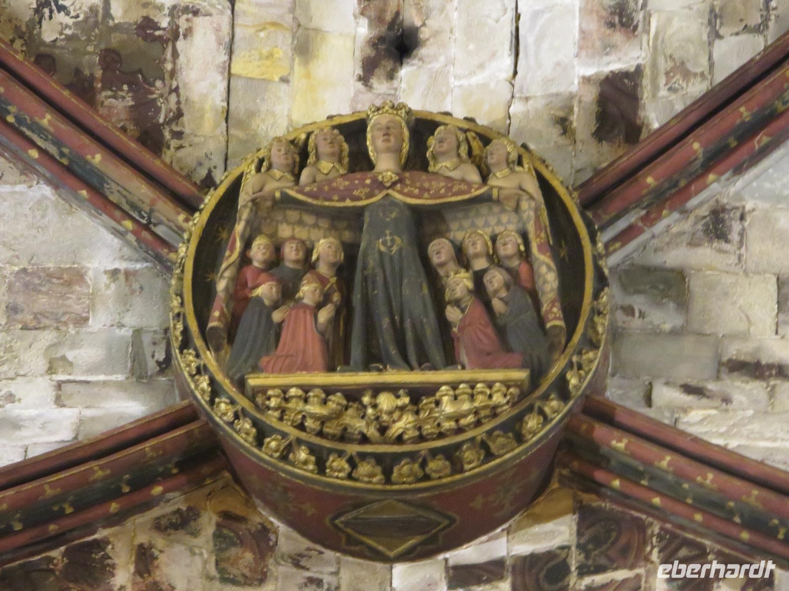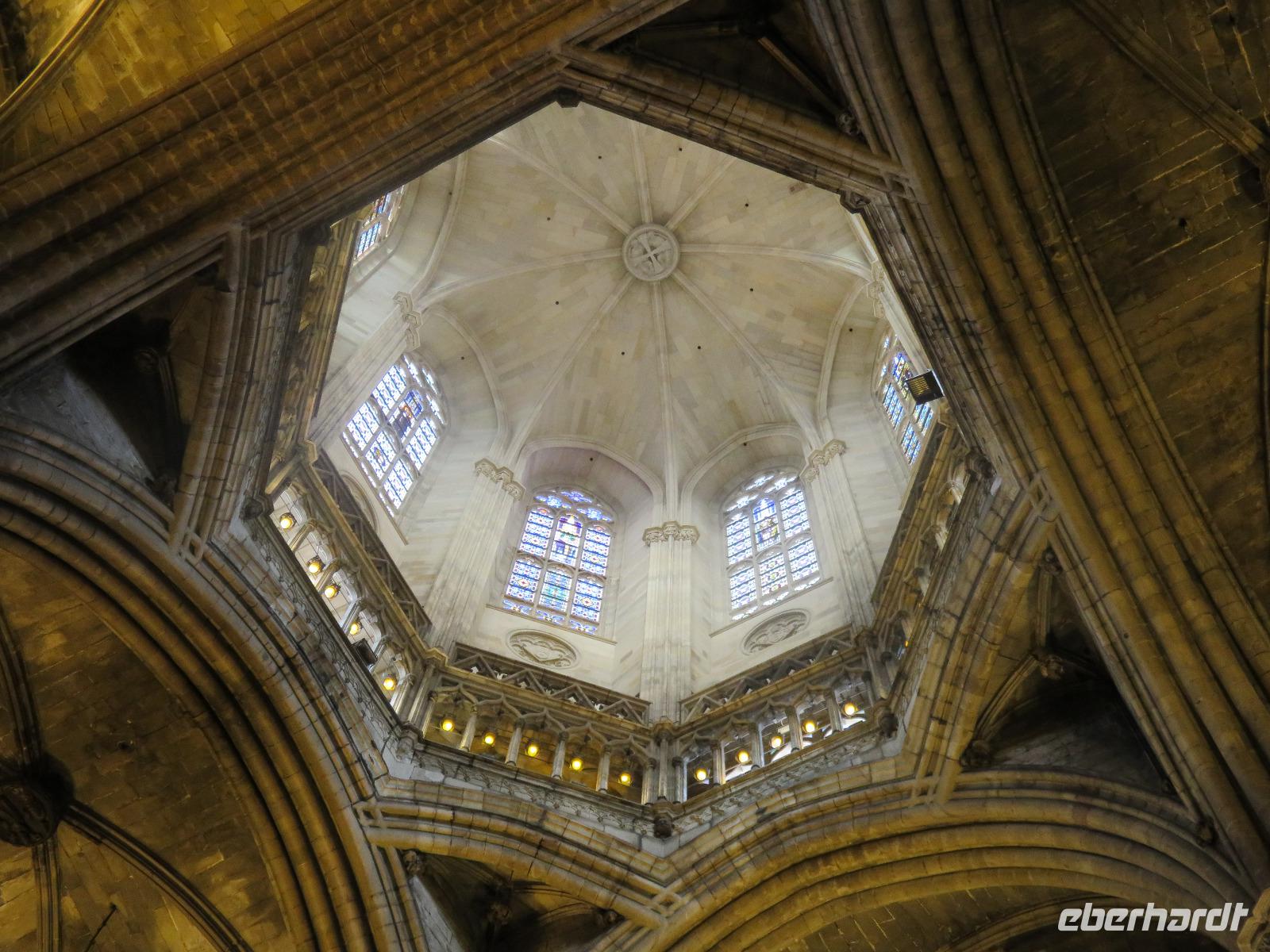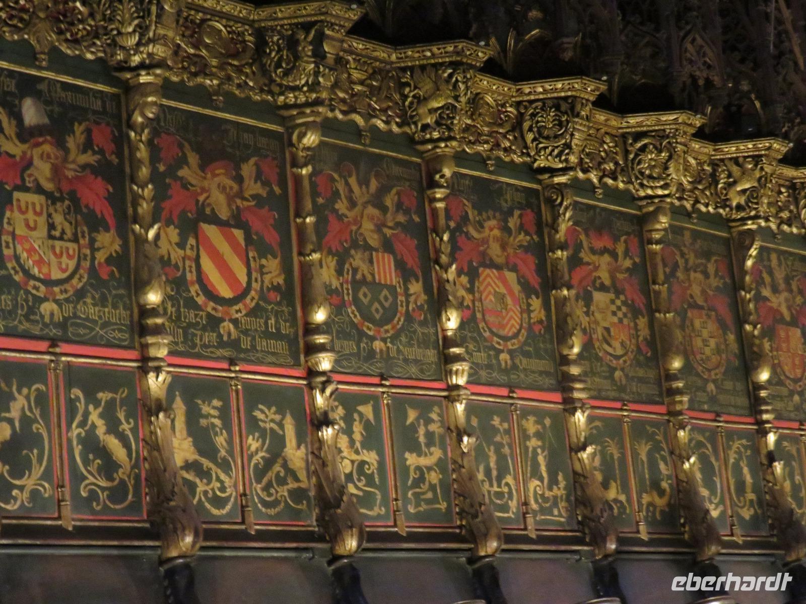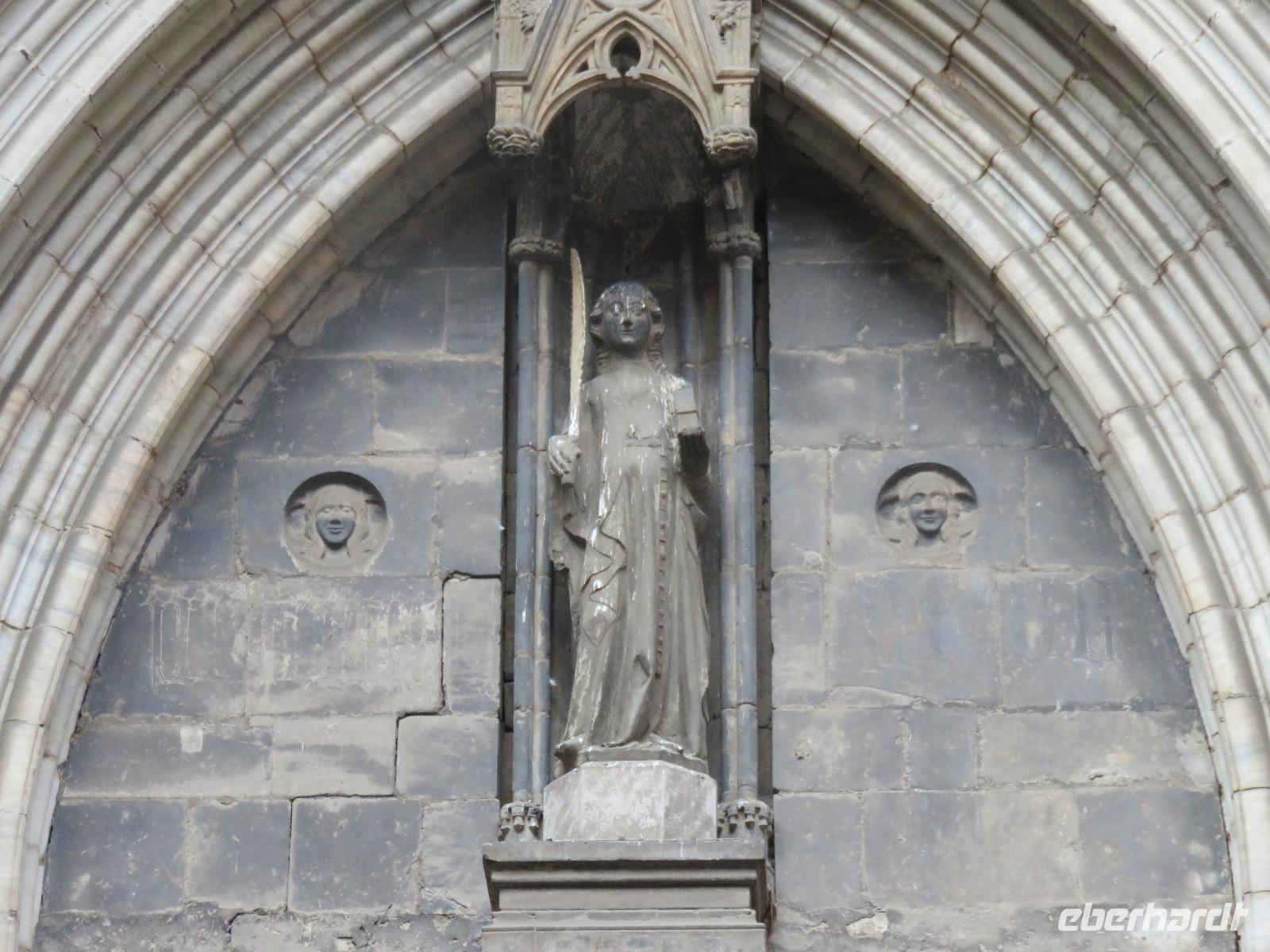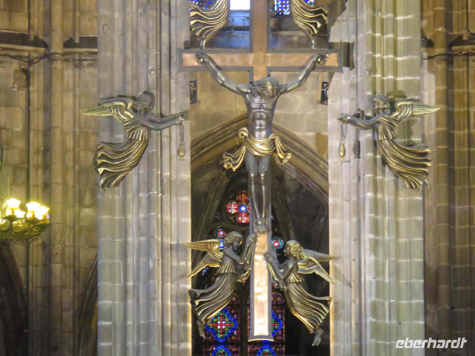 Wieder zeigte sich die Sonne vom fast wolkenlosen Himmel. Wir trafen uns im Theater und die Mehrzahl der Gäste unserer Gruppe begab sich auf die Besichtigungstour in der Hauptstadt Kataloniens. Mit Joke, einer Holländerin, spazierten wir zuerst durch die Altstadt mit dem Barri Gòtic, dem Gotischen Viertel, zur gewaltigen Kathedrale Santa Eulàlia, die wir auch von Innen besichtigten. Im Chorgestühl sahen wir die Wappen der Ritter des Goldenen Vlieses, im Kreuzgang sahen wir die berühmte Gänse, die an die Legende der Heiligen Eulalia erinnern. Vorbei an der alten Stadtmauer und dem Äquadukt, der alten römischen Wasserleitung, erreichten wir den Katalanischen Platz. Nun fuhren wir zu Sagrada Familie, dem Hauptwahrzeichen von Barcelona. Schon am Vorabend eindrucksvoll präsentierte sich nun das Bauwerk im Stil der Modernisme mit einer bereits bunten Fassade, auch wenn die Haupttürme noch fehlen! Joke erläuterte einzelne Elemente der Fassaden und wir kamen erneut ins Staunen über die Fülle an Darstellungen und die Phantasie Gaudís. Einzigartig, wie es Architekten gegenwärtig umsetzen und arrangieren.