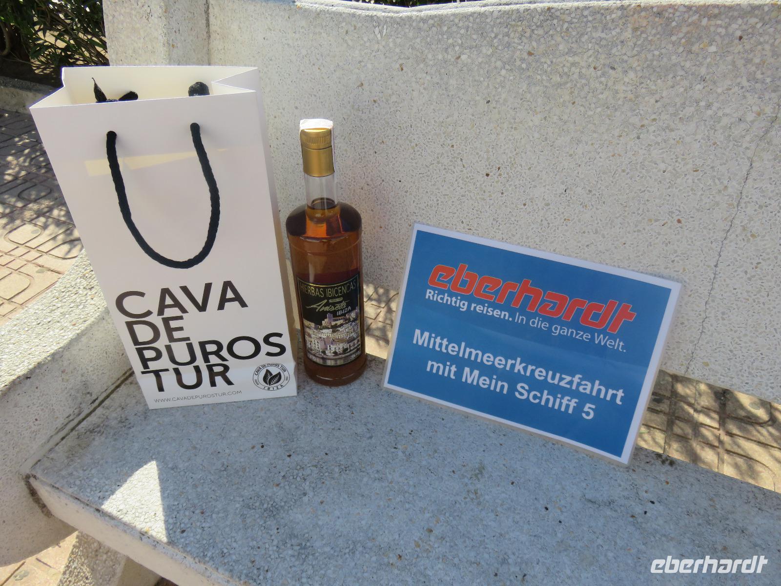 Nun gingen wir ein Stück hinab und blickten in einen der Innenhöfe. In einem kleinen Geschäft verkaufte ein Aussteiger der Flower-Power-Bewegung, ein netter, älterer Herr. Im Hafen stießen wir einem Hierbas, einem Kräuterlikör, auf unsere Reise an. Wir spürten die Sonne und Gesundheit auf der Zunge. Jede Familie soll auf Ibiza ihr Rezept haben und die Extrakte verschiedenster Kräuter und Pflanzen verwenden: Fenchel, Thymian, Rosmarin, Zitronenstrauch, Lavendel, Weinraute, Eucalyptus, Kamille, Wacholderbeeren, Oregano, Minze, Blätter und Schale von Zitronen und Orangen, Salbei, Sternanis .... Zudem erfreuten wir uns an unserem Gruppenbild, eine nette Erinnerung an unsere Reise. Zurück an Bord hieß es nun Koffer packen, ein letztes Abendessen in den Bordrestaurant ...