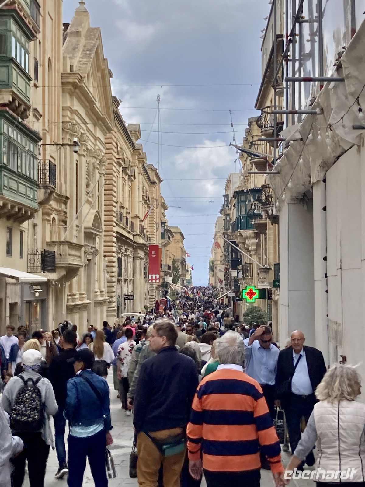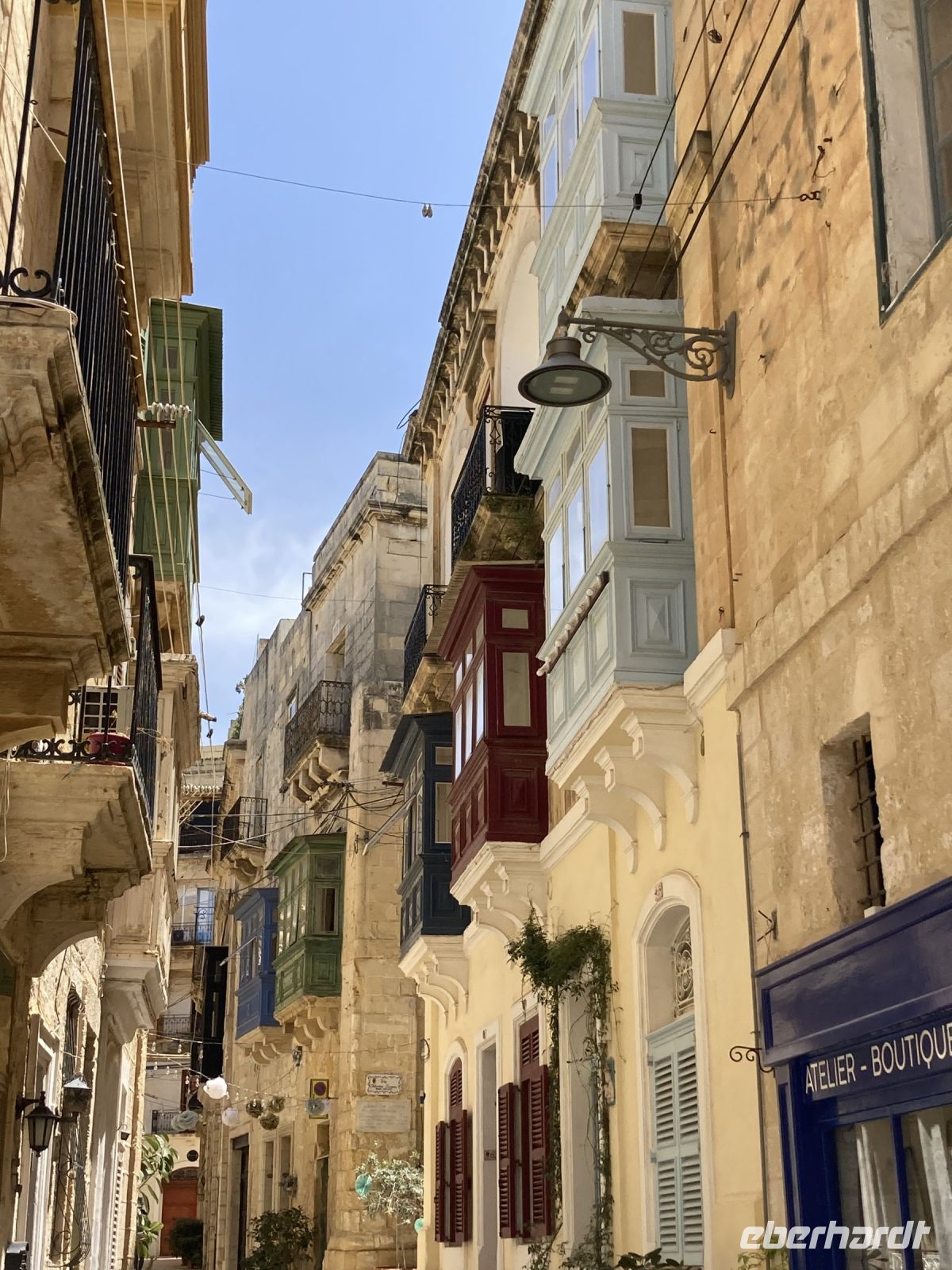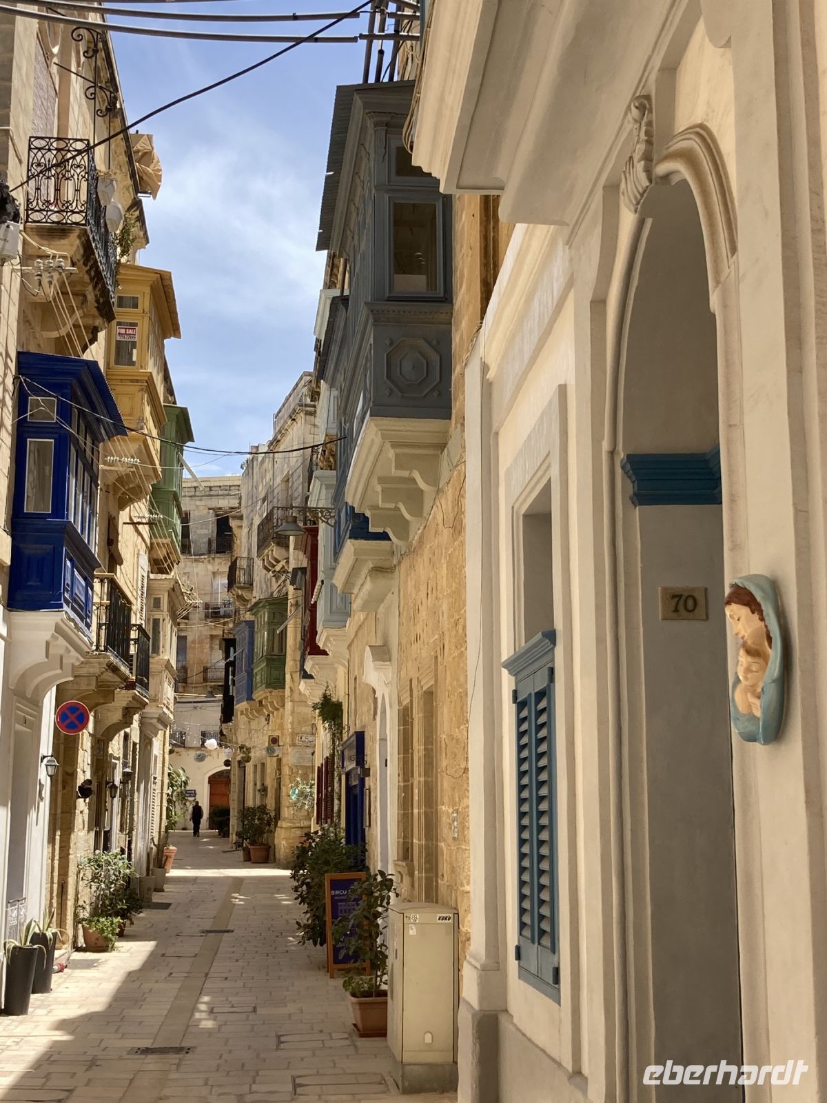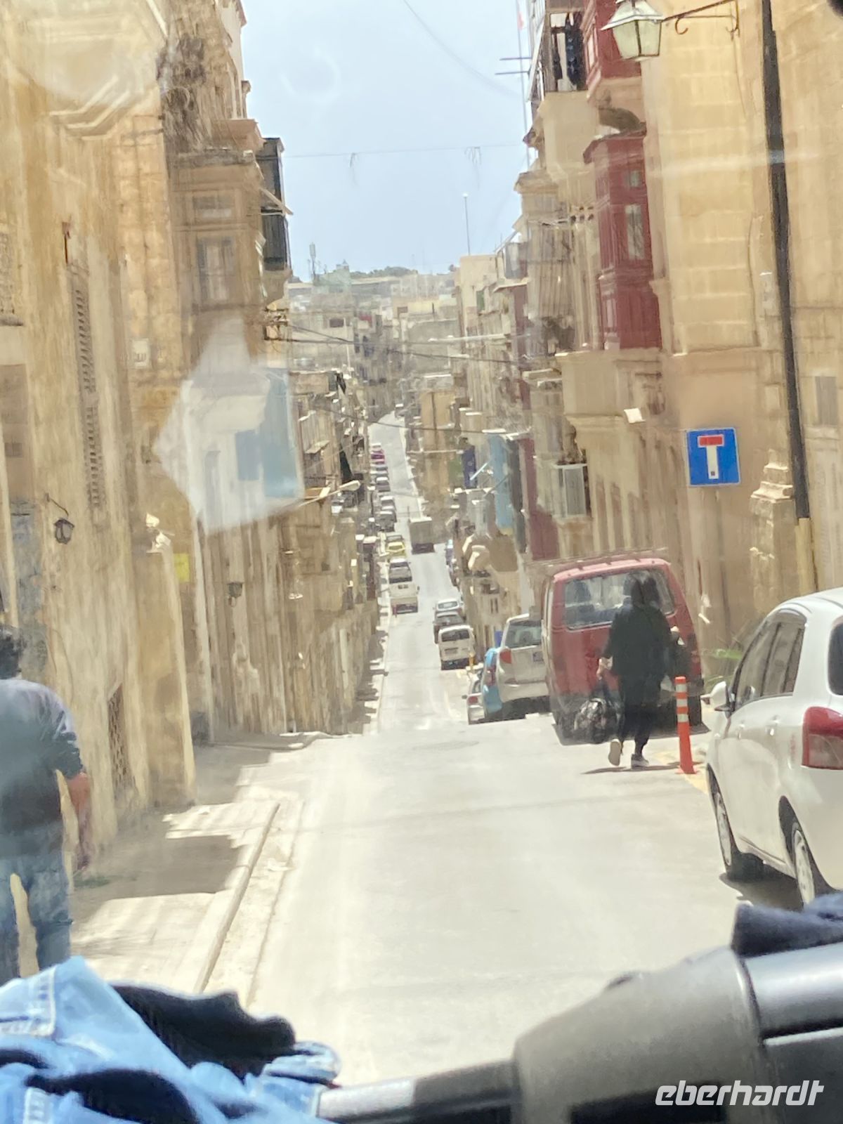 Man ist vom Zeitplan her heute gnädig mit uns, es geht nicht all zu früh los. Besser als bei der Hafenrundfahrt kann man sich keinen Überblick über die vielen fast zusammenhängenden Städte Valetta, Slima, Gzira, Hamrum und Cospicu erarbeiten. Reichlich 500.000 Menschen leben auf der Insel und die Bevölkerungsdichte ist sieben Mal höher als die in Deutschland und das spürt man auch. Enge Gassen mit mehrstöckigen Häusern durchziehen die Städte.