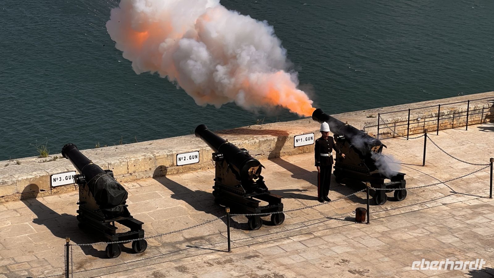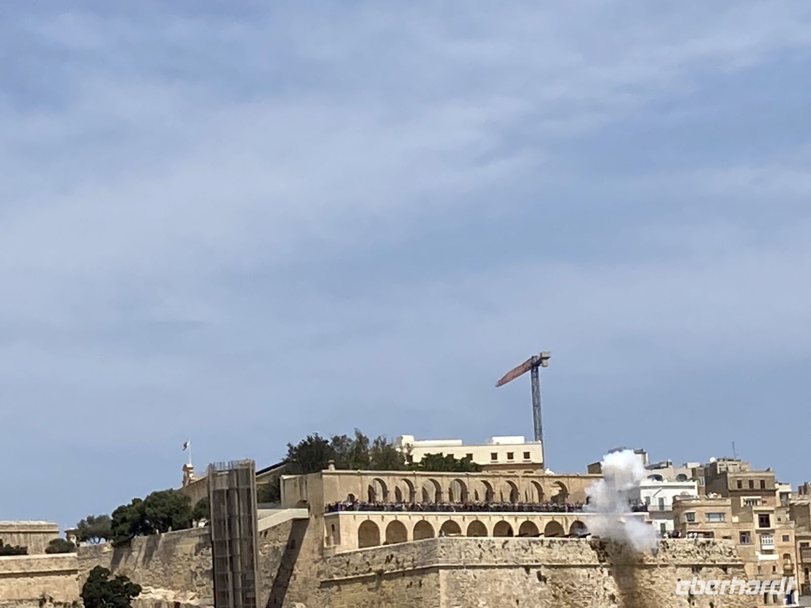 Auch den alltäglichen Kanonschuß können wir miterleben. Der Andrang ist groß im Upper Barrakka Garden. Der Schuss diente einerseits als Zeitansage, diente jedoch früher auch als Kommunikationsmittel, um die Bürger von Valetta über wichtig Ereignisse, z.B. der Ankunft von Schiffen, zu informieren.