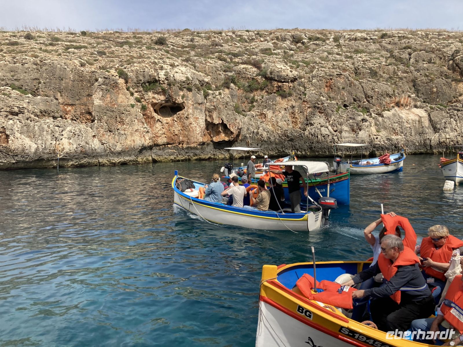 Heute starten wir etwas früher, um an der Blauen Grotte nicht zu sehr in den Trubel zu geraten und fast ein Stunde Anfahrt auf uns wartet. Wir werden nicht enttäuscht, der Andrang hält sich in Grenzen und das blaue Wasser überwältigt uns. Nach einer kurzen Kaffeepause geht es weiter zum malerischen Fischerdorf Marsaxlokk. Eine ausgedehnte Mittagspause mit anschließendem Spaziergang entlang der Uferpromenade, wo auch reges Markttreiben herrscht. Bemerkenswert sind auch die farbenprächtigen maltesischen Luzzu-Boote.