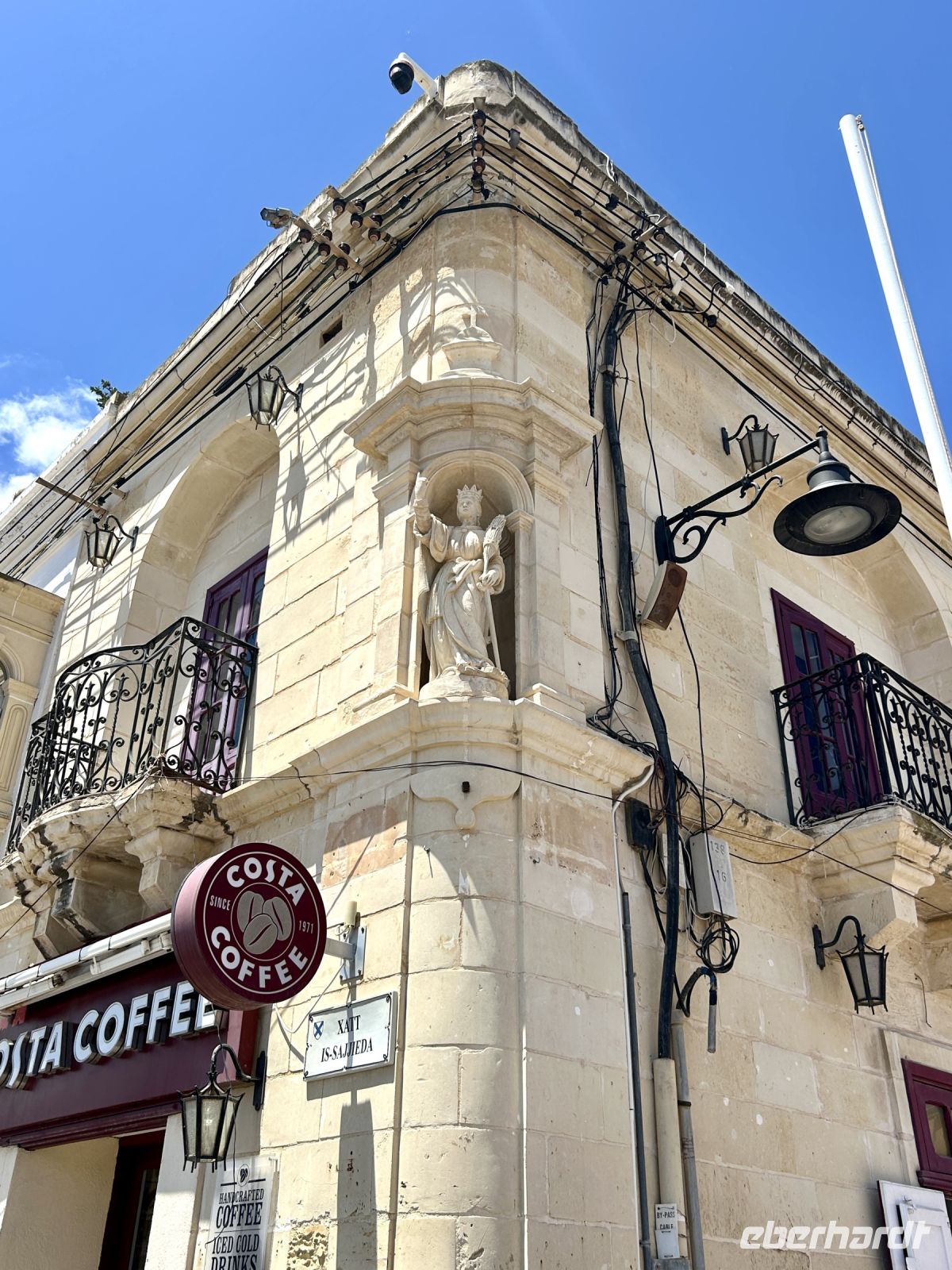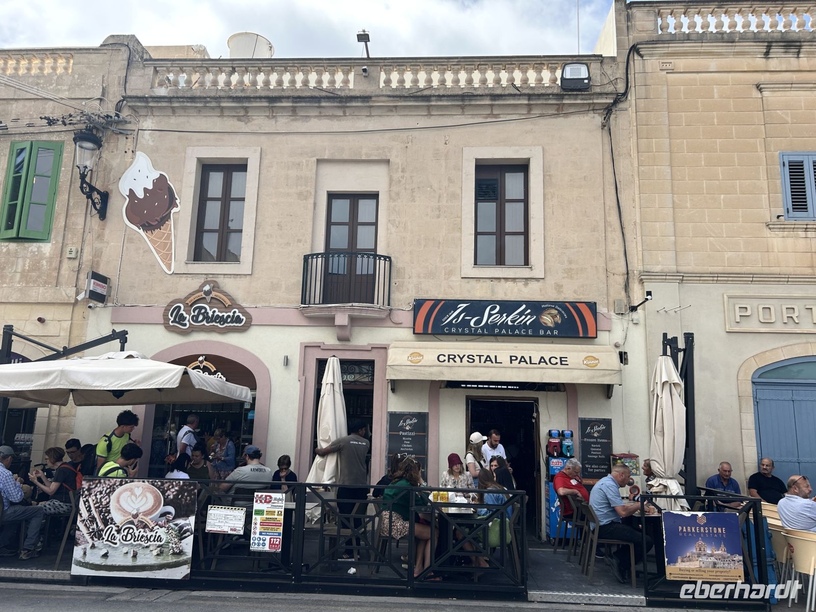 Abschließend kosten wir auf dem Hauptplatz noch die maltesischen Pastizzi. Blätterteigpasteten mit Erbsenpürree oder Ricotta gefüllt. Mmmmhhh, wenn wir nur nicht schon so viel gehabt hätten, heute.