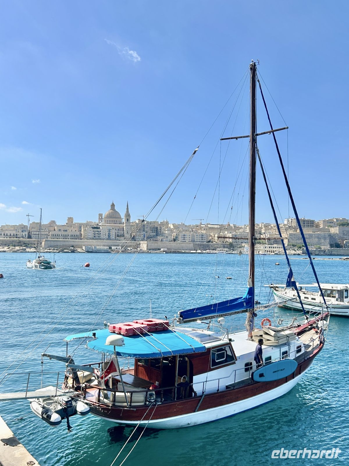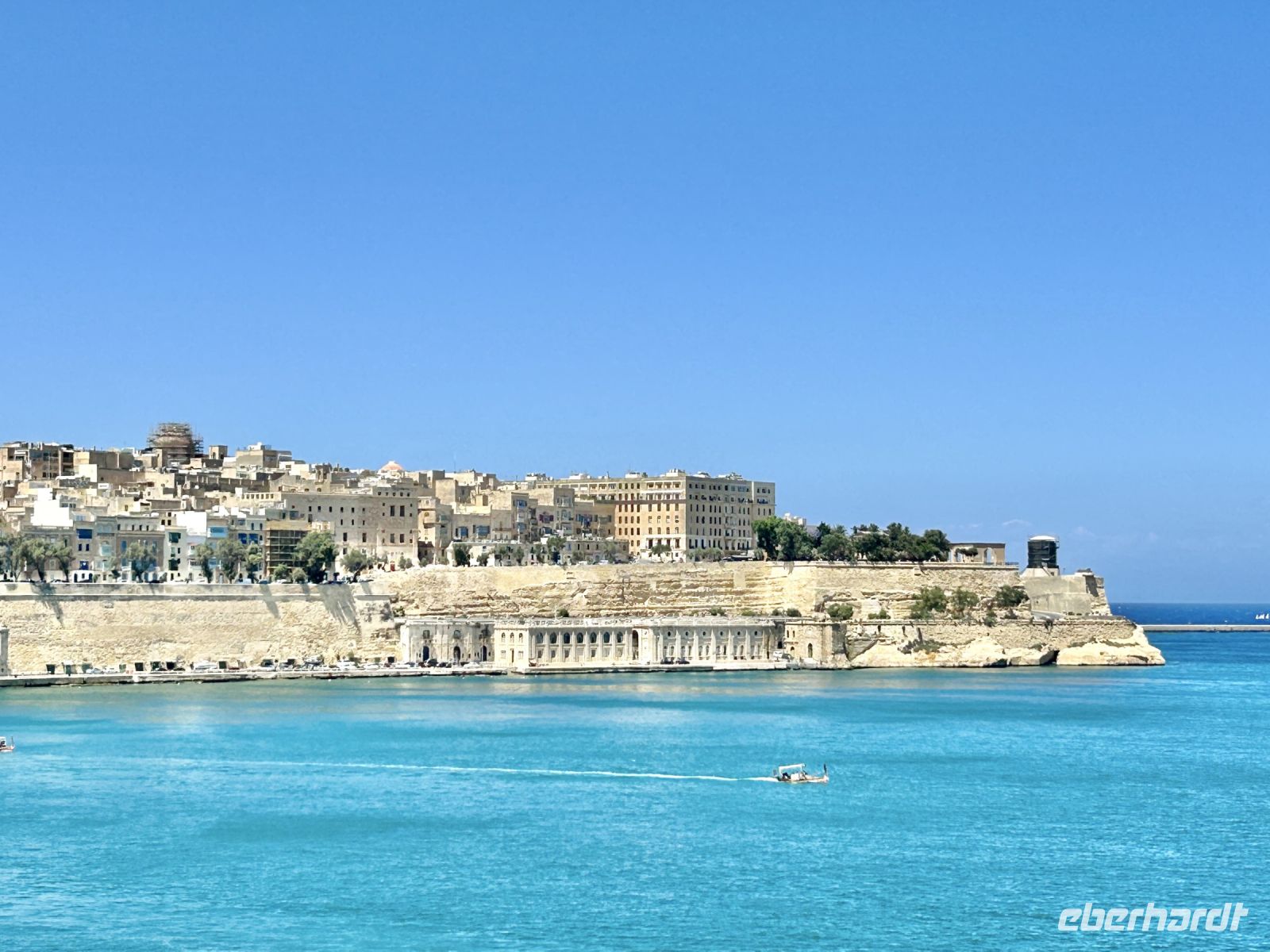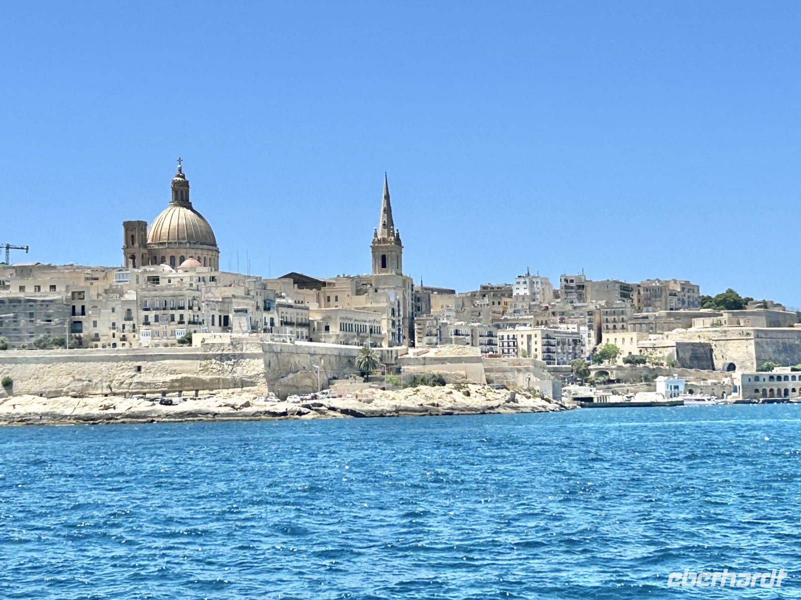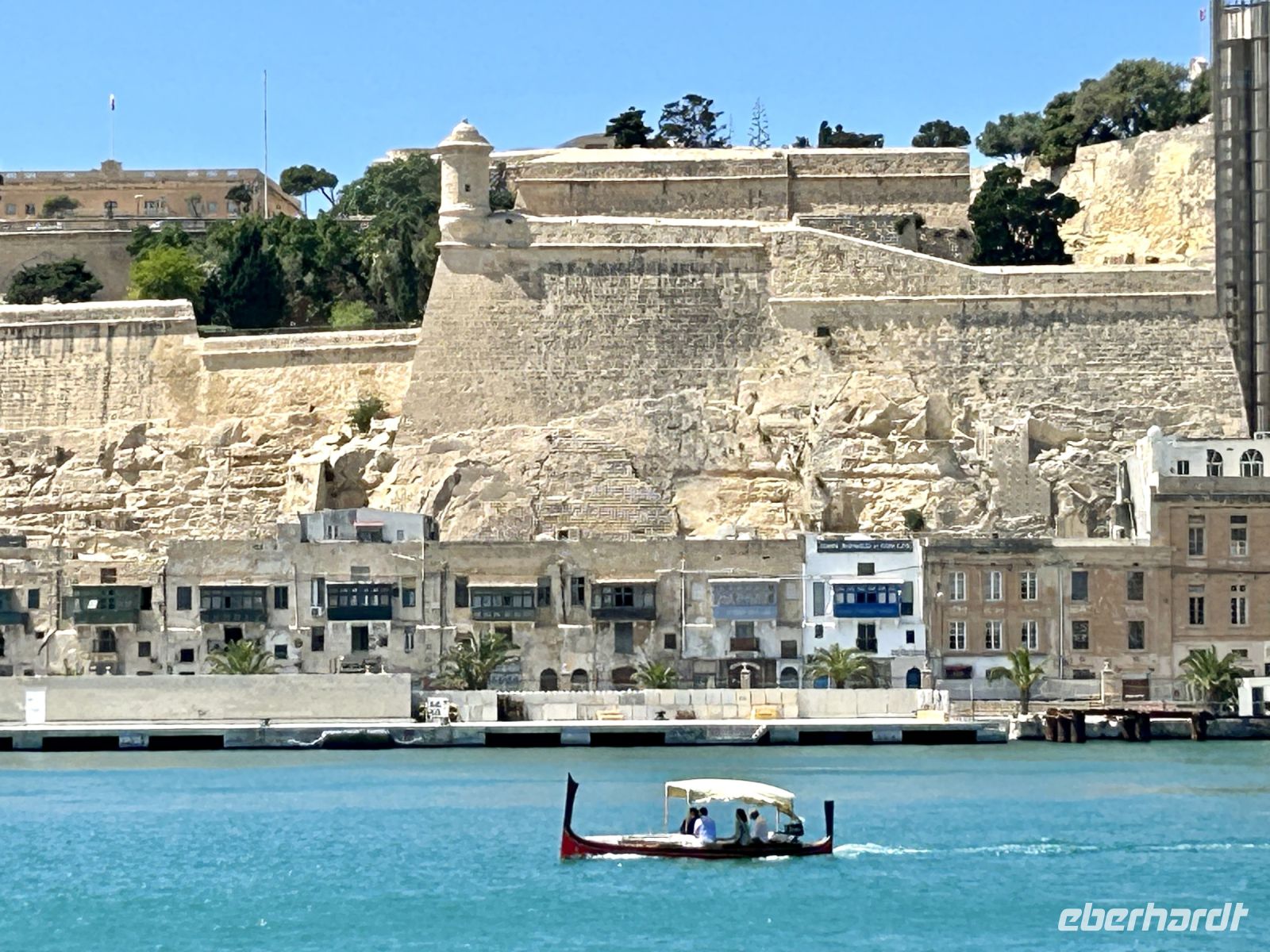 Am Vormittag unternehmen wir vom Hafen von Sliema aus eine gemütliche Hafenrundfahrt. Vom Wasser aus wirkt Valletta noch majestätischer. Die gewaltigen Festungsmauern erzählen von Belagerungen, Mut und Mittelmeer-Mächten. Und es ist ein Genuss, auf dem Schiff in der Sonne oder im Schatten sitzend, umrundet vom azurblauen Meer, die Kulisse gemächlich an sich vorüber ziehen zu sehen.