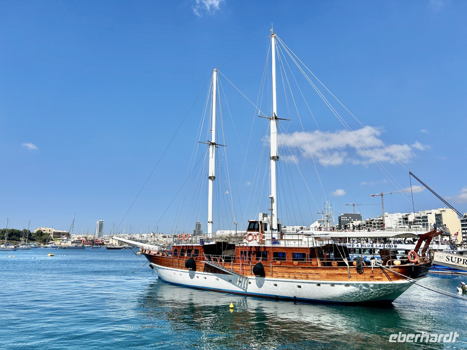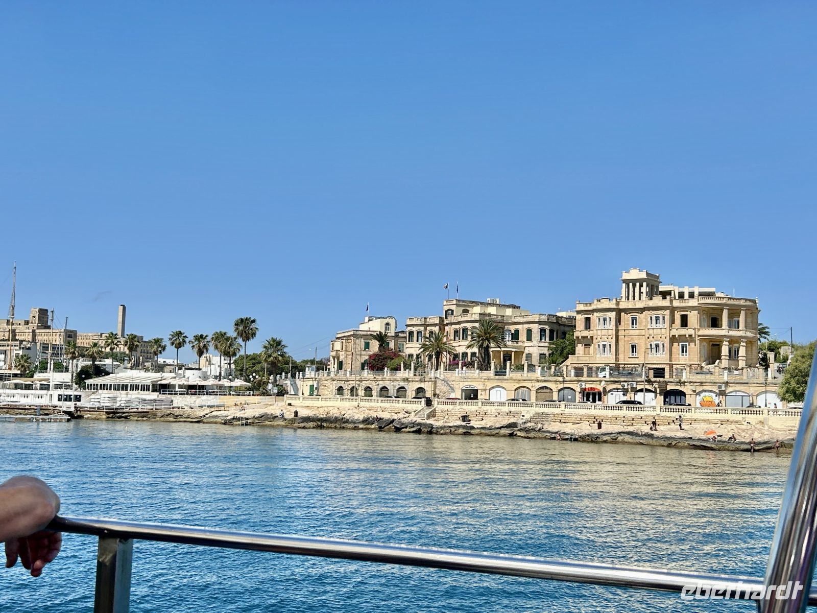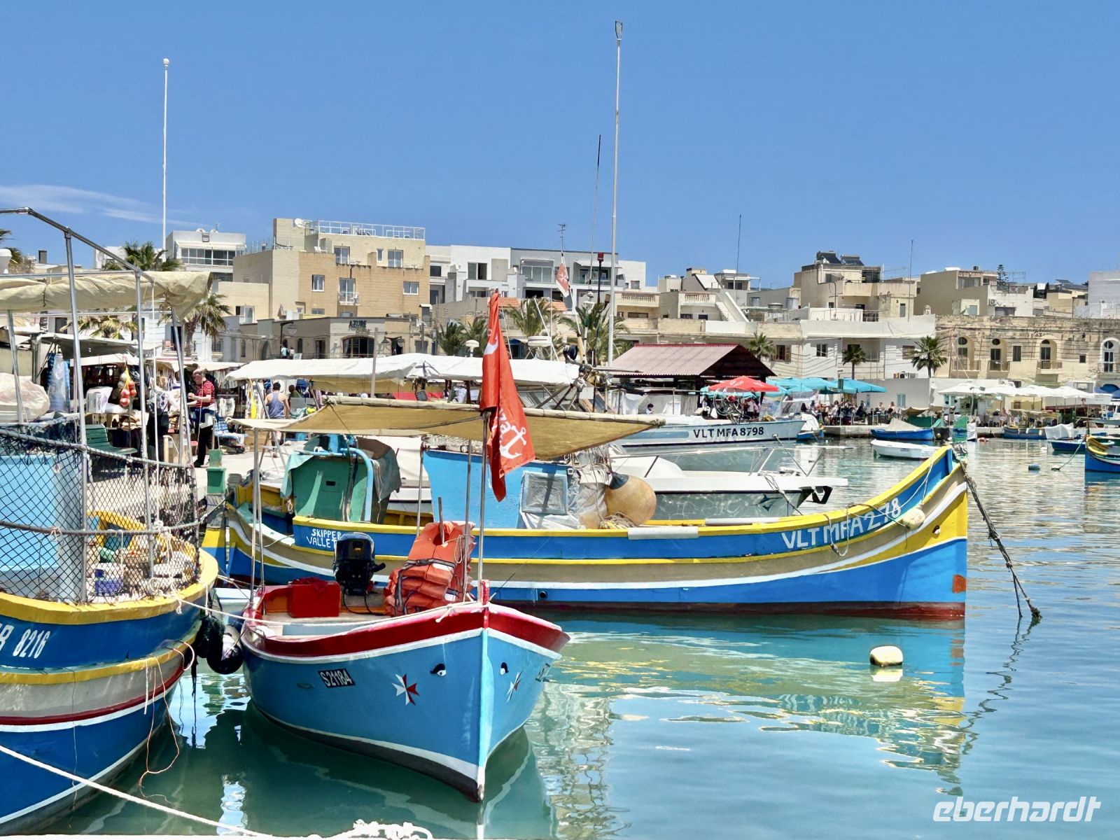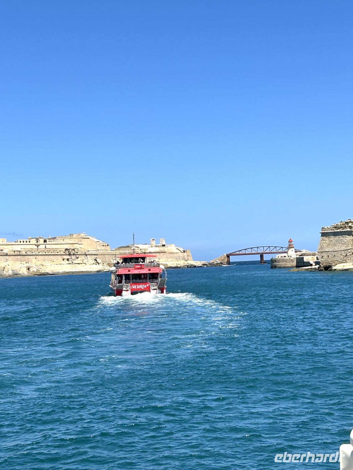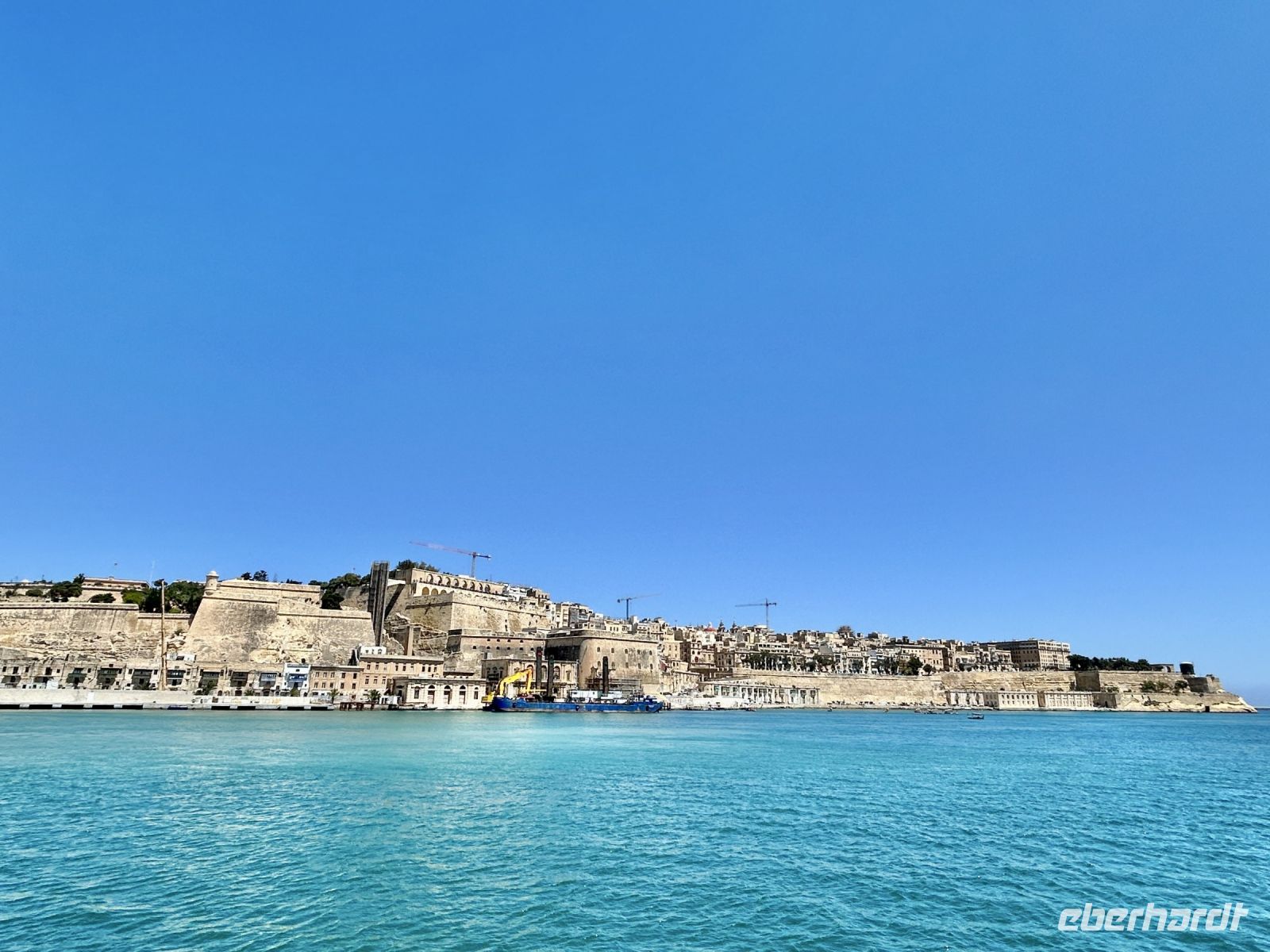 Am Vormittag unternehmen wir vom Hafen von Sliema aus eine gemütliche Hafenrundfahrt. Vom Wasser aus wirkt Valletta noch majestätischer. Die gewaltigen Festungsmauern erzählen von Belagerungen, Mut und Mittelmeer-Mächten. Und es ist ein Genuss, auf dem Schiff in der Sonne oder im Schatten sitzend, umrundet vom azurblauen Meer, die Kulisse gemächlich an sich vorüber ziehen zu sehen.