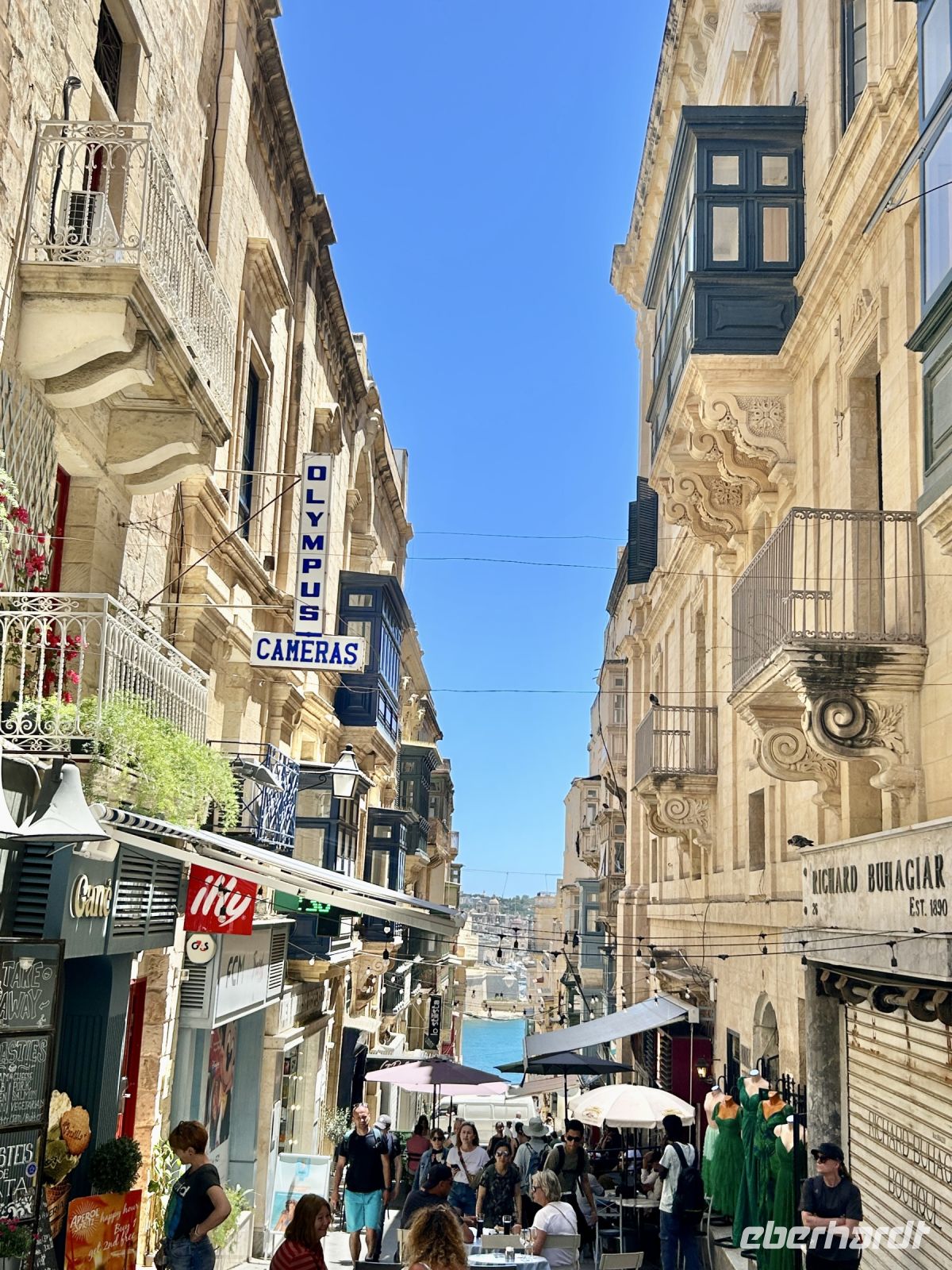 Die anderen erkunden oder besuchen die charmanten Gassen von Valetta. Einfach treiben lassen und Fotomotive ergattern! Ein Spaziergang entlang der Republic Street, hinein in die Seitenstraßen und hinunter zum Meer, jeder nach seinem Gusto. Genussvoll ein Glas Wein trinken, ein Eis essen, die Leute beobachten….das ist Urlaub.