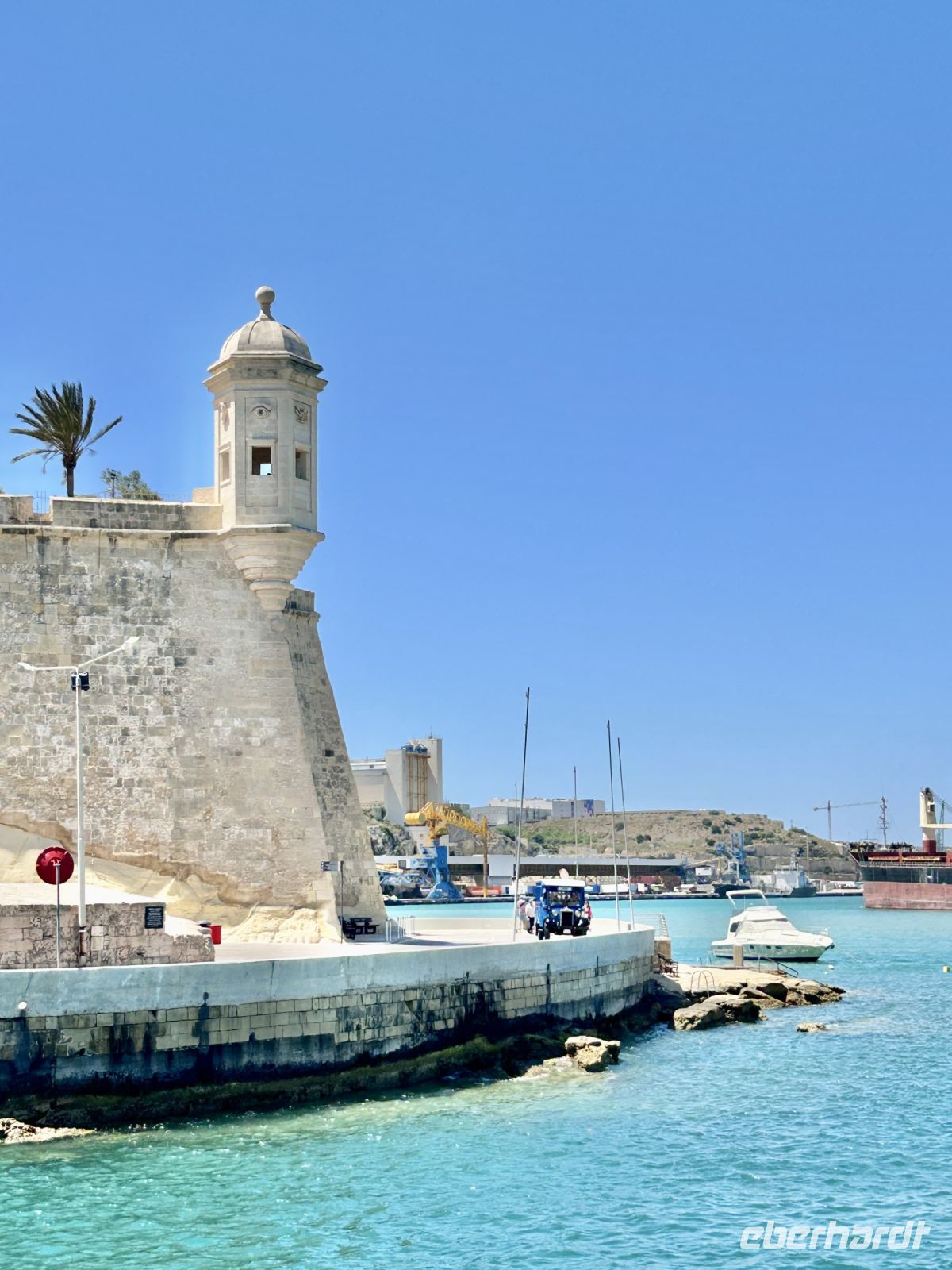 Ein Hauch von Rittergeschichte liegt in der Luft, als wir durch die sogenannten „Three Cities“ spazieren – Vittoriosa (Birgu), Senglea (L-Isla) und Cospicua (Bormla). Hier begann die Geschichte des Malteserordens auf der Insel. Er verteidigte im Jahr 1565 Malta gegen den osmannischen Angriff bei der sogenannten Großen Belagerung. Wir schlendern durch enge Gassen, sehen das Fort St. Angelo und bestaunen elegante Palazzi. Von einem Bastionsturm aus, der Vedette in Senglea, die mit zwei Augen und zwei Ohren an der Wand die stete Wachsamkeit der Ritter symbolisiert, genießen wir einen herrlichen Blick auf den Grand Harbour mit seinen Buchten.