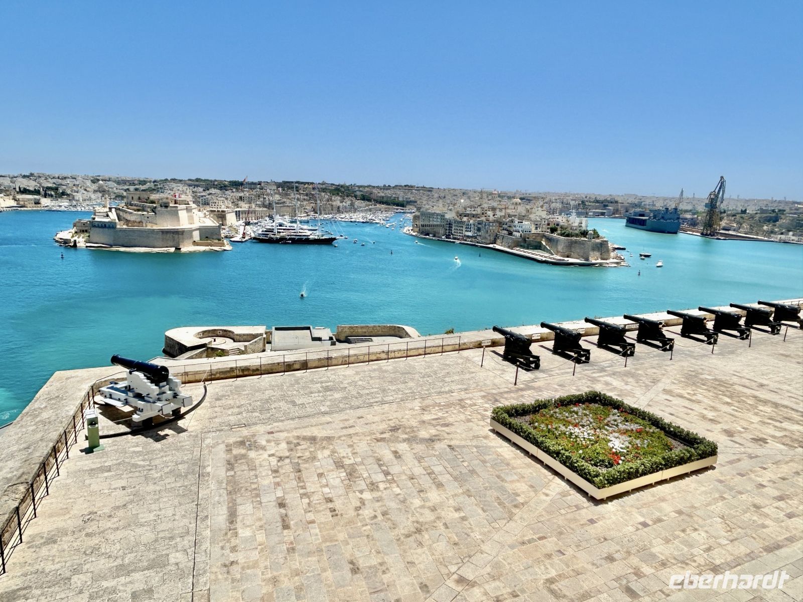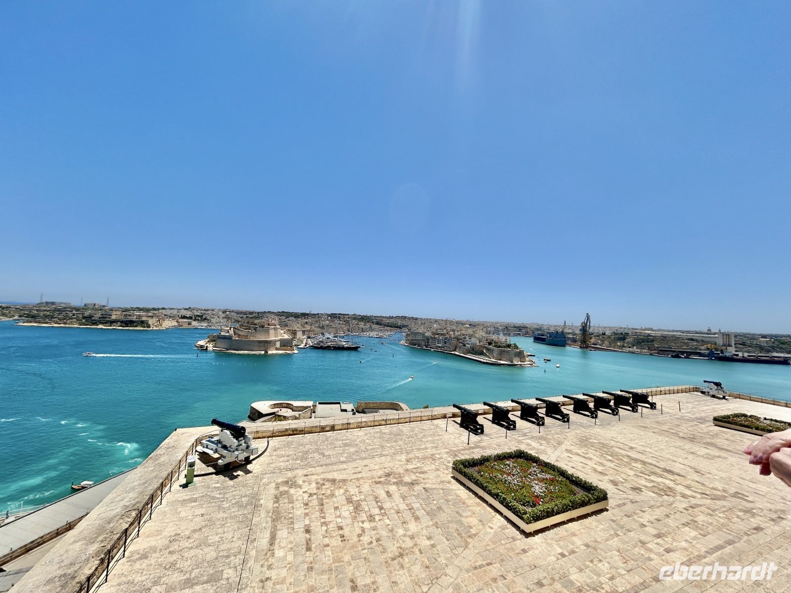 Von den oberen Barrakka-Gärten aus haben wir erneut einen atemberaubenden Blick auf den Grand Harbour.