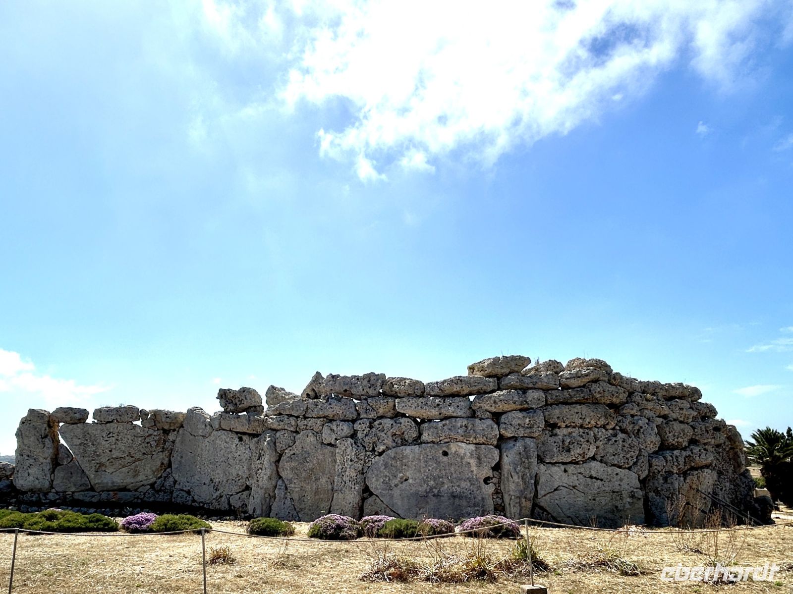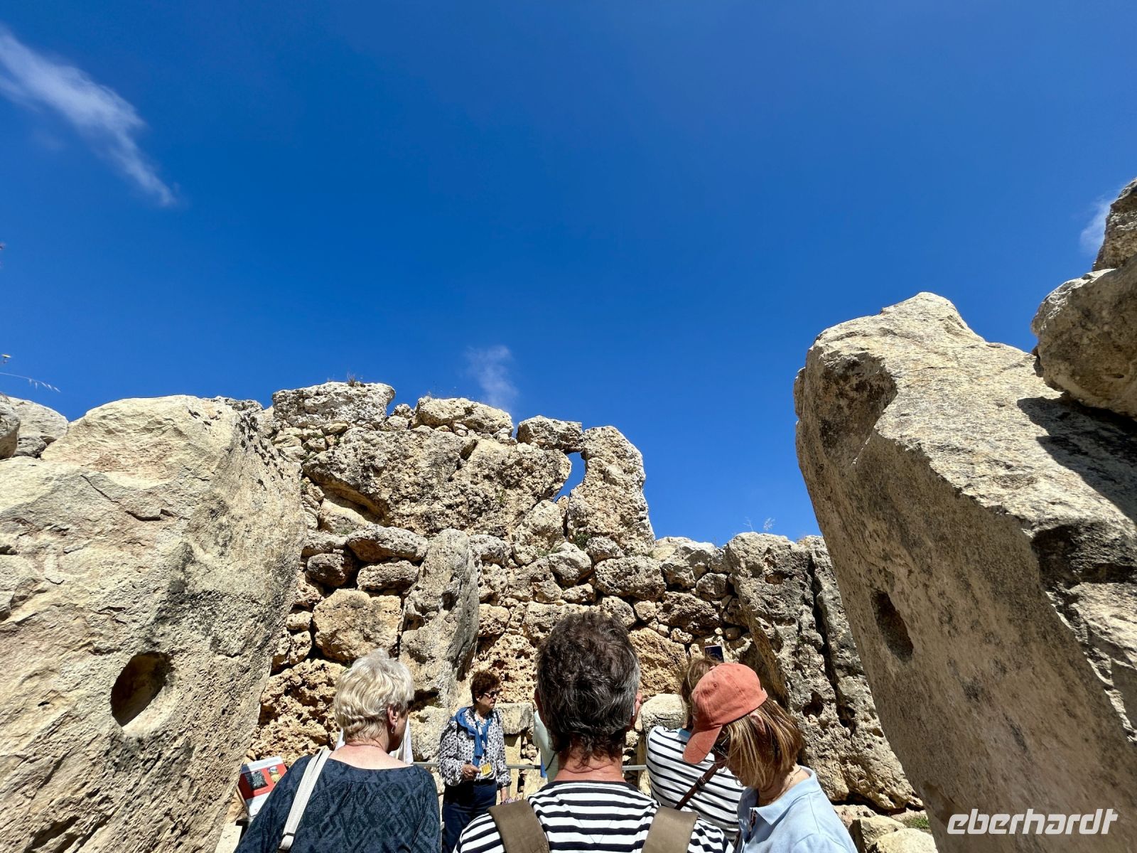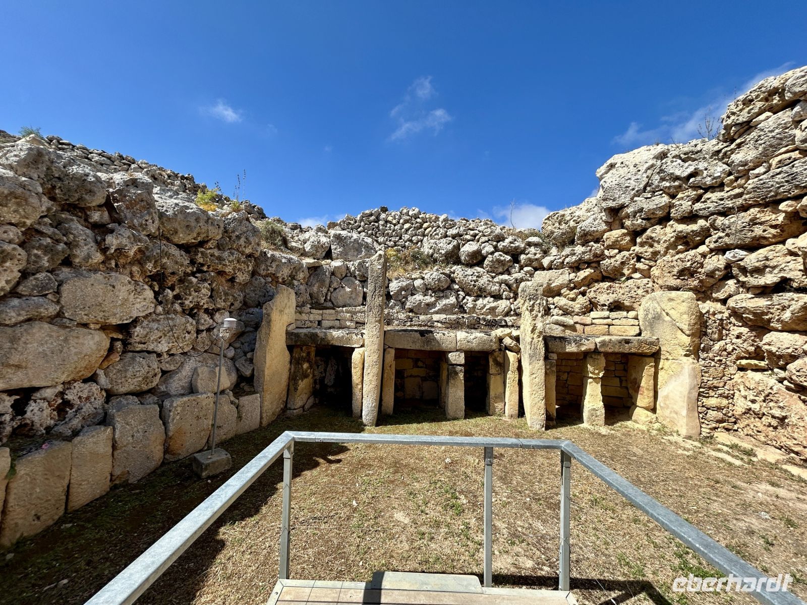 Unsere erste Station: die prähistorische Tempelanlage von Ggantija. Es ist einer der 6 jahrtausendealten Megalithtempel Maltas, die anderen befinden sich auf der Hauptinsel. Beim Gang durch das Museum verstehen wir den Grundriss, was sich als sehr hilfreich bei der Betrachtung der archäologischen Gemäuer zeigt.
