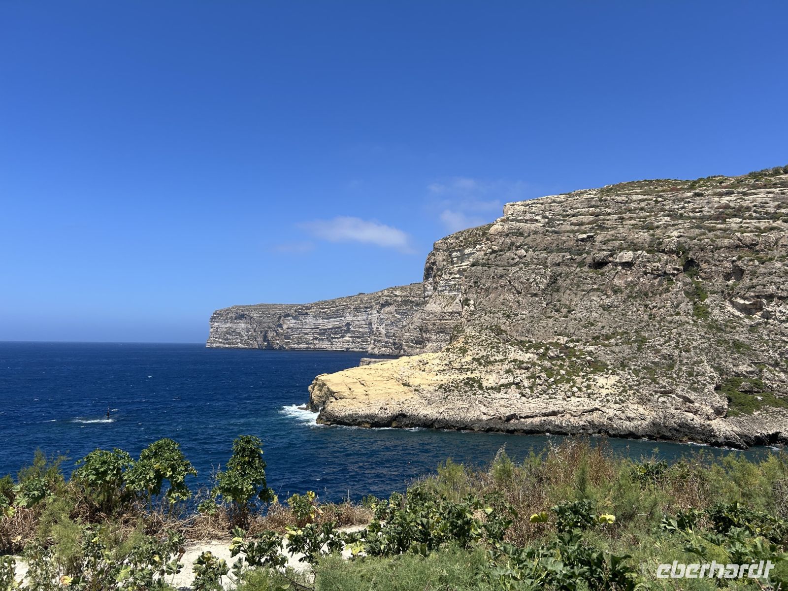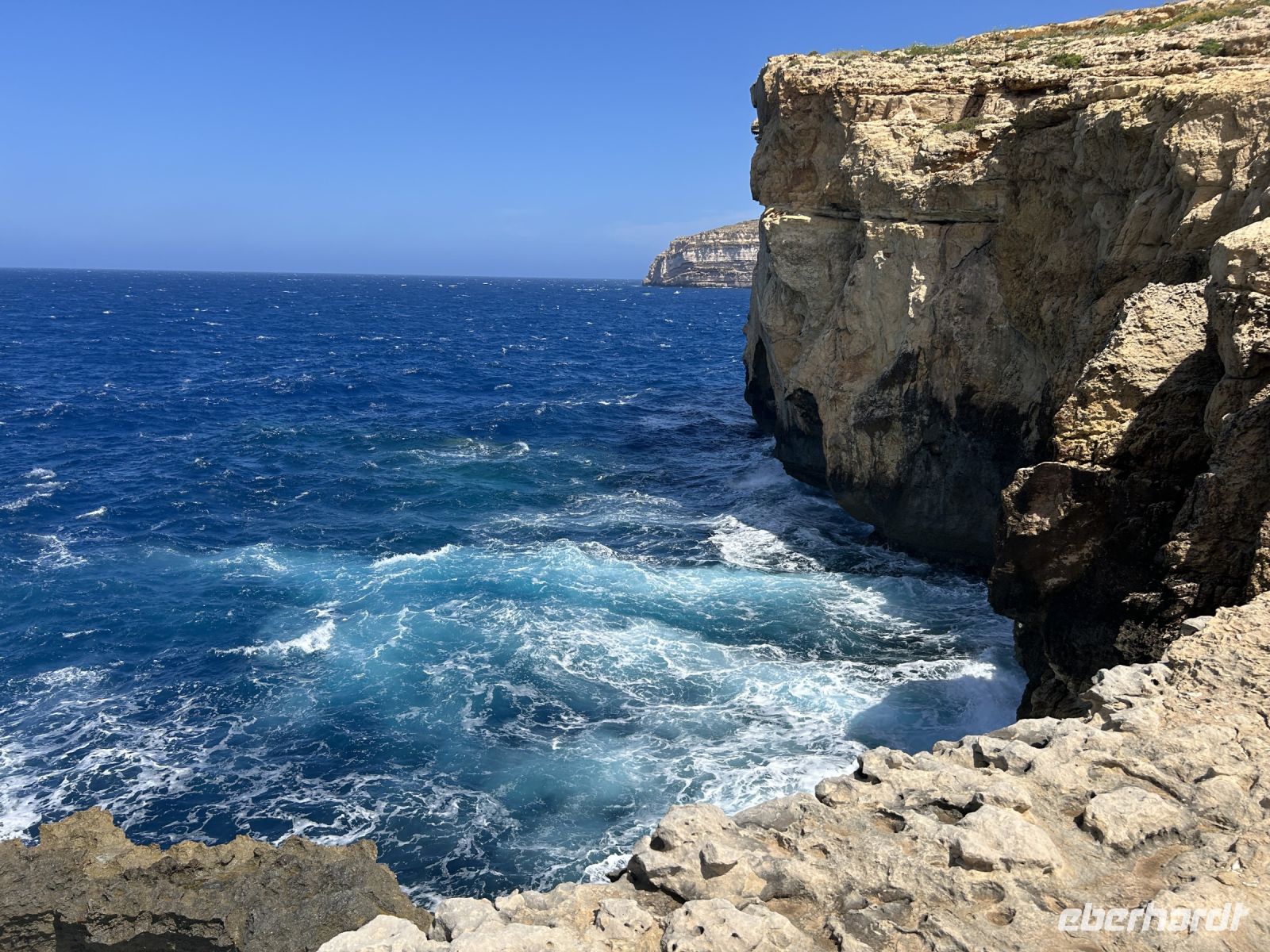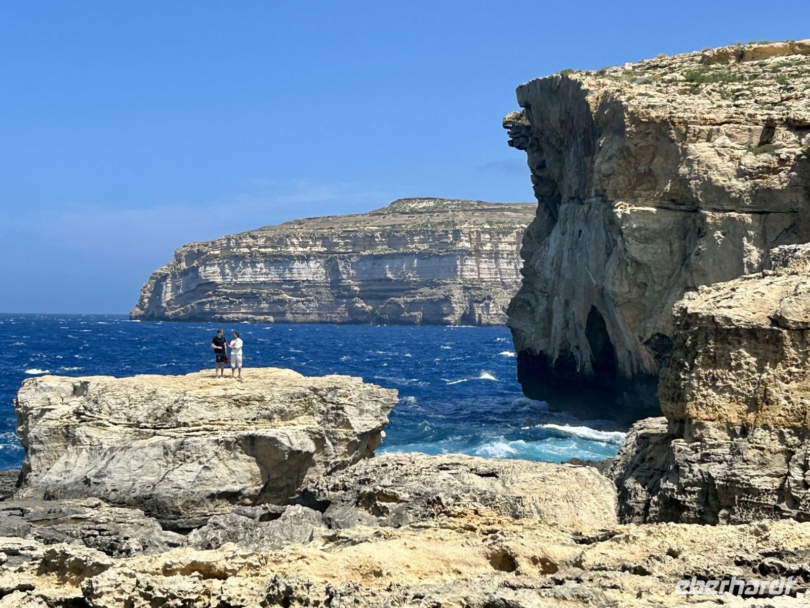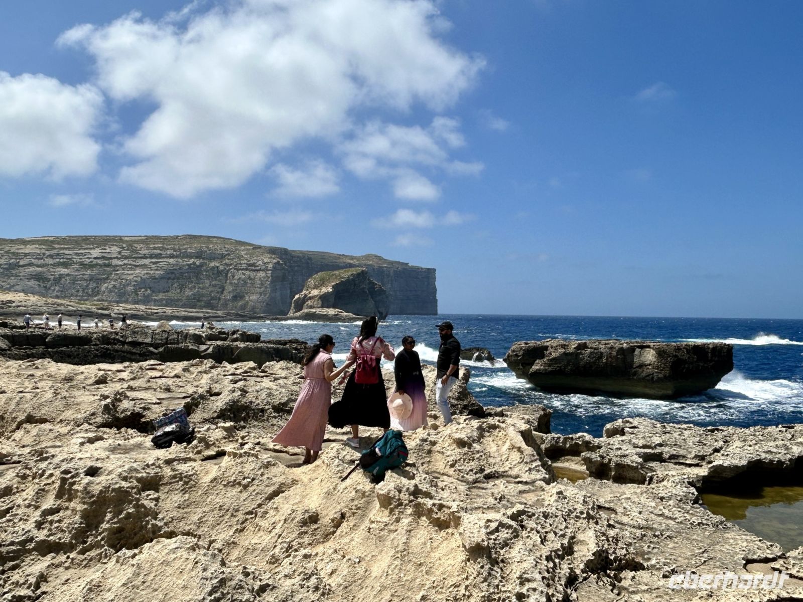 Weiter geht es! Wir besuchen die Küste bei Dwejra, einst Standort des Azure Window und bestaunen die wilde Felslandschaft. Das Meer ist wild und leuchtet intensiv türkisfarben. Keine Frage, auch ohne den Felsbogen ist dieser Küstenabschnitt ein Genuss für alle Sinne.