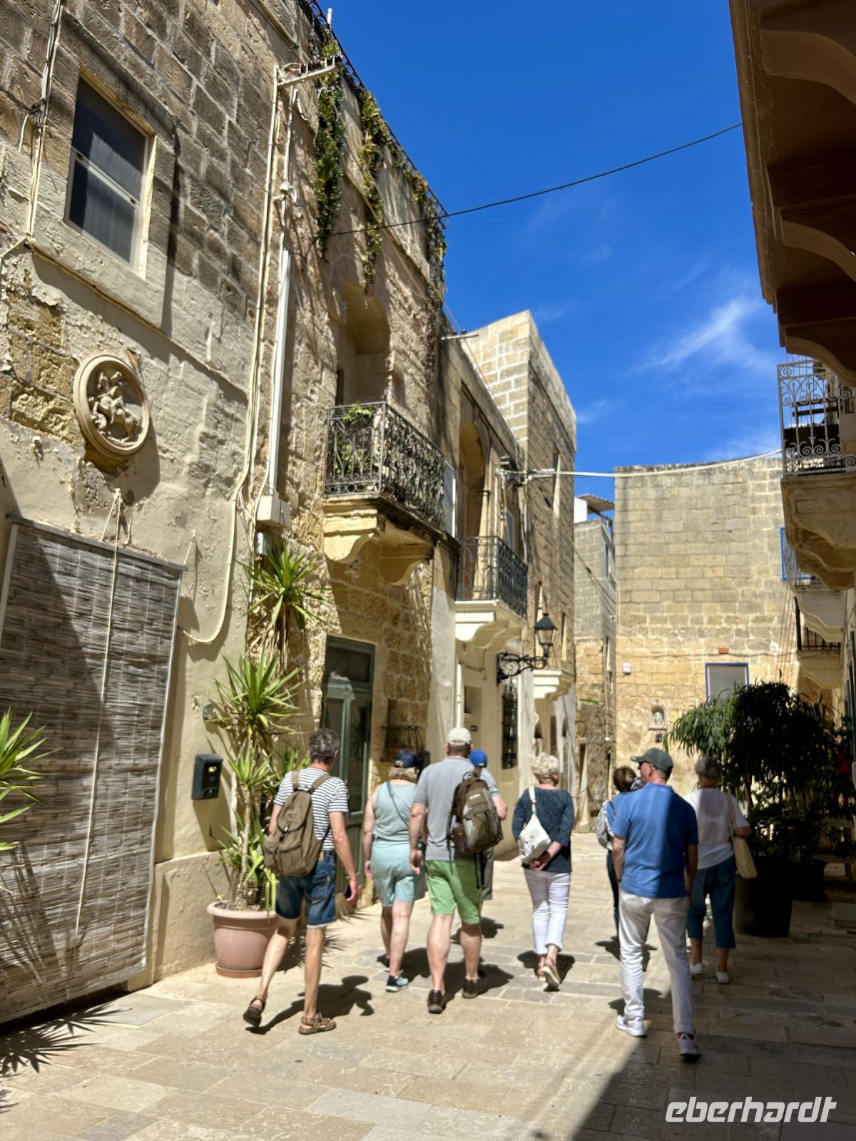 Wir fahren hinauf zur Zitadelle von Victoria, wo wir beim Rundgang über die Dächer der Insel blicken. Victoria heißt bei den Maltesern Rabat und ist die quirlige Hauptstadt der Insel Gozo. Hinunter zur Altstadt ist nur ein kurzer Weg, doch es ist sehr voll dort. Unser Resumee: das „ruhige“ Gozo ist genauso voll und beliebt wie Malta und Valetta. Am späten Nachmittag geht’s zurück nach Malta – mit dem Gefühl, einen weiteren Schatz des Archipels entdeckt zu haben.