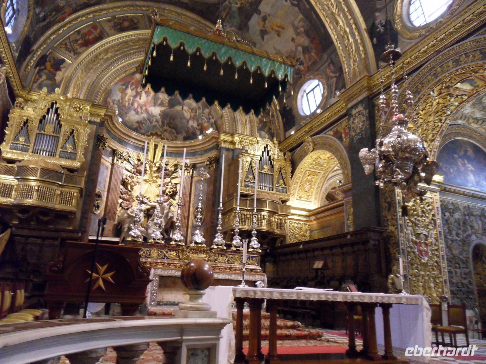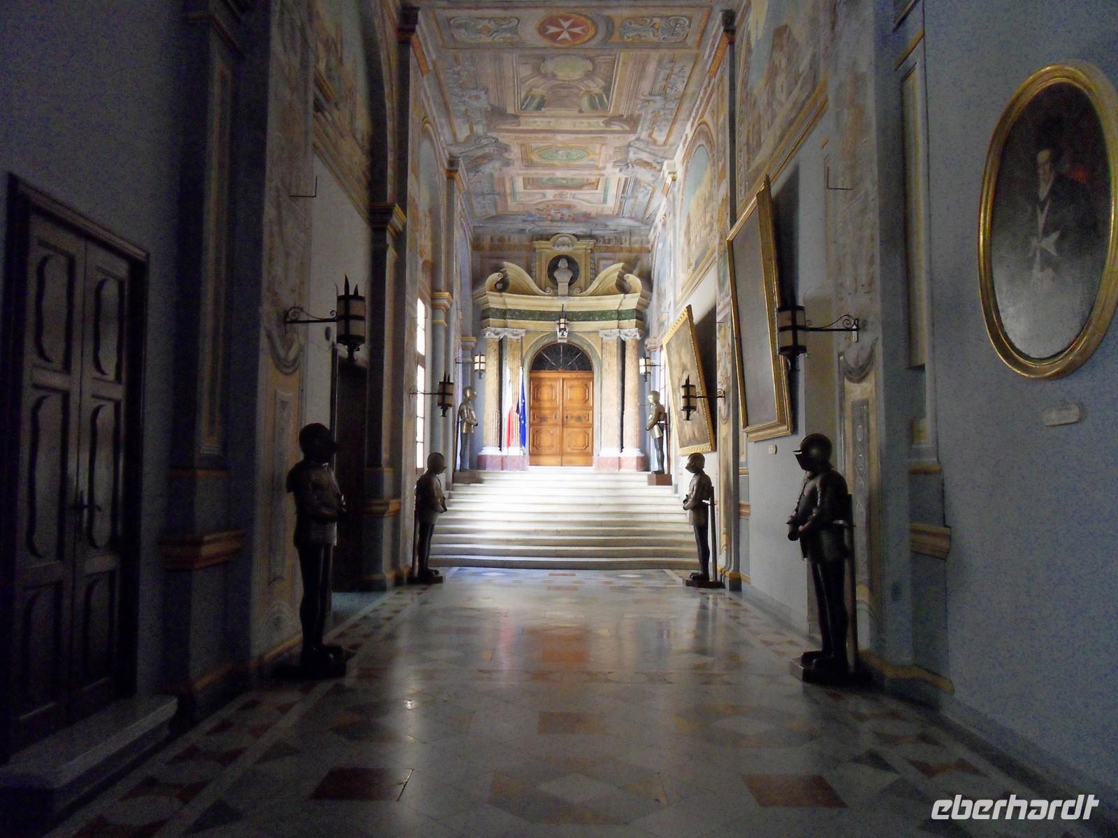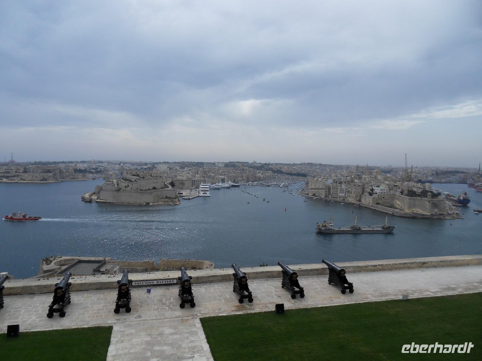 An unserem ersten kompletten Tag auf Malta trafen wir uns nach dem Frühstück mit Mary, unserer örtlichen Reiseleiterin, und Gundi in der Hotellobby. Gemeinsam mit Mary ging es dann auf nach Valletta, in die Hauptstadt Maltas. Dort besuchten wir bei einem Stadtrundgang zunächst den oberen Barrakka-Garten, wo nicht nur die Pflanzen zu bestaunen waren, sondern uns trotz des wolkenverhangenen Himmels der Ausblick über den Hafen von Valletta und hinüber auf die „3 alten Stätte“ beeindruckte. Danach ging es die Straßen und Gassen entlang ins Zentrum von Valletta, wo wir zunächst die St.John Ko-Kathedrale besuchten. Sie wird als Ko-Kathedrale bezeichnet, da sie als zweiter Sitz des Erzbischofs von Malta, neben der St. Pauls-Kathedrale in Mdina, dient. Darin fanden sich farblich reich verzierte und bis ins Detail gestaltete Grabplatten, die den Fussboden bedeckten, aber auch ein sehr schönes Deckengemälde. Eines der bedeutendsten Werke der Kirche ist auch (1608) von Caravaggio (1571-1610), das wir in einem seitlichen Raum bestaunen konnten. Es zählt zu den Meisterwerken des Künstlers und ist sein einziges signiertes Gemälde. Ende der 1990er Jahre wurde es in Florenz restauriert. Bevor wir eine Mittagspause einlegten, besuchten wir auch noch den Großmeisterpalast, der ebenfalls prächtig ausgestattete Räume und mit Ritterrüstungen geschmückte Flure und Gänge beherbergt. Am Nachmittag gingen wir dann weiter in Richtung Wasser. So betraten wir den unteren Barrakka-Garten, in dem sich ein kleiner, neoklassizistischer Tempel für Alexander Ball, einen der Aufrührer gegen die französische Besatzung und später erster britischer Zivilkommissar Maltas, befindet. Danach erwartete uns noch die „Malta Experience“, ein ca. 50-minütiger Film über die Geschichte Maltas, durch den wir vor allem die vielschichtigen Belagerungszeiten auf Malta erklärt bekamen. Am späten Nachmittag fuhren wir dann zurück zum Hotel, wo wir den Abend beim gemeinsamen Abendessen ausklingen ließen.