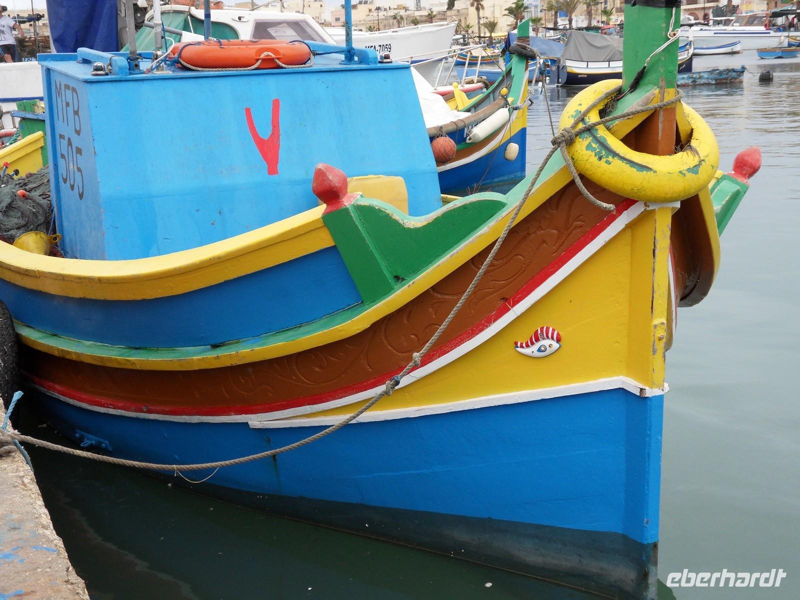 Nach einem stärkenden Frühstück ging es am Vormittag vorbei an Salinen und Meerwasserentsalzungsanlagen (Malta bezieht 57% seines Wassers aus dem Meer) zu den „3 alten Städten“. So legten wir zunächst an der Spitze von Senglea/ L’Isla unterhalb der Festungsmauern (und einem mit Augen und Ohren versehenen Türmchen) einen Fotostopp ein, bei dem wir einen tollen und wieder ganz anderen Blick auf die Festung von Valletta und den Hafen, aber auch auf die rechts von uns gelegene San-Angelo-Festung hatten. Im Anschluß spazierten wir durch Vittoriosa mit seinen schönen alten Gässchen und entdeckten dabei z.B. auch die Herberge der Engländer, wo wir im Innenhof eine kleine Pause einlegten und wo sich heute eine öffentliche Bibliothek befindet. Doch es wartete noch mehr auf uns. So ging es weiter in das kleine Fischerdorf Marsaxlokk, wo wir im Hafen die farbenprächtigen Luzzu-Boote bestaunen konnten. Dort überraschte uns allerdings ein kurzer, aber heftiger Regenschauer, doch es ging maximal mit ein paar nassen Füßen zurück in den Bus. Auf der Rückfahrt zum Hotel erzählte uns Mary von Leben auf Malta, so z.B. vom Thema Hausbau und den dazugehörigen Grundstückspreisen, und ganz nebenbei erhalten wir einen Eindruck von der Vegetation Maltas, wobei wir vor allem Kakteen, Agaven und Oleander sehen. Nach dem Abendessen hatten sich einige Gäste dafür entschieden, am Ausflug „Valletta bei Nacht“ teilzunehmen. So fuhren wir gegen halb Acht am Abend vorbei an der Spinola-Bucht, machten einen Fotostopp an der Lazaretto-Bucht mit einem wieder anderen Blick auf die Mauern von Valletta, fuhren vorbei an Floriana, wo Festlichkeiten zum Feiertag stattfanden und wir besuchten natürlich auch Valletta und sahen so den oberen Barrakka-Garten erneut, aber diesmal wunderschön angeleuchtet. Von hier aus erhaschten wir sogar einen kurzen Blick auf ein Feuerwerk. Danach besuchten wir noch das beeindruckende Mdina bei Nacht, von dessen Stadtmauer aus wir auch die Rotunda in Mosta sehen konnten, sie wir während der Reise auch noch bei Tageslicht zu sehen bekommen sollten.