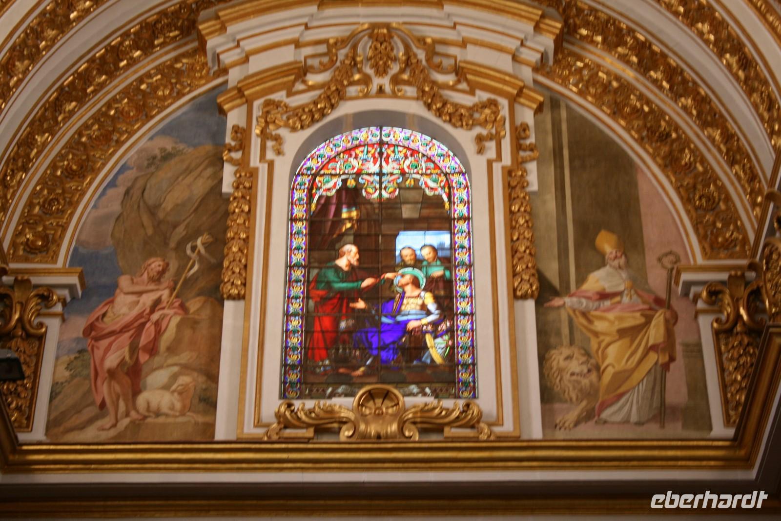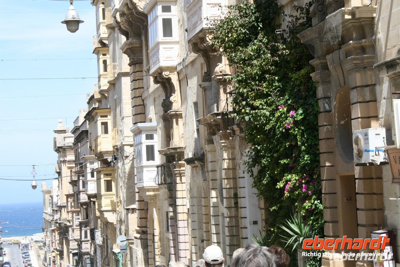 Anschließend brachte unsere örtliche Reiseleiterin Mary uns zur St.-Johns-Co-Cathedral. Schnellen Fusses wollte sie verhindern, dass wir unnötig an der Kathedrale warten müssen. Aber begeistern von der Stadt, den typischen Strassenzügen und Balkonen Vallettas blieb der ein oder andere Gast hinten an, um diese Athmosphäre zu geniessen und schöne Schnappschüsse schießen zu können.