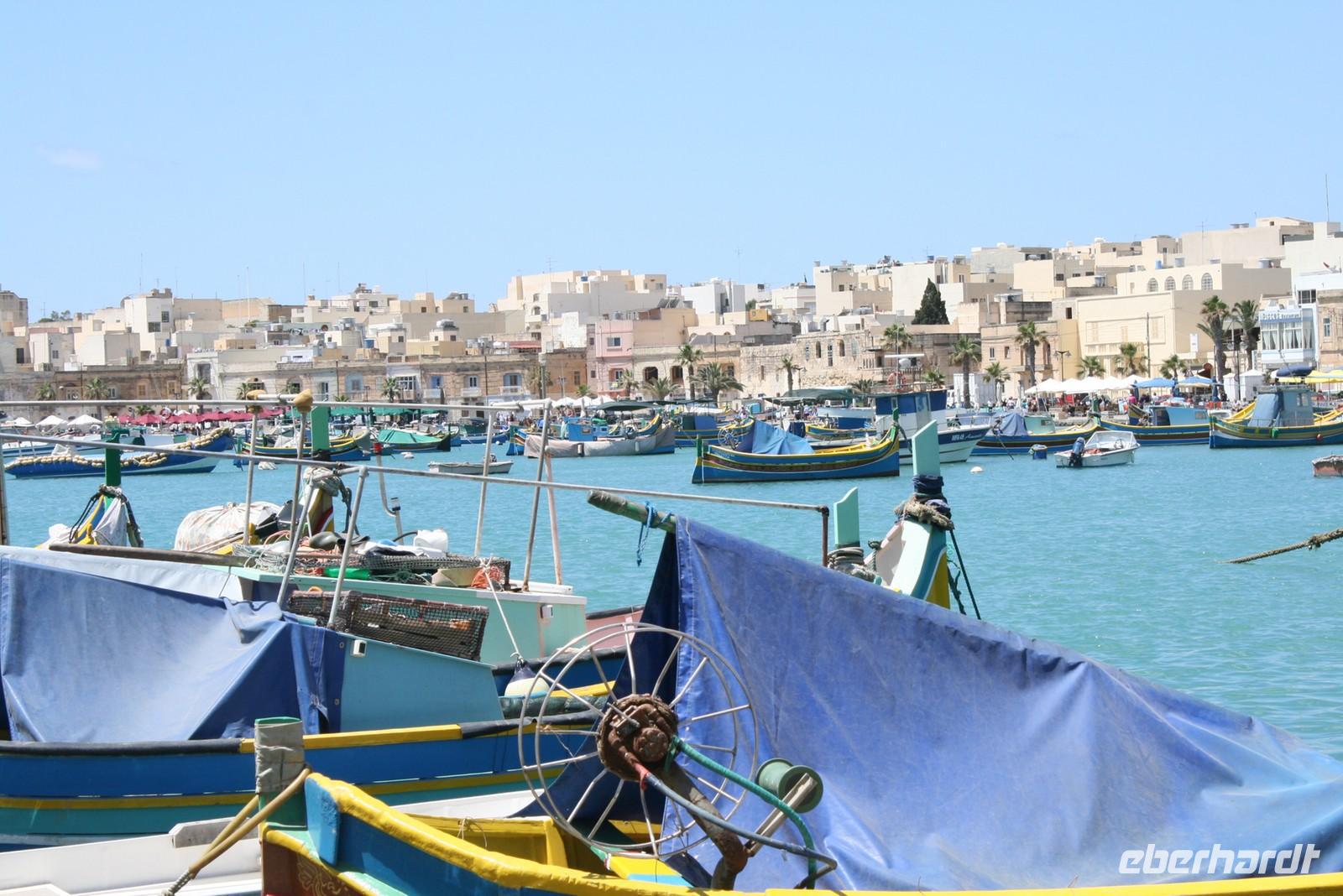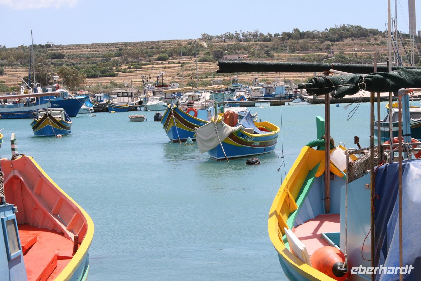 In Marsaxlokk haben wir leider viel zu wenig Zeit, um die typischen Luzzobotte zu bestaunen und durch diesen typischen Fischerort zu schlendern. In der Antike war dies ein der wichtisgte Hafen der Phönizier und später der Römer, heute lädt der tägliche Markt zum Bummeln und Handeln ein.