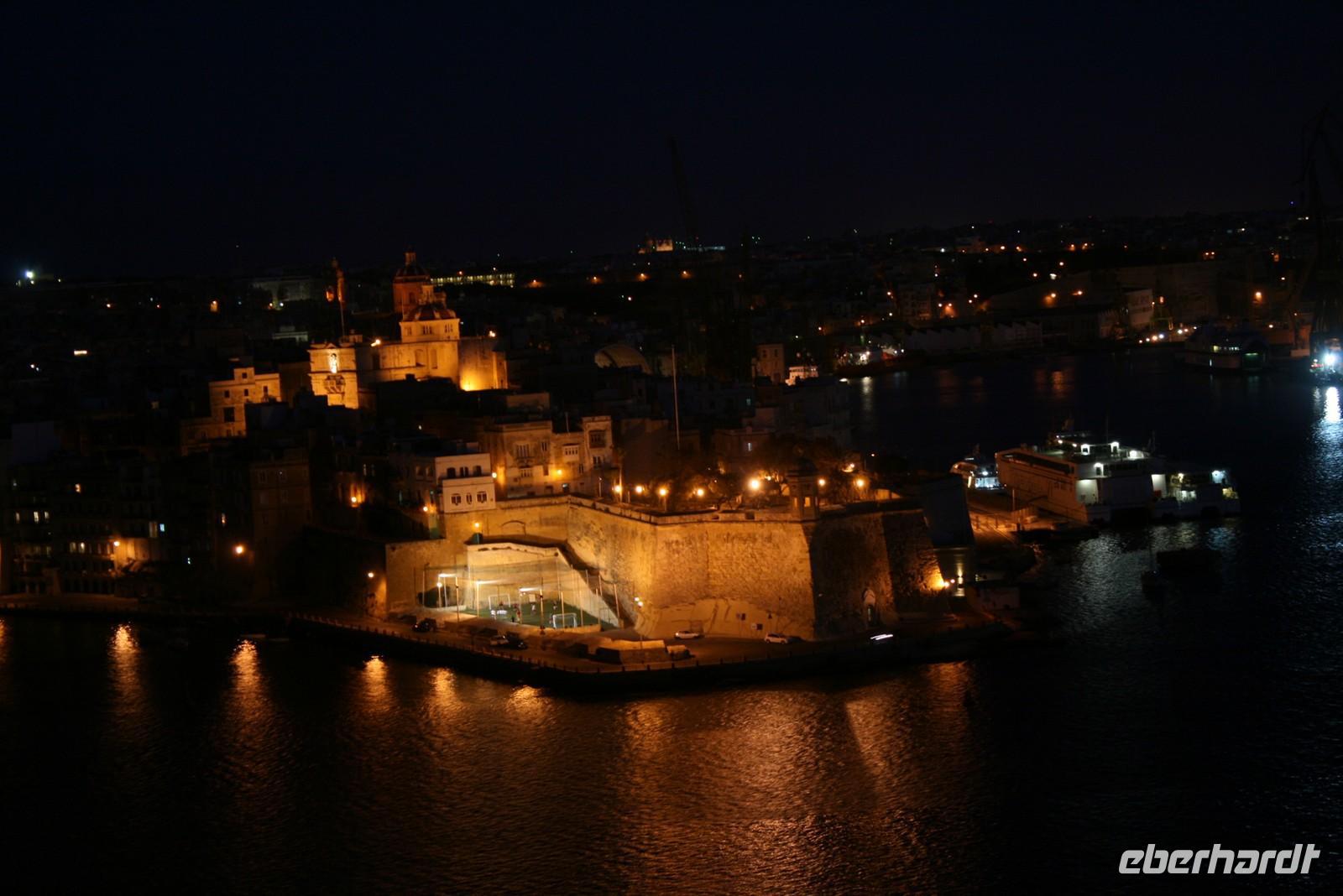 Nach dem gemeinsamem Abendessen treffen wir uns zur "Nachtfahrt". Bei Tageslicht starten wir unseren Ausflug und können so eine kleine "Hafenrundfahrt" mit dem Bus genießen. Bei Einbruch der Dunkelheit erreichen wir erneut den Barracca Gardens, diesmal bedeutend ruhiger und in voller Beleuchtung. Der Blick auf die drei alten Städte ist sensationell!