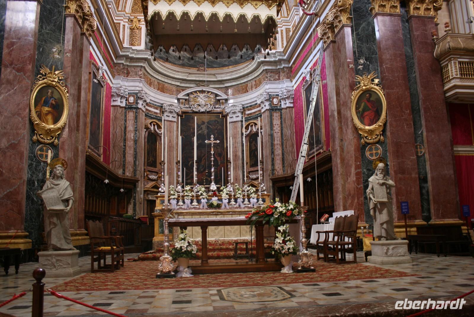 Die St.-Johns-Co-Cathedral wird als Ko-Kathedrale bezeichnet, da sie als zweiter Sitz des Erzbischofs von Malta, neben der St.-Pauls-Kathedrale in Mdina, dient. Der Bau dieser Kathedrale dauerte nur 4 Jahre, aber die Inneneinrichtung über 100 Jahre. Diese Kathedrale, die von außen sehr schlicht wirkt, überrascht im Innenraum mit kunstvollen Verzierungen, Altären und Gemälden. Das berühmteste ist wohl "Die Enthauptung Johannes des Täufers" von Caravaggio. Auch die kunstvollen Grabsteine aus Mamor begistern mit ihren Bildern und Wappen.