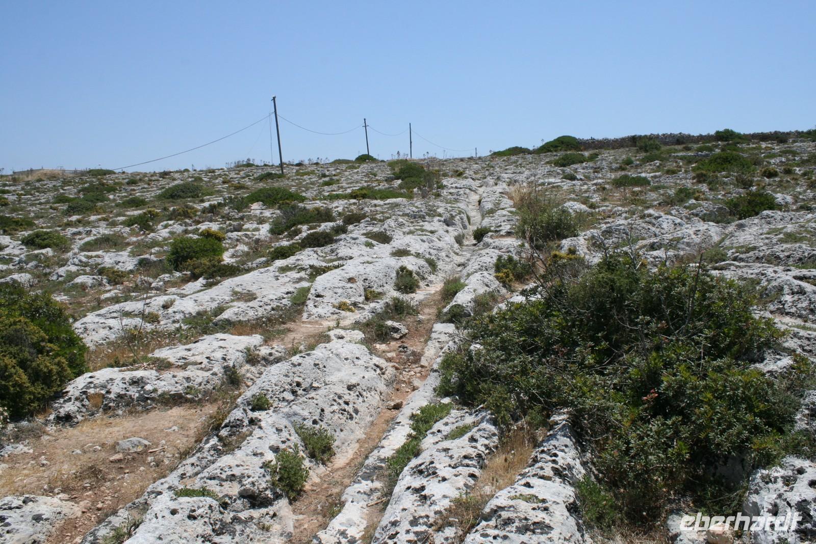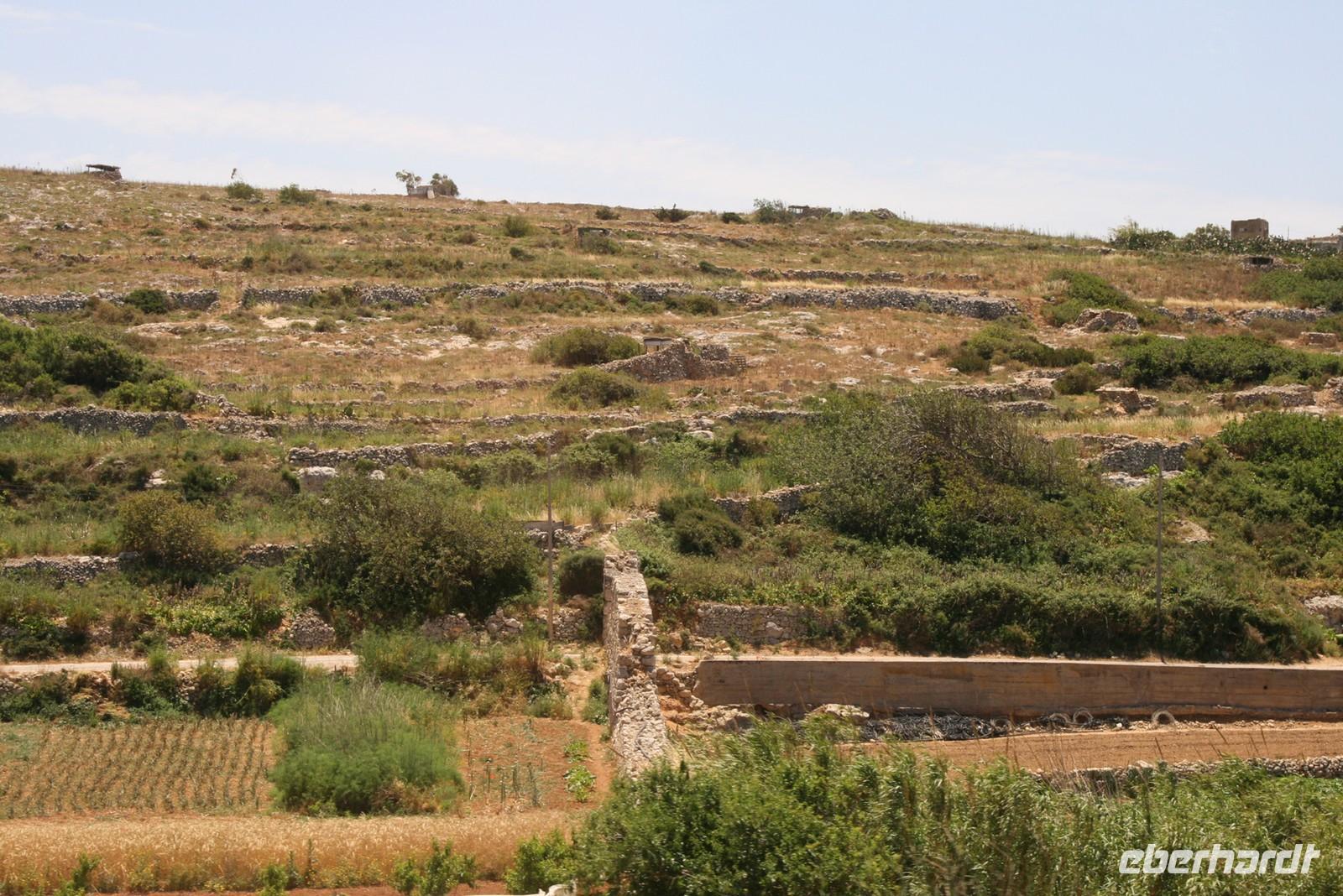 Von hier startet unser Spaziergang, der etwas besseres Schuhwerk bedarft hätte. Aber endlich mal in der Natur sein, ist eine gelungene Abwechslung. Vorbei an einem Steinbruch erreichen wir die Höhlenwohnunngen Ghar il-Kbir. Hier sollen schon 2000 v.Chr. schon gelebt haben bis 1823, als die Engländer hier die Haupthöhle sprengten und die Bewohner somit zum Umzug zwang.