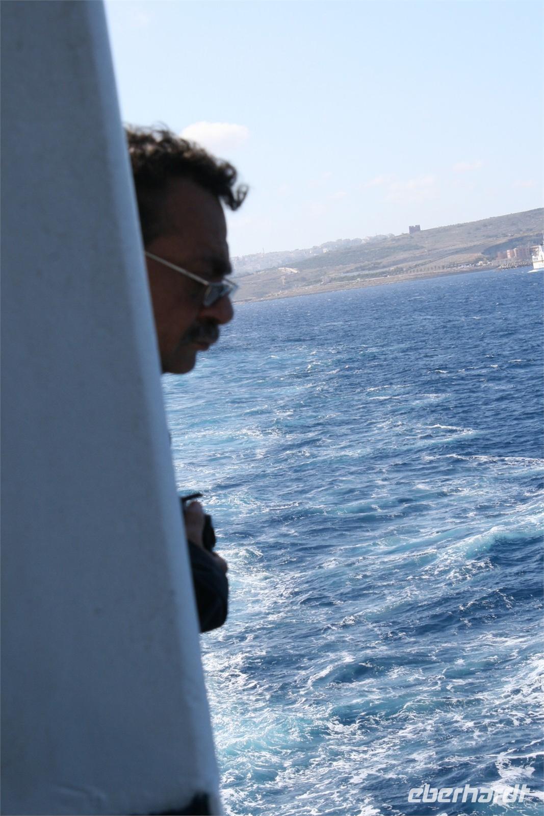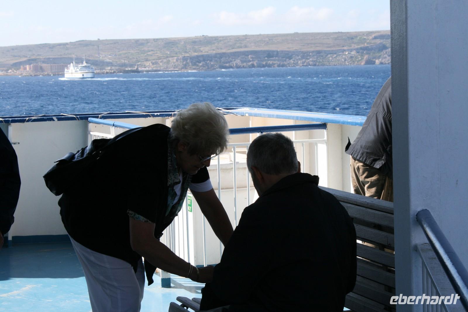 Der Wettergott meint es gut mit uns und so können wir schon die Fährüberfahrt nach Gozo genießen und bei strahlendem Sonnenschein unsere Nasen in den Wind hängen.