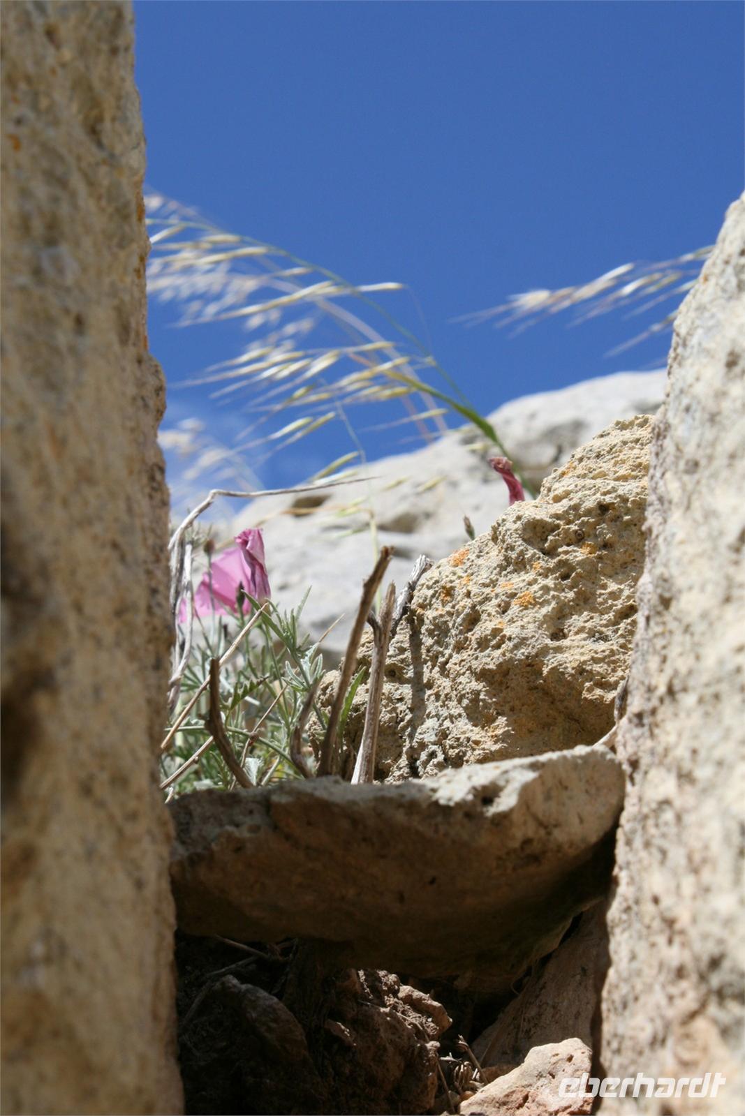 Als Gegensatz dazu beeindruckte uns natürlich auch die Calypso Bucht mit dem schönen roten Sandstrand und dem tollen Blick auf das weite Meer. Doch selbst hier gibt es schon Besonderheiten zu bewundern - sind doch in diesen Felsen "moderne" Schussanlagen installiert und eine Grundlinie in der Bucht gezogen, die Feinde abhalten soll.