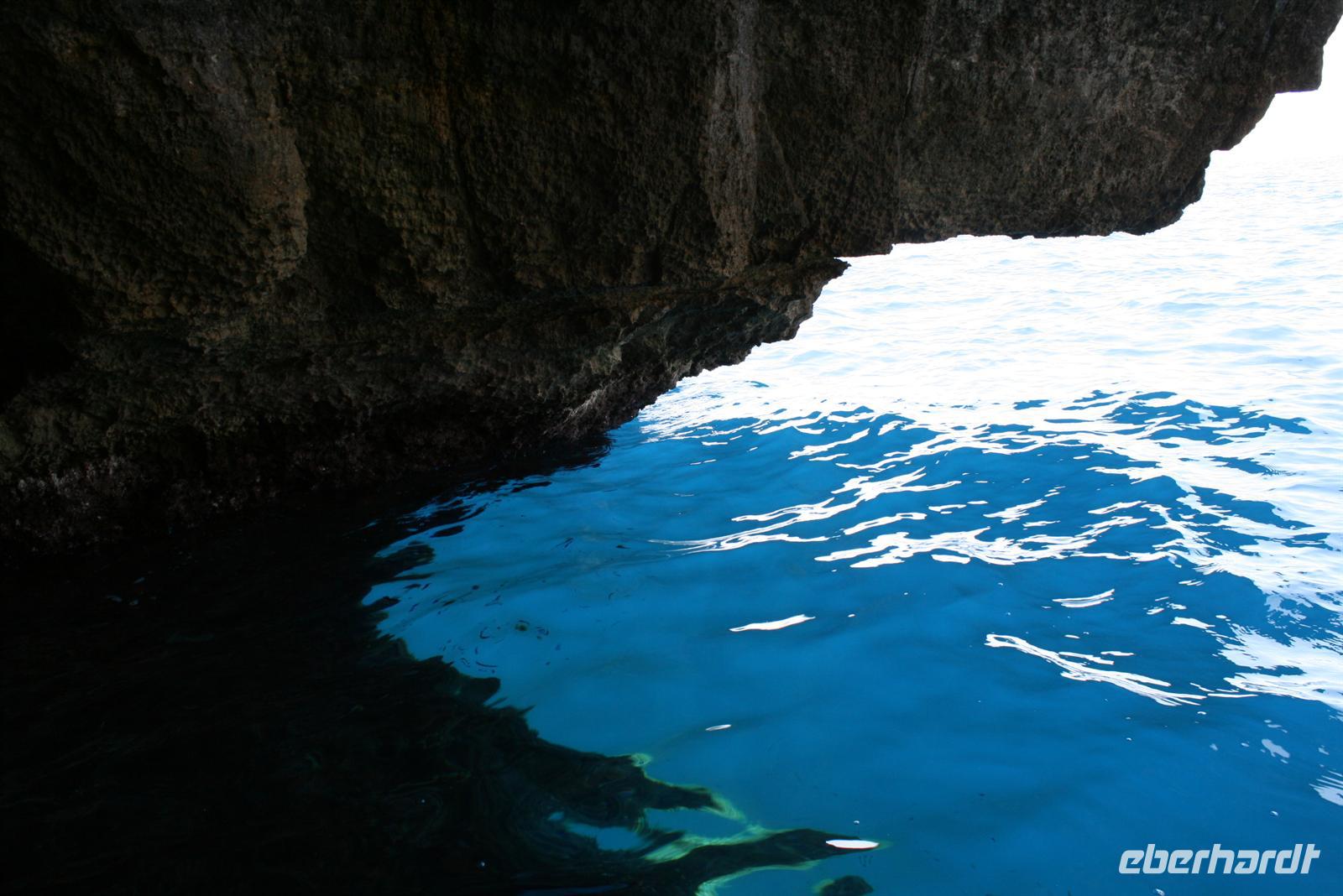 Ein Höhepunkt des Tages ist mit Sicherheit der Besuch der Blauen Grotte. Das Wasser ist klar und beim Sonnenschein schimmert das Wasser in seinen schönsten Blautönen. Einfach traumhaft.