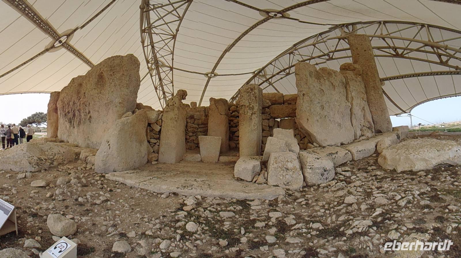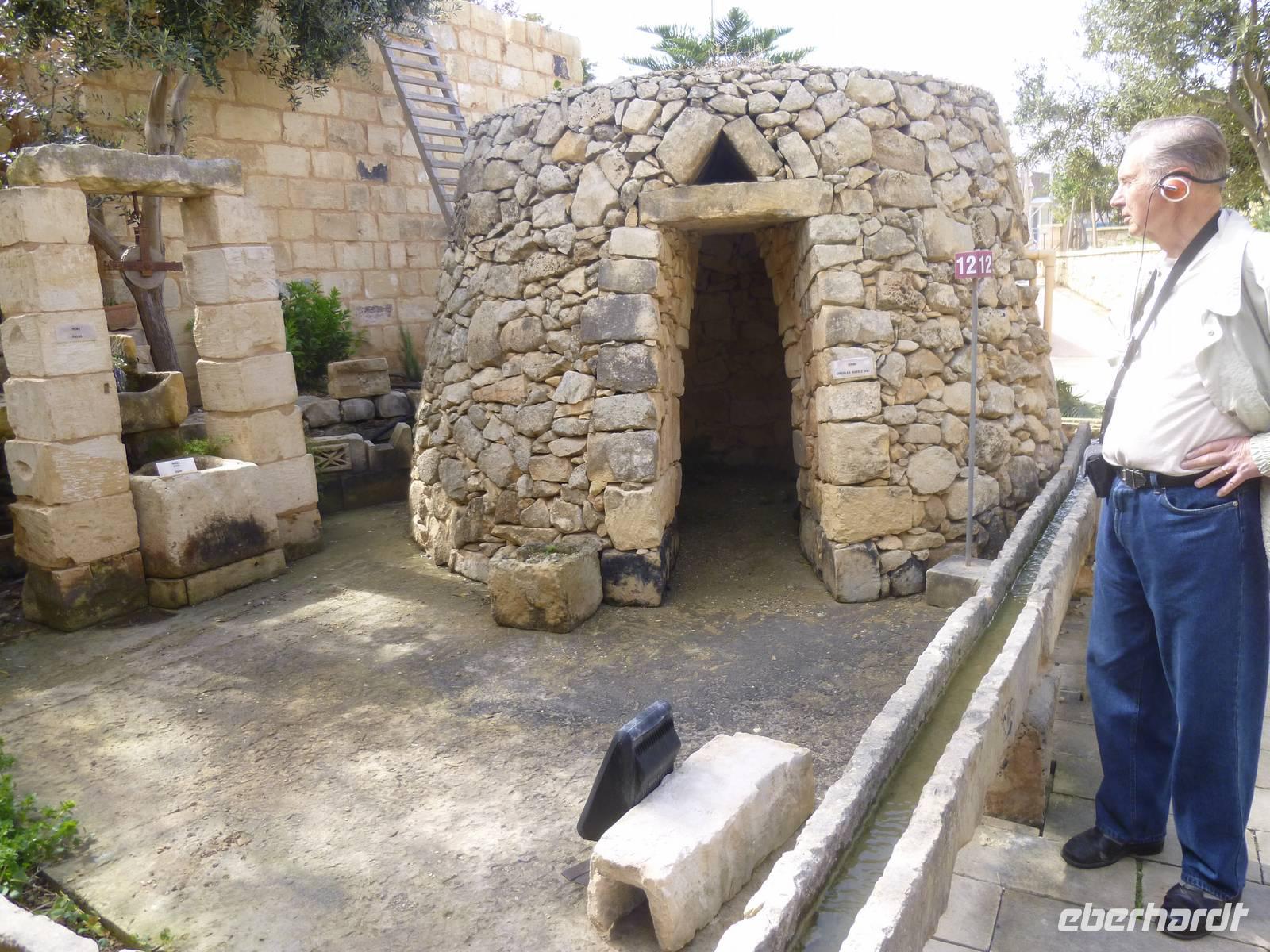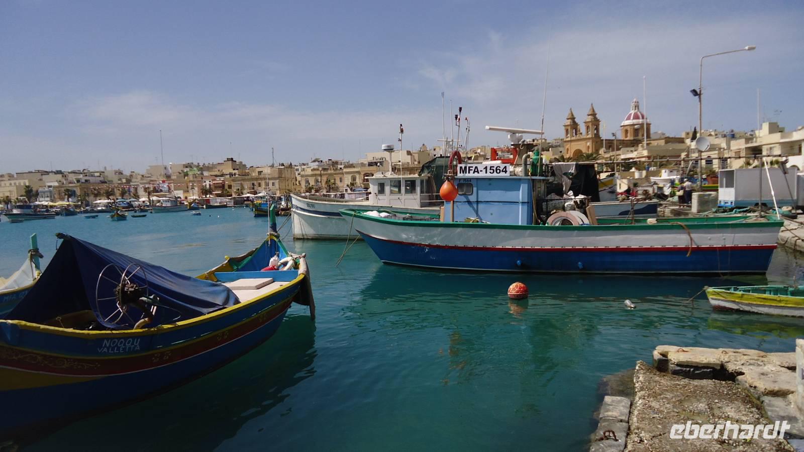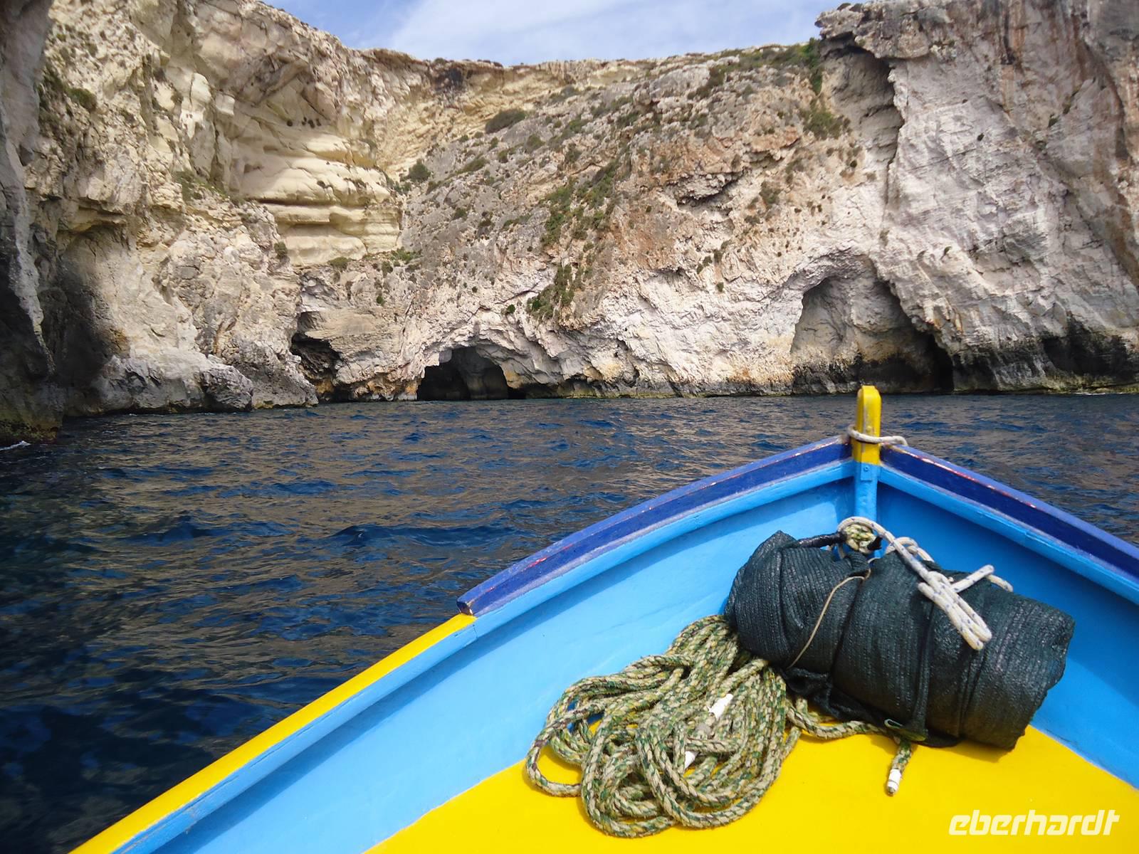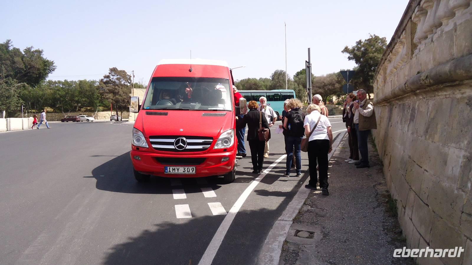 Unser erster Ausflug führt uns nach „Hager Qim", wo wir eine Tempelanlage aus megalitischer Zeit besuchen. Es handelt sich um das wohl älteste neolitische Bauwerk der Welt. Hier begrüßen wir den Frühling! Es ist etwas windig, aber angenehm warm. Good bye, Winter! Der zweite Anlaufpunkt des Tages ist die Blaue Grotte. Wir haben Glück mit dem Wind und dem Meer. So können wir eine Bootsfahrt unternehmen. Es hat sich 100 Prozent gelohnt. Durch die Einstrahlung der Sonne bestaunen wir wunderschöne Farbspiele und betrachten die tiefblaue Färbung des Wassers. Lustig war als sich Herr Schnabel mit mir auf dem letzten Schiff befand, aber das Ticket hatte seine Ehefrau auf dem 2. Schiff unserer Gruppe. Gott sei Dank, müssten wir nicht schwimmen und am Ende der Bootsfahrt konnte ich alle Tickets vorweisen.Noch etwas freie Zeit, bevor wir im kleinen Fischerdorf Marsaxlokk, einst wichtigster Hafen der Phönizier, unsere 2-stündige Mittagspause einlegen. Es ist hier fast wie Sommer, während es in Deutschland gerade schneit, wie wir auf Bildern per Handy sehen. Die bunt bemalten Holzboote im Hafen bieten einen traumhaften Anblick. Faszinierend ist die große Flotte farbenprächtiger Luzzu-Boote, die mit den zwei „Augen des Osiris", die Unheil abwenden sollen, geschmückt sind. Wir haben Zeit zum Bummeln oder zum Essen von fangfrischem Fisch und Meeresfrüchten. Als Ostergeschenk von Eberhardt TRAVEL überreiche ich jedem Gast typisch maltesisches „Nougat". Keine Zeit für Siesta (ein „Nickerchen"), denn wir besichtigen Ghar Dalam (Höhle der Finsternis), eine Karsthöhle und bedeutende Fossillagerstätte. Sie hat eine maximale Breite von 18 Metern, ist bis zu 8 Meter hoch und führt etwa 145 Meter weit in die Kalksteinfelsen, obwohl wir nur die ersten 30 Meter eintreten können. Letzte Station für heute sind die Tempel von Tarxien, errichtet von etwa 3.250 v. Chr. bis 2.500 v. Chr. Die Anlage aus der Jungsteinzeit ist seit 1992 Teil der UNESCO-Welterbestätte „Megalithische Tempel von Malta".