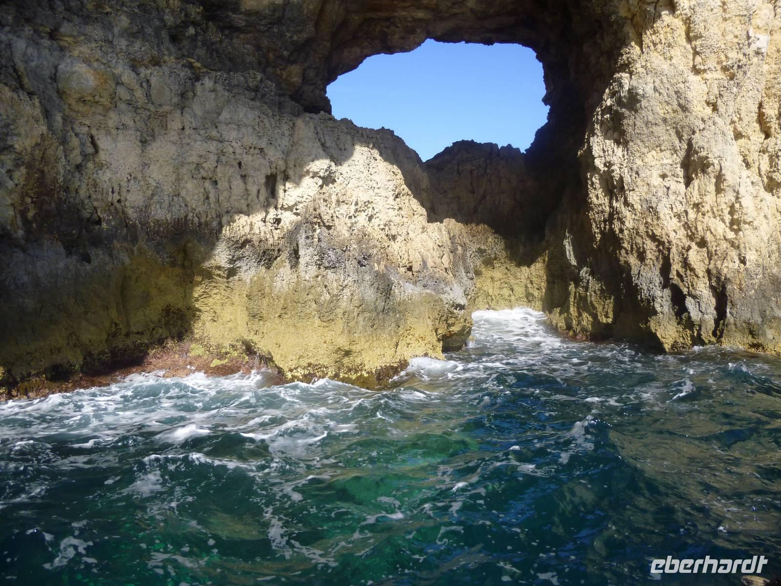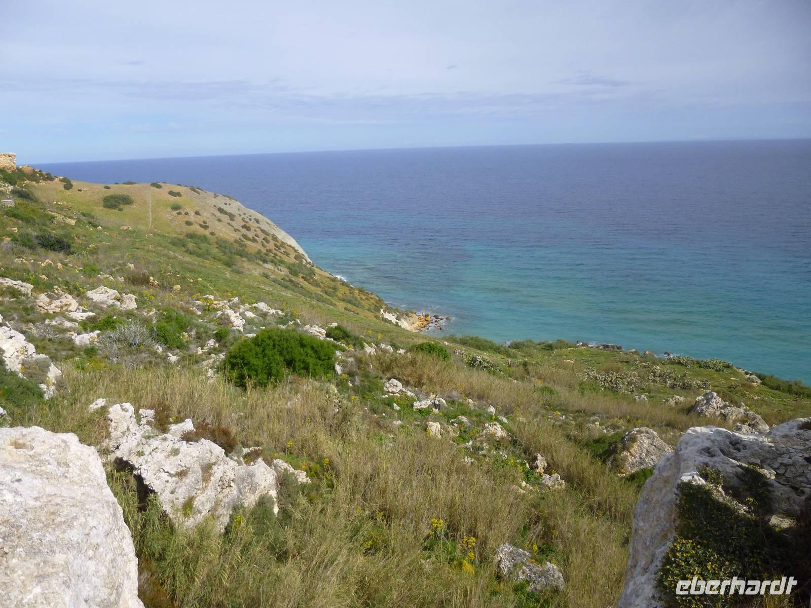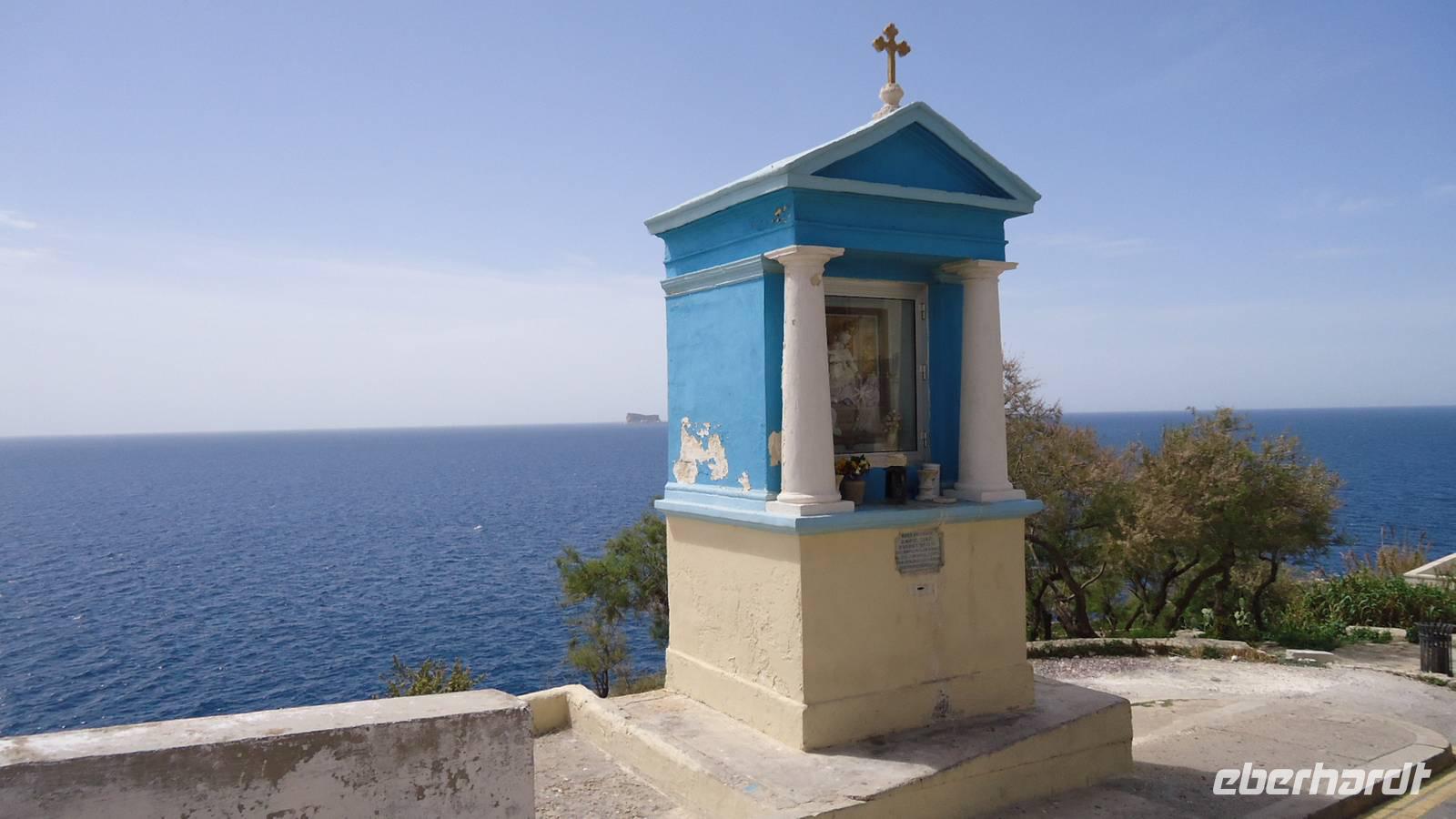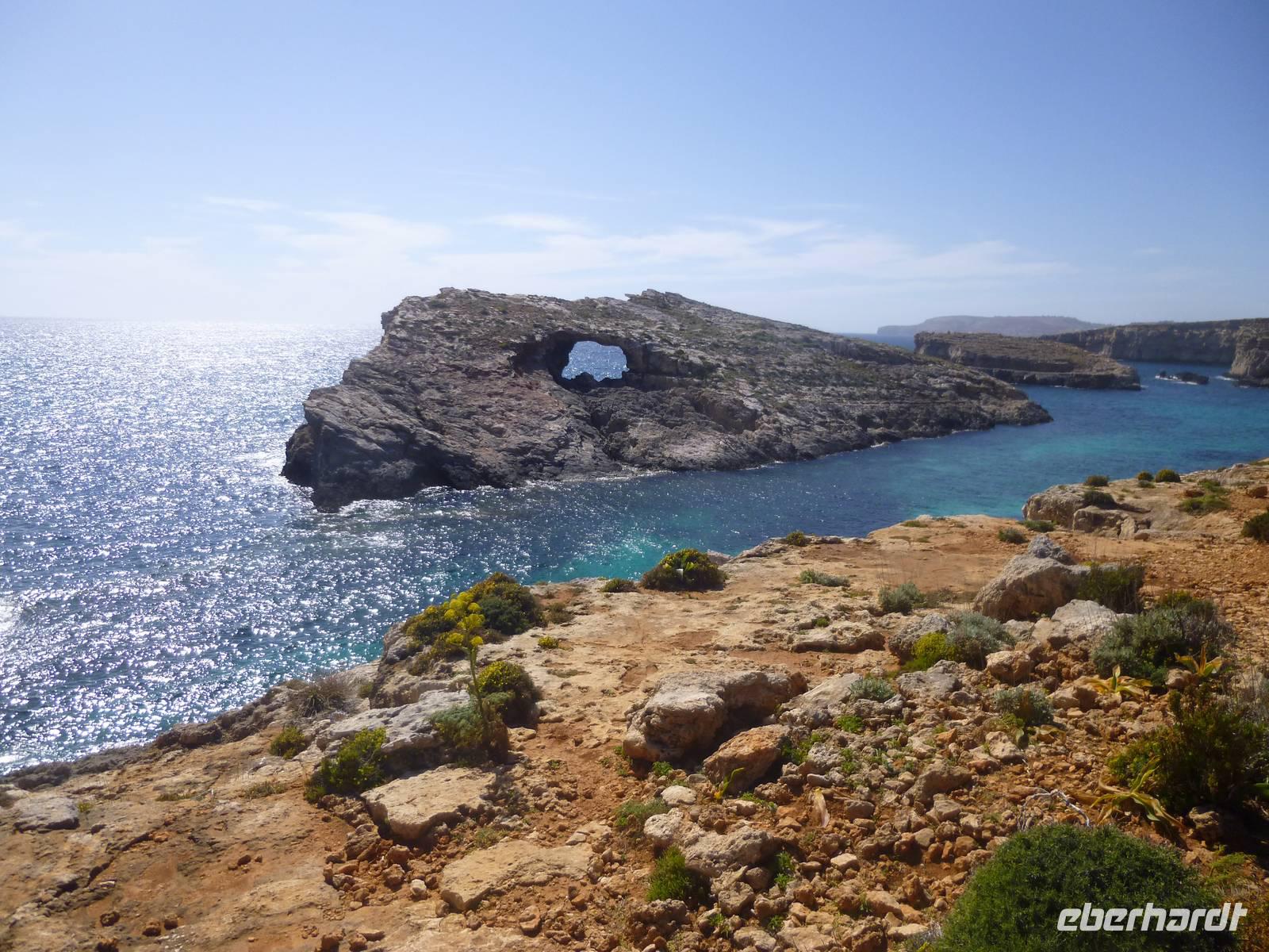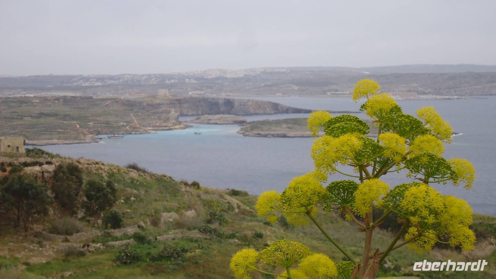 Am Nachmittag haben wir Freizeit. Mit sieben Reisegästen fahre ich nach Comino, zur kleinen Insel zwischen Malta und Gozo. Mit einem schnellen Boot so wie in der TV-Serie „Miami Vice" setzen wir zur wunderschönen und berühmten Blauen Lagune über. Unglaublich schön ist die hellblaue Farbe des Wassers. Ich schwimme im eiskalten Wasser. Wir begeben uns schließlich auf eine kleine Wanderung zur Festung von St. Maris Tower. Zurück zum Hafen nimmt die Fähre die Route entlang der Klippen. So machen wir Fotos von den vielen Grotten.