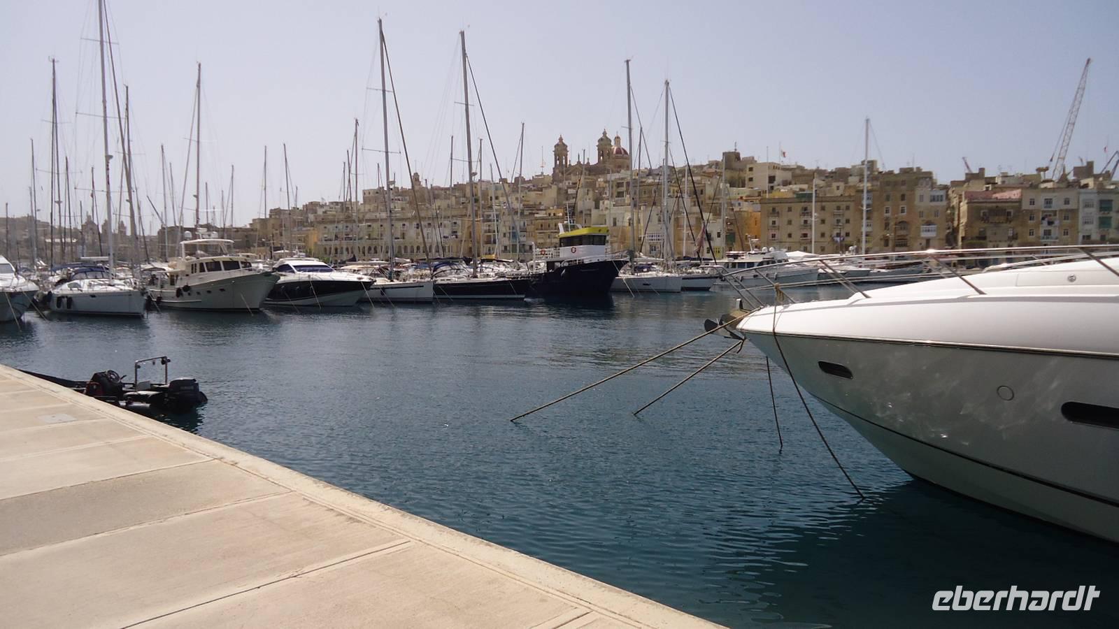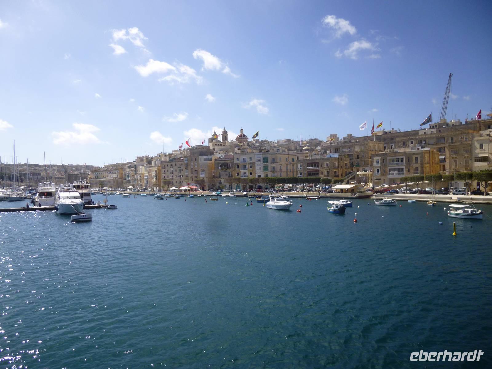 Heute steht für uns eine Hafenrundfahrt in Valetta auf dem Programm. Osternsonntag ist und die Sonne scheint stark, ein Feiertagswetter! Viele Gebäude und Kirche haben große Fahnen, die im Wind über der Landschaft flattern. Ohne viel Verkehr kommen wir am Hafen an und haben so Zeit zum Bummeln, bevor wir in das Boot einsteigen. Heute sehen wir die Hauptstadt Maltas aus einer anderen Perspektive und erblicken die Bastionen vom Meer aus.