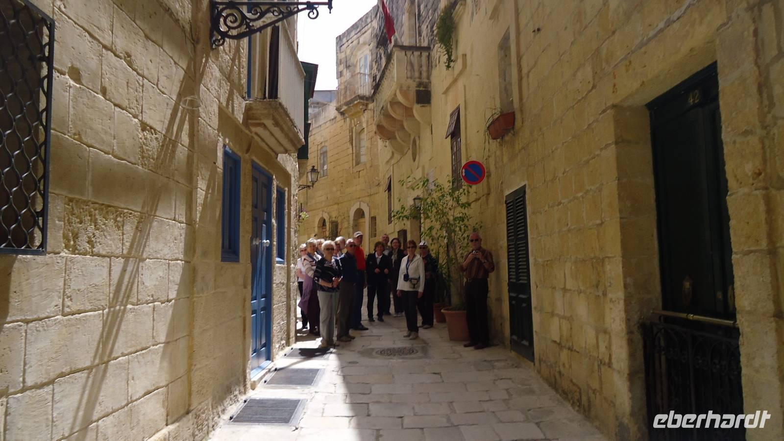 Heute wartet auf uns ein langer Tag mit vollem Programm! Also frühstücken wir stark und ausreichend. Zuerst besuchen wir einen örtlichen Milchbetrieb am Rand von Rabat. Wir erfahren viel Wissenswertes über die Milchproduktion auf Malta. Anschließend besichtigen wir in Siggiewi das „Limestone Heritage", einen modernen Steinbruch. Hier sehen wir das alte Handwerk des Steinabbaus, mit denen überall in Malta gebaut wurde. In Rabat gehen wir schließlich unter die Erde, zu den „St. Agatha Katakomben". Zu Fuß führt uns Pauline nach Mdina. Die riesigen Mauern scheinen die alte Stadt vor dem Trubel Rabats abzuschirmen. Nach dem Tor treten wir in eine andere Welt ein! Wir schlendern in den engen Gassen und plötzlich erhebt sich der Dom St. Paul´s Cathedral vor uns. Wie viele Kirchen auf Malta beeindruckt auch die St. Paul´s Church nicht nur mit ihrer Grotte sondern auch mit ihrer immens pompösen Ausstattung. Die folgende Freizeit nutzen wir zur Besichtigung des Cathedral-Museums. Auch genießen wir an den Stadtmauern den atemberaubenden Ausblick hinüber nach Valetta.