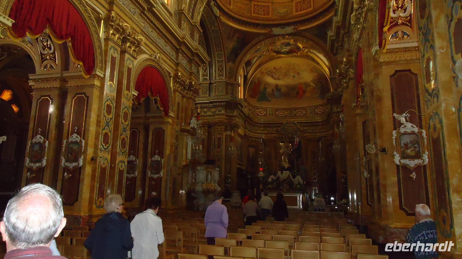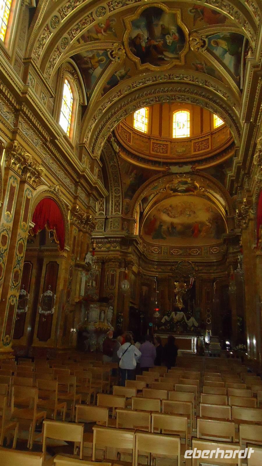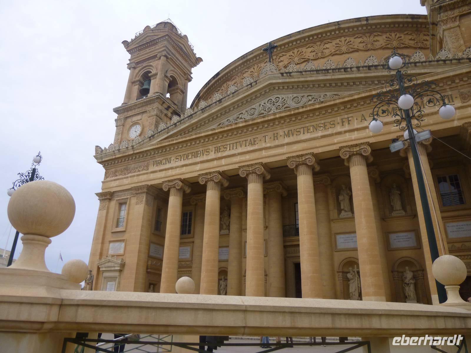 Zusätzlich zu unserem Programm machen wir eine Pause in Il-Mosta, um die Kuppel der Kirche zu bestaunen. Es ist die viertgrößte Kuppelkirche der Welt mit einem Durchmesser von 39 Metern. Nun wartet auf uns eine kleine Stadt im Nordwesten der Insel, Mgarr, eine typische Landgemeinde in einem abgelegenen Gebiet westlich von Il-Mosta. Die Bauern des Ortes wollten eine Kirche, aber hatten kein Geld. Sie sammelten es beim Eier-Verkauf und deswegen besitzt die Kuppel die Form eines Eies. Zum Abschluss des Tages ist die Golden Bay mit einem herrlichen Ausblick auf das blau-grüne Meer unser Ziel. Wir sehen auch das Hotel, in dem Königin Elisabeth II. schlief, als Sie hier zu Besuch war.