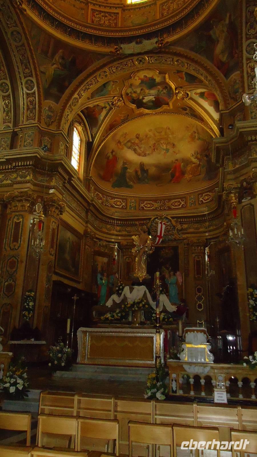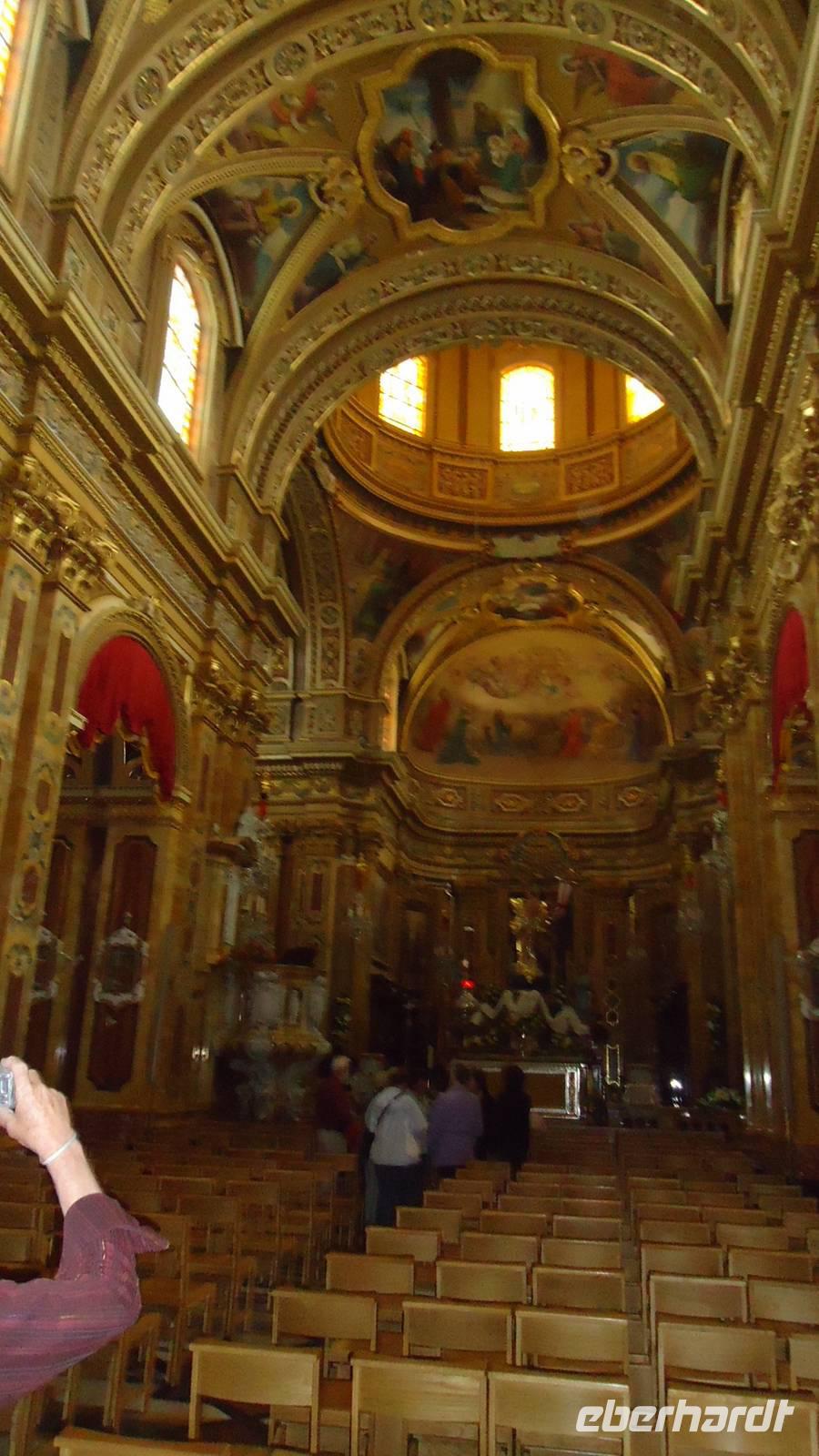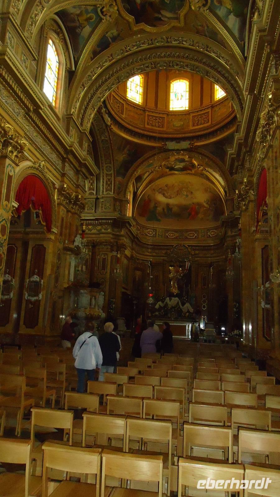 Zusätzlich zu unserem Programm machen wir eine Pause in Il-Mosta, um die Kuppel der Kirche zu bestaunen. Es ist die viertgrößte Kuppelkirche der Welt mit einem Durchmesser von 39 Metern. Nun wartet auf uns eine kleine Stadt im Nordwesten der Insel, Mgarr, eine typische Landgemeinde in einem abgelegenen Gebiet westlich von Il-Mosta. Die Bauern des Ortes wollten eine Kirche, aber hatten kein Geld. Sie sammelten es beim Eier-Verkauf und deswegen besitzt die Kuppel die Form eines Eies. Zum Abschluss des Tages ist die Golden Bay mit einem herrlichen Ausblick auf das blau-grüne Meer unser Ziel. Wir sehen auch das Hotel, in dem Königin Elisabeth II. schlief, als Sie hier zu Besuch war.