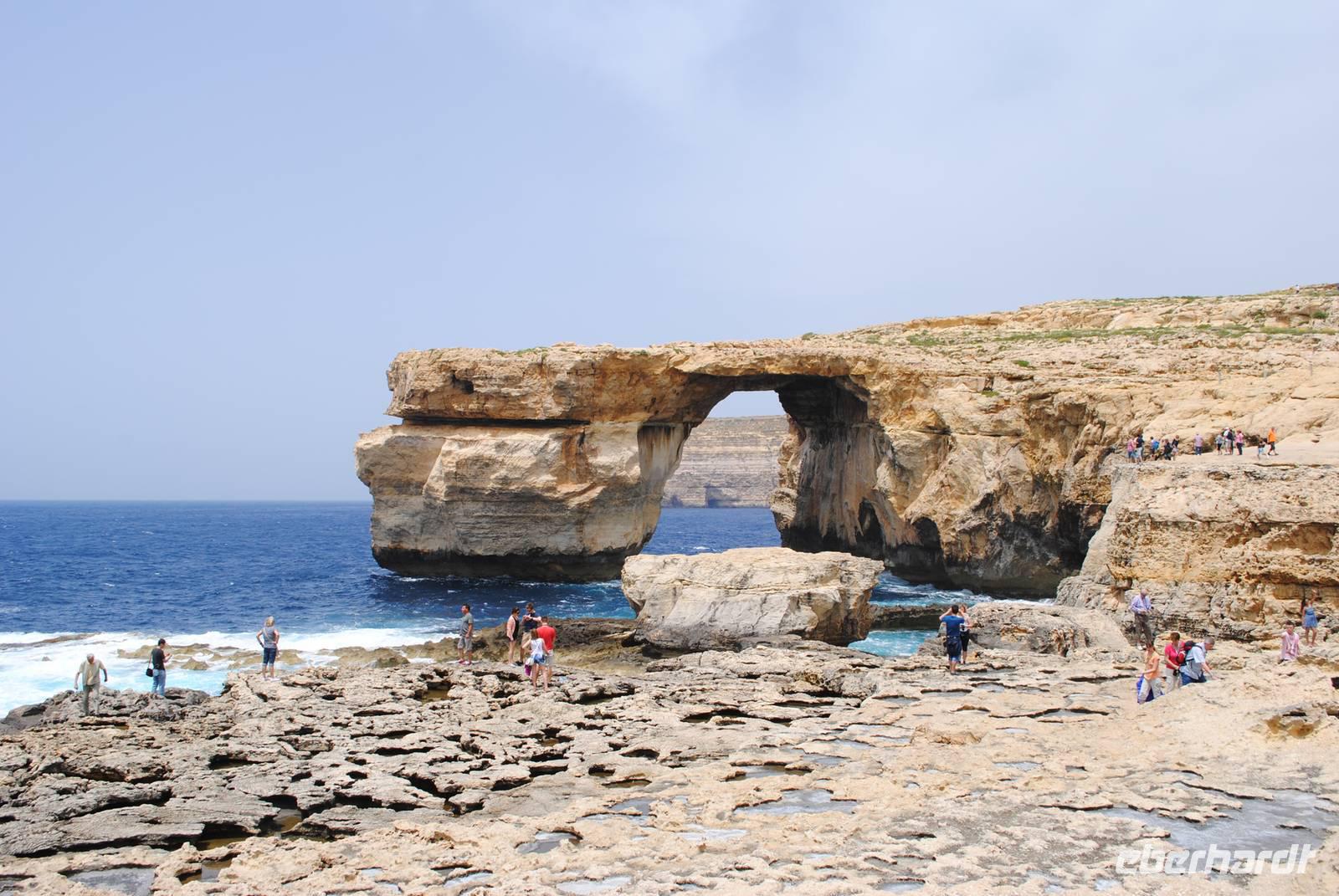 Heute sollte uns zunächst Maltas kleine Schwester Gozo begrüßen. Wir lernten unsere Reiseleiterin Anita kennen, die uns zum Fährhafen brachte und mit uns von Malta nach Gozo übersetzte. Mit dem Menschenstrom wurden wir von Bord geschwemmt und wurden gleich auf dem Parkplatz von unserem neuen Fahrer und Anita eingesammelt. Zuerst statteten wir der historisch wertvollen Tempelruine Ggantija einen Besuch ab und erfuhren viel über die ersten Bewohner der kleinen Insel, ihre Lebensweise und religiösen Riten. Anschließend bewegten wir uns durch die Antike beim Besuch von Calypsos Höhle. Vielleicht war es genau diese Höhle, in der der Seefahrer Odysseus gefangen gehalten wurde. Leider ist der Eingang heute abgesperrt und fast eingestürzt. Zum Mittagessen ließen wir uns an der malerischen Bucht von Xlendi nieder und genossen den Blick von einem der Restaurants direkt aufs Wasser oder spazierten entlang der Steilhänge, die die Bucht umschließen. Der nächste Stopp wurde dann am weltbekannten Azure Window eingelegt, welches sich als Fotomotiv besonders oft auf Postkarten wieder findet. Wir kletterten ein wenig auf den vom Meer geformten Muschelkalkfelsen umher und machten unser eigenens Foto vom steinernen Fenster. Die letzte etappe des Tages führte uns in Gozos Hauptstadt Rabat/Viktoria, wo wir trotz Lärm und vieler Bauarbeiten die weit oben gelegene Zitadelle erklommen und den Ausblick über die Stadt genossen. Anschließend konnte jeder noch für sich ein wenig die umliegenden Straßen erkunden oder maltesische Spezialitäten einkaufen. Am Nachmittag gingen wir erneut an Bord der Fähre und schipperten gemütlich zurück nach Malta. Nach dem ersten richtigen gemeinsamen Abendessen konnte heute nun jeder auf eigene Faust die St. Julians Bucht erkunden oder sich nach dem langen ersten Ausflug entspannen.
