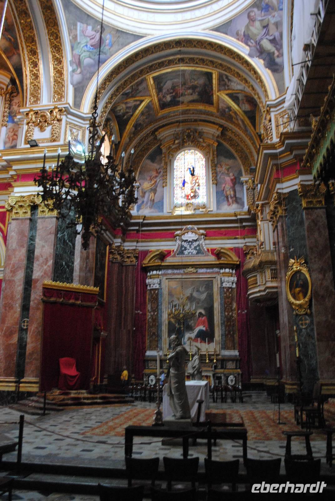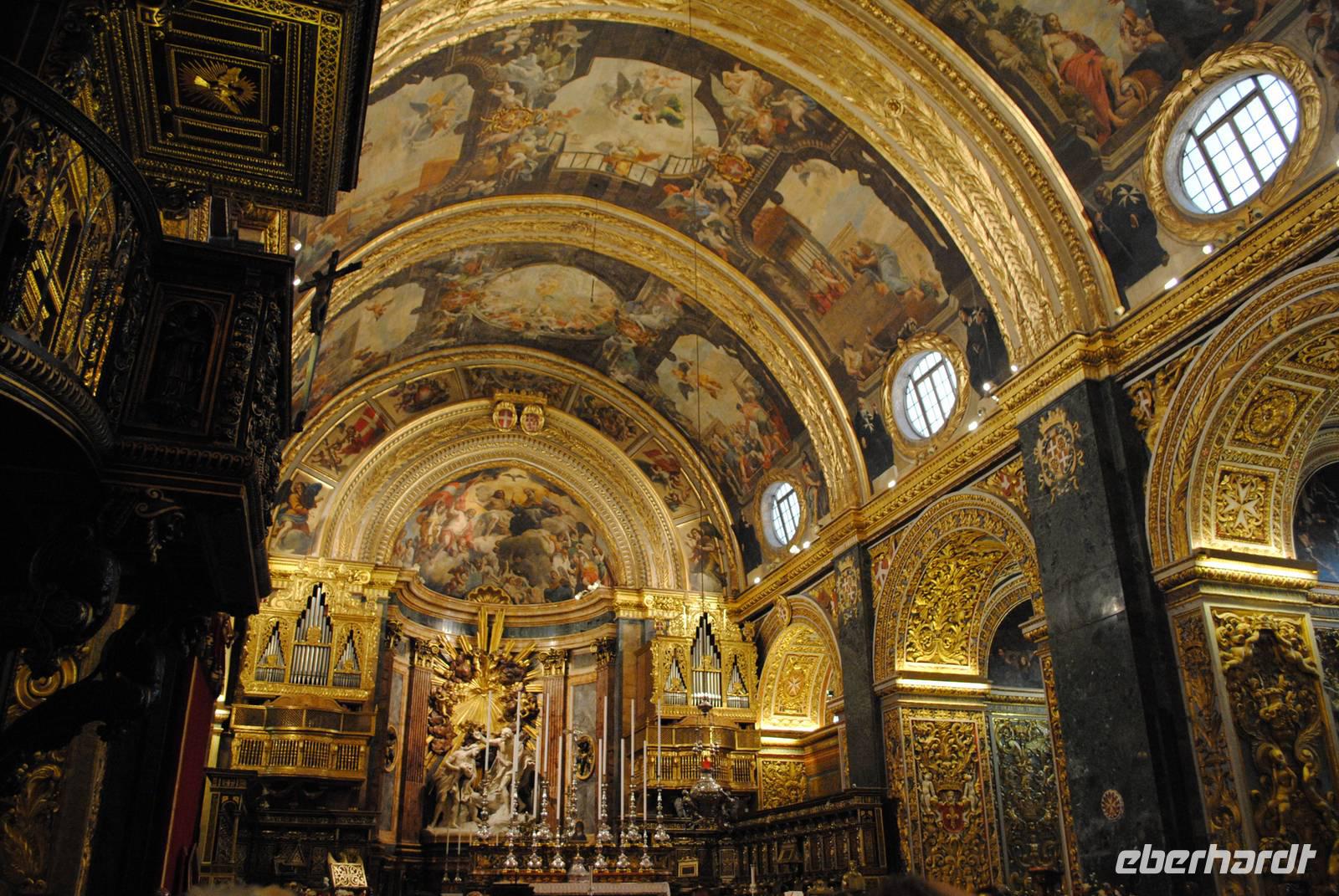 Unser letzter Programmtag in Malta sollte es noch einmal in sich haben. Heute besuchten wir die neue und vielseitige Hauptstadt Valletta. Die gute Aussicht genossen wir zuerst von den Barracca Gärten, von deren Außenmauer man noch einmal den großen Hafen in seiner Gesamtheit überblicken konnte. Dann spazierten wir weiter zur Johannes-Co-Kathedrale und bestaunten deren reich mit Gold und Marmor verzierte Innenräume. Versteckt im Nebenzimmer konnten wir dann, streng bewacht von Personal, die Gemälde des berühmten Künstlers Caravaggio betrachten. Weitere Kunstwerke erblickten wir anschließend im reich geschmückten Großmeisterpalast des Ritterordens. Wir konnten die opulenten Räume und Flure, den Thronsaal und kostbare Wandteppiche bestaunen. Zur Mittagspause hatten wir dann rund um den Georgplatz Zeit, um in ein Restaurant einzukehren oder durch die Straßen zu schlendern. Anschließend trafen wir uns dann vor dem Justizpalast und spazierten zum archäologischen Museum, wo wir noch einmal wertvolle Ausgrabungs-Schätze bewundern konnten, wie zum Beispiel die bekannte „Schlafende", eine Steinplastik von einer sehr wohlgenährten schlafenden Frau, deren Proportionen zur Zeit ihrer Herstellung das Idealmaß darstellten. Den Abschluss unseres Reiseprogramms bildete schließlich ein Besuch der Filmvorführung „The Malta Experience", in der für uns die vielen bereits gehörten und gesehenen Fakten zur Geschichte Maltas noch einmal in Bild und Ton zusammen gefasst wurden. Mit den vielen Eindrücken der Woche erreichten wir schließlich am frühen Abend wieder unser Hotel und verabschiedeten uns herzlich von unserer Reiseleiterin Anita. Später trafen wir uns dann zum letzten gemeinsamen Abendessen, denn morgen stand für einige von uns bereits die Rückreise auf dem Programm.