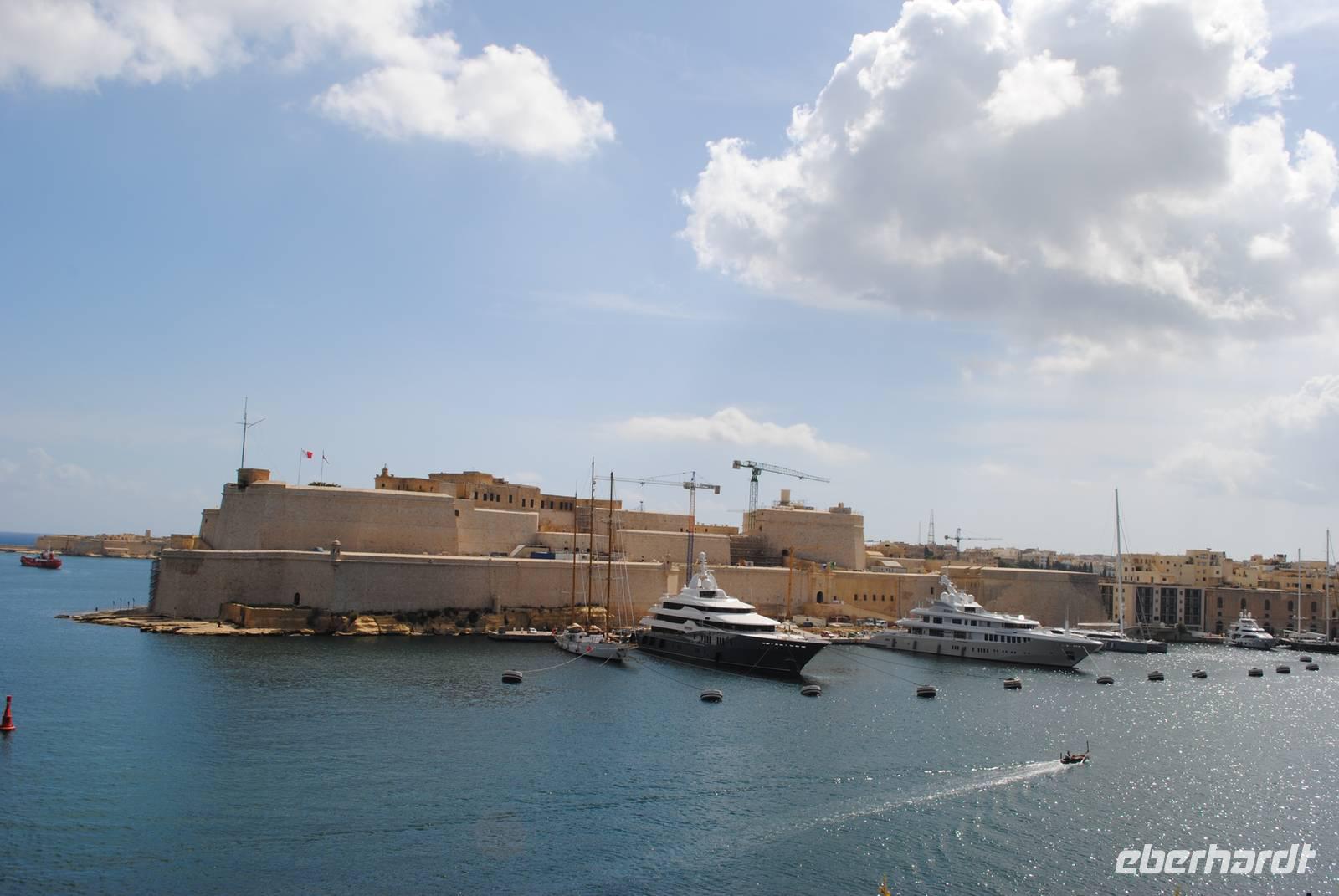 Heute besuchten wir die sogenannte Cottonera, wie das Gebiet der drei alten Städte Senglea, Vittoriosa und Cospicua insgesamt genannt wird. Zuvor legten wir jedoch noch einen Stopp in Qormi bei einem maltesischen Bäcker ein. Im Familienbetrieb wurde hier der Teig noch per Hand geknetet und im alten Steinofen gebacken. Jeder durfte eine frische Scheibe Weißbrot kosten, bevor es zum eigentlichen Programmpunkt des Tages weiter ging. Wir erreichten am Vormittag den Aussichtspunkt in Valetta mit seinem Wachturm, der Augen und Ohren an allen Seiten hat. Von hier hatten wir einen guten Blick auf die drei alten Städte, die in die fingerförmigen Buchten hineinragen. Weiter ging es zum tiefer gelegenen Hafenbecken, um das Gebiet noch einmal aus anderer Perspektive zu sehen. Schließlich begannen wir unseren Rundgang durch die vielen alten Straßen und Gassen mit in Wände gemeißelten Heiligenfiguren und liebevoll gestalteten Holzbalkonen. Anita führte uns zielsicher durch das Gewirr von Kalksteinmauern und bunten Türen und zeigte uns historisch bedeutsame Gebäude ebenso wie einfache Wohnhäuser, die sich von unserer Wohnkultur deutlich unterscheiden. Unsere Mittagspause legten wir heute an Grand Harbour ein, wo man die Wahl unter verschiedenen Restaurants hatte oder entlang des Wassers spazieren gehen konnte. Gleich dort trafen wir uns anschließend wieder zum Highlight des Tages: Eine Hafenrundfahrt mit einem sogenannten Luzzu-Boot. Der deutsche Audiokommentar an Bord erklärte uns die vielen sehenswürdigkeiten, wie das Fort St. Elmo, die Barracca-Gärten, die mächtige (geparkte) Bohrinsel mitten im Hafen und natürlich die drei alten Städte selbst. Wir endeten schließlich in Sliema und gingen gut durchgelüftet wieder von Bord, wo unser Fahrer uns zum Ende des heutigen Ausflugs zurück ins Hotel tranferierte. Zum Abendessen trafen wir uns dann schließlich in der Lobby mit Anja und gingen nur einige Minuten zum gebuchten Restaurant Gululu, wo uns drei Gänge von typisch maltesischen Speisen serviert wurden.