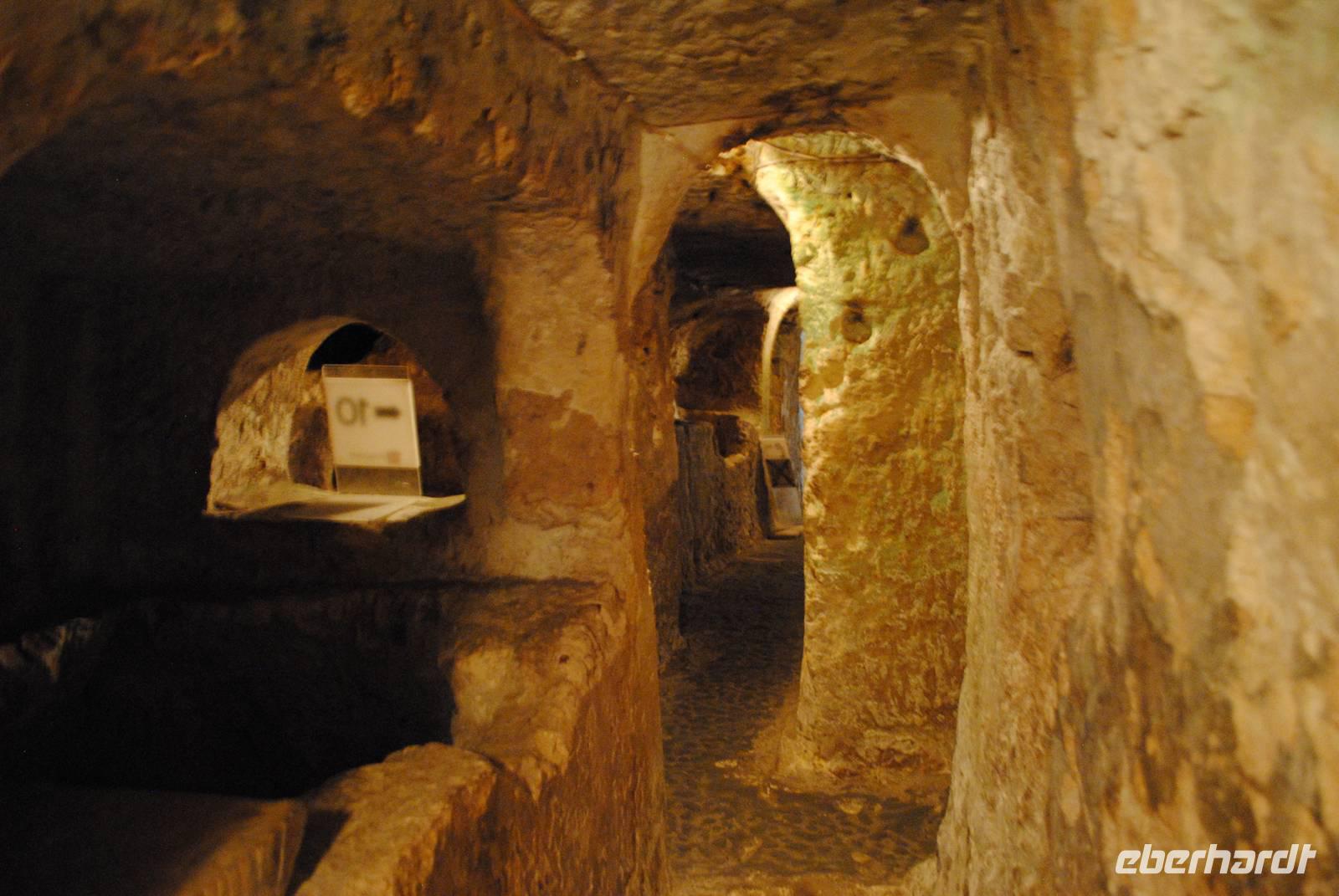 Heute ging es gemütlich durch den Tag, denn wir sollten nur bis Mittag unterwegs sein. Zuerst besuchten wir die Dingli-Klippen im Norden der Insel, die hier ganz besonders steil abfallen. Die kleine Kapelle dort wirkte so mitten im Nirgendwo ein wenig verloren. Anschließend besuchten wir die St. Pauls Katakomben in Rabat, die wir schon vorher mit dem Limestone Heritag getauscht hatten. Unten in den weit verwinkelten Gängen und Höhlen war es für uns gut vorstellbar, dass man von hier unterirdisch an jeden anderen Ort der Stadt gelangen kann. Wir sahen die verschiedenen aus Stein gehauenen Tische, Grabnischen und Tunnel, die ein verschachteltes Labyrinth bilden. Zurück im Tageslicht fuhren wir schließlich zum abgelegenen Weingut Meridiana, wo wir einen Blick in den Weinkeller werfen durften und schließlich zwei hier produzierte Weine mit Käse verkosten konnten. Managerin Rita erzählte uns dabei viel über die Weinproduktion und die Geschichte des Weinguts. Angeheitert traten wir am Mittag schließlich den Rückweg nach St. Julians an, wo jeder ganz nach Belieben den Nachmittag verbringen konnte. Der Hotelpool, die Bucht oder das nahe gelegene Hafenviertel luden zum Entspannen oder Flanieren ein.
