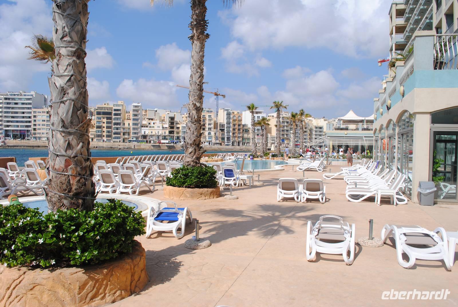 Am heutigen Nachmittag reisten wir von Berlin und Frankfurt per Direktflug nach Malta - unser Domizil für die nächsten Tage - wo wir uns schließlich am Abend gleich am Flughafen trafen und als Gruppe zusammen schlossen. Anja, unsere Betreuerin vor Ort, begrüßte uns und organisierte die Fahrt ins Hotel. Trotz fortgeschrittener Uhrzeit wurden wir mit Kinnie, der typisch maltesischen Limonade aus Bitterorangen und Kräutern, empfangen und bezogen gleich darauf unsere Zimmer im Cavalieri Hotel an der St. Julians Bucht, wo uns unser großes Bett und ein spätes Abendessen erwarteten.