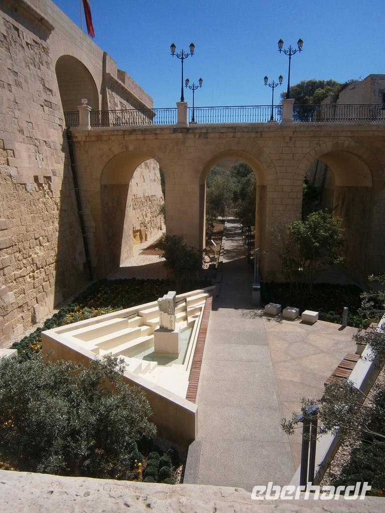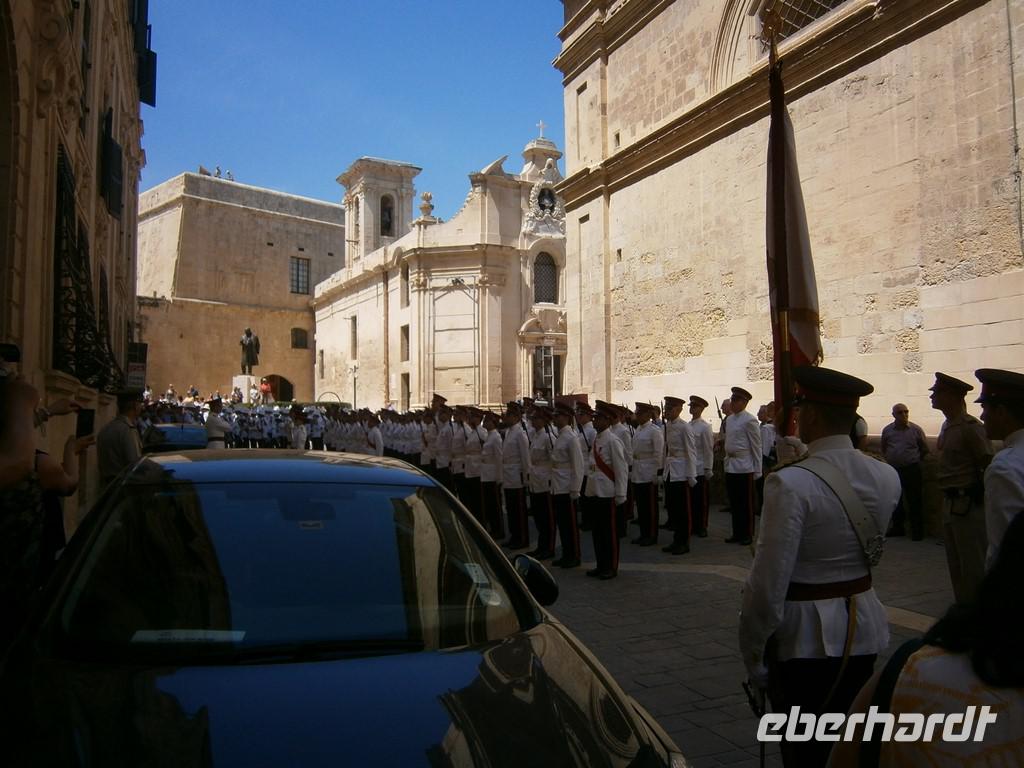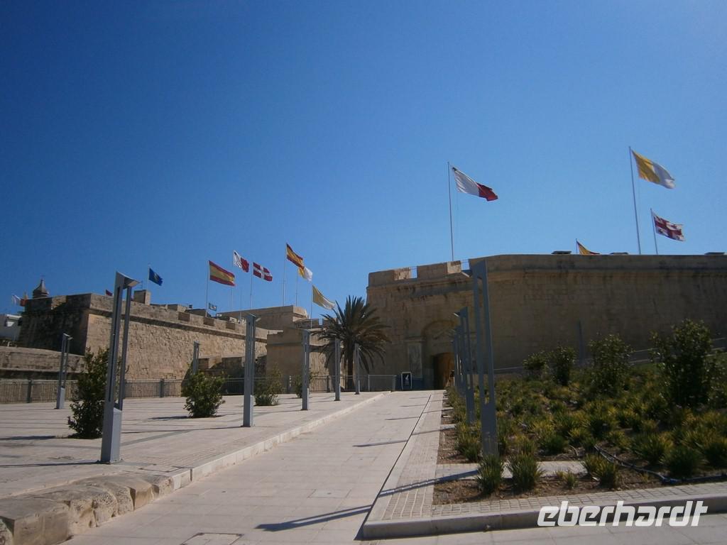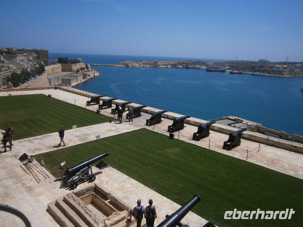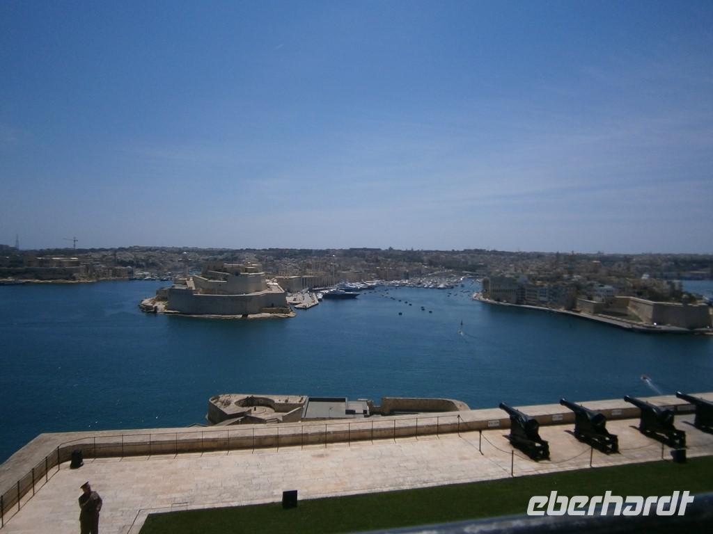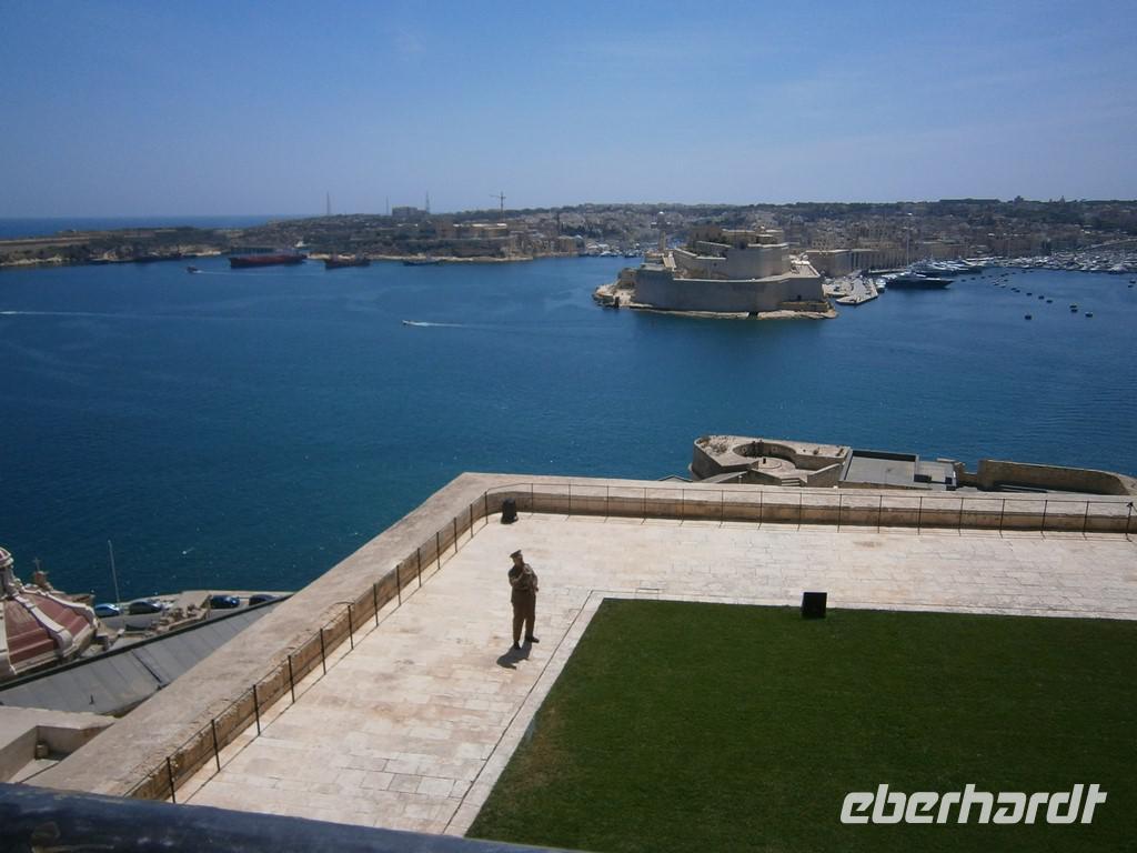 Vorbei ging es am Sitz des Präsidenten, bei dem gerade Vorbereitungen zum Empfang des Staatschefs aus Montenegro im Gange waren. Zu den Barrakka Gärten, eine wunderschön angelegte Gartenanlage von der man einen phantastische Blick über den Grand Harbour hat. Gerade Mittag sahen wir nochmal den Abschuss der Kanone, diesmal direkt.