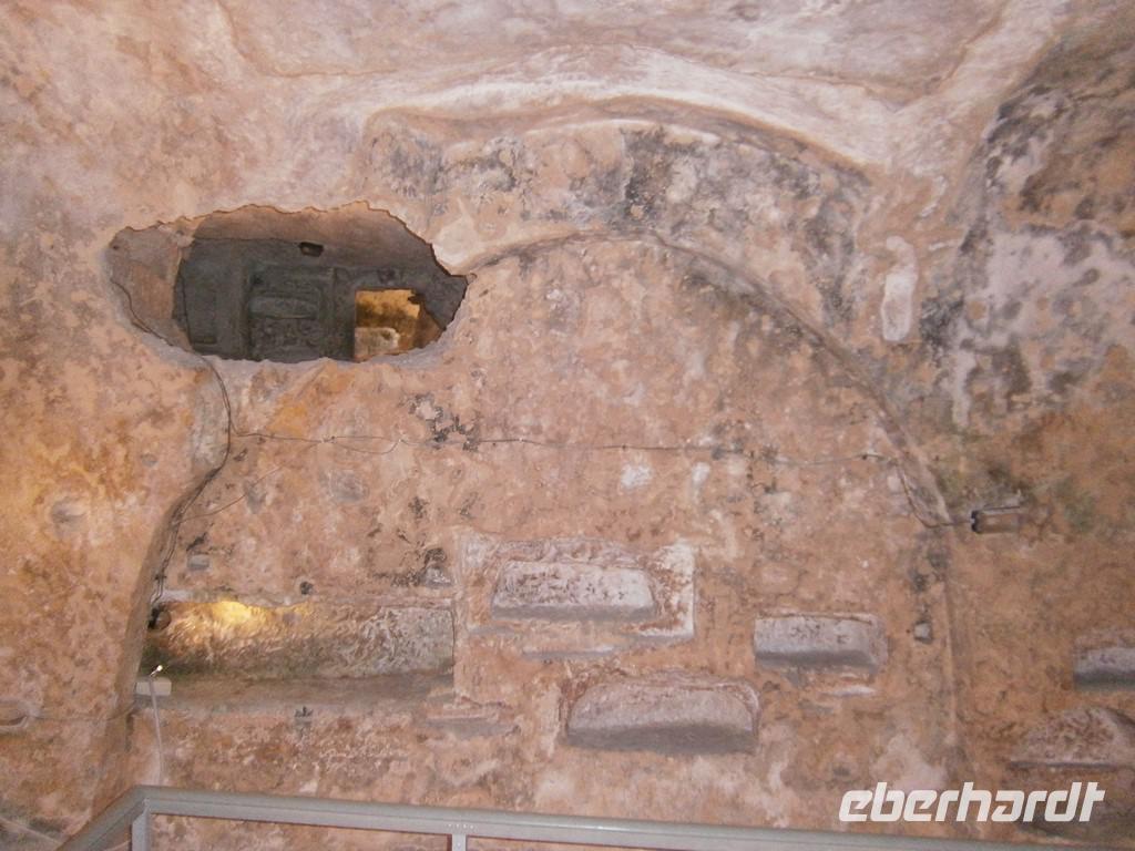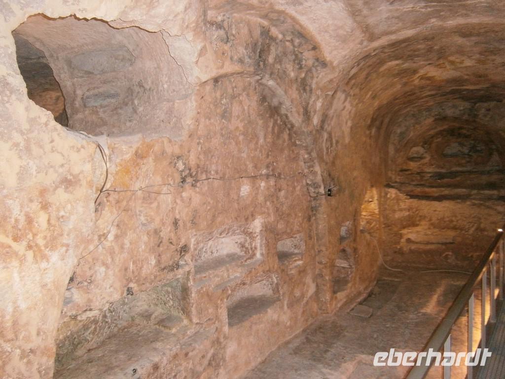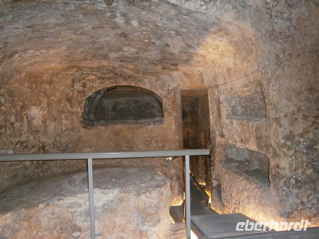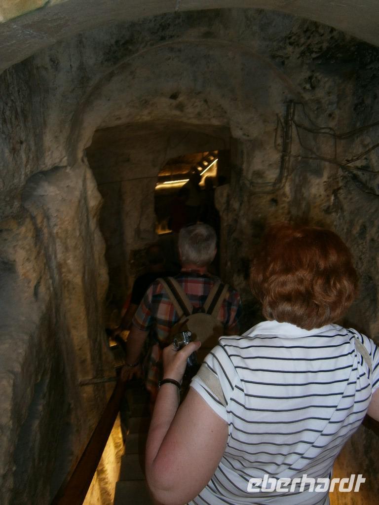 Obwohl wir gerade von Frühstück kamen, war der erste Stopp an diesem Tag eine kleine Bäckerei. Wir erfuhren dort, wie das maltesische Sauerteigbrot hergestellt wird und bekamen natürlich auch eine Kostprobe. Dann ging es nach Rabat, wo wir in die „St. Pauls" Katakomben stiegen. Diese waren aus dem 4.Jahrhundert v. Chr.