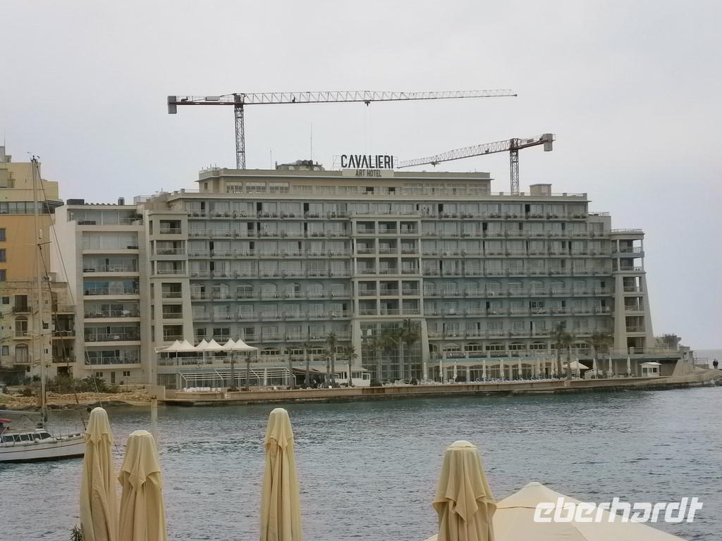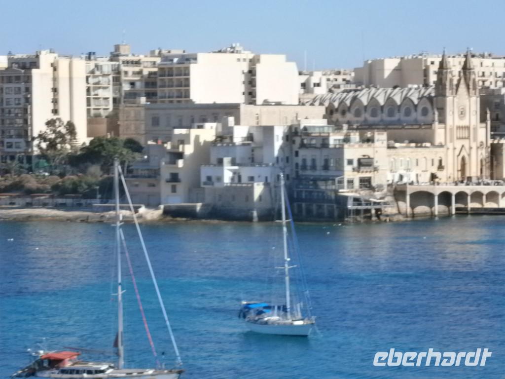 Wir wurden von Anja und Chris begrüßt, die uns zu unserem Bus begleiteten. Im Hotel warteten schon die Gäste aus Frankfurt. Nachdem alle eingecheckt hatten, gab es ein Willkommensgetränk.Später trafen wir uns alle zum Abendessen und genossen die leckeren Speisen und süßen Köstlichkeiten vom Buffet.Das Cavalieri Hotel lag in einer schönen Bucht in St. Julians. Wir konnten vom Tisch die Boote beobachten und aufs Meer sehen.