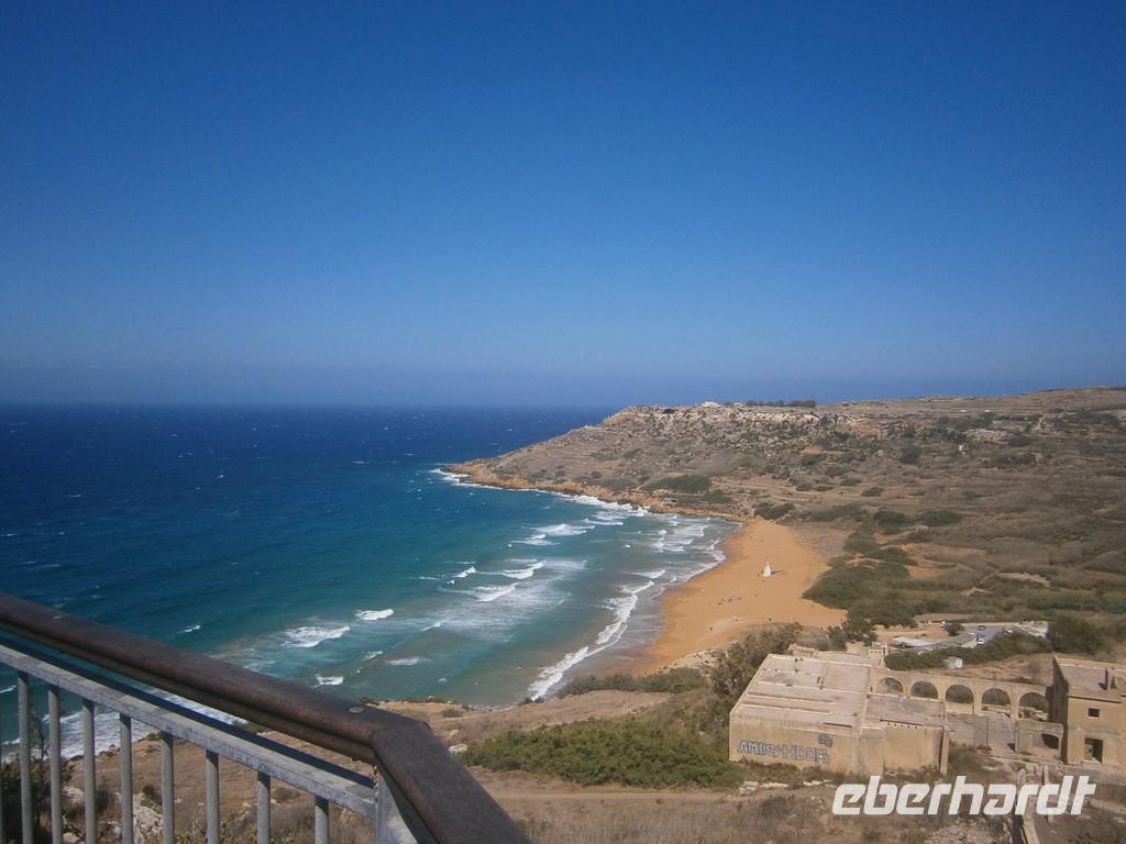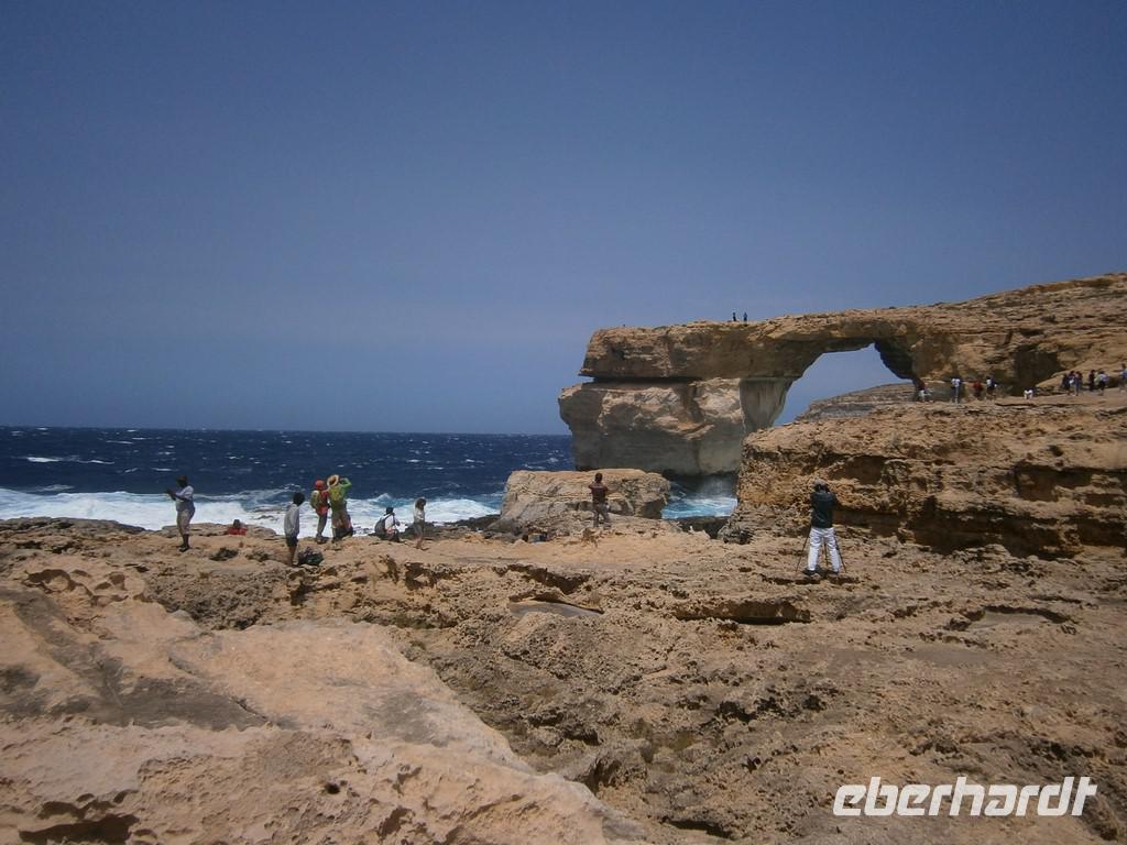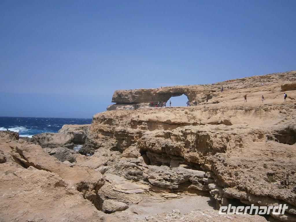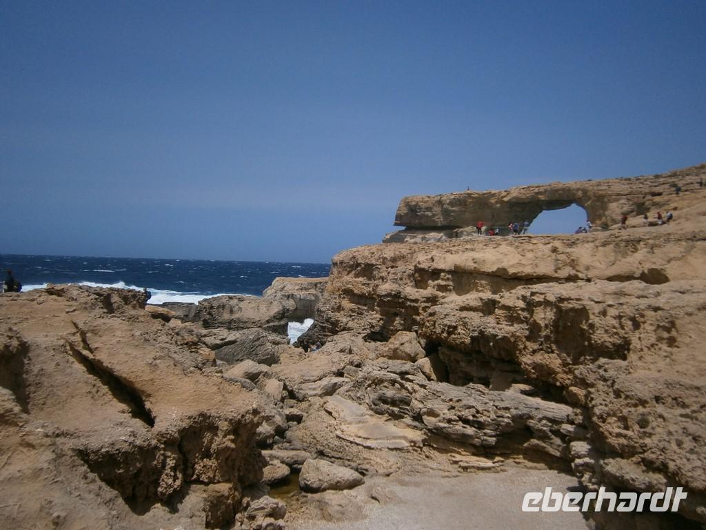 Zeitig trafen wir uns vorm Hotel, da wir zur Fähre nach Gozo mussten. Leider hatten sehr viele den gleichen Gedanken und so war viel los am Ableger. Nach der kurzen Überfahrt, erreichten wir die kleine Schwesterinsel Gozo. Gozo ist nur 14 mal 7 km groß. Wir stiegen als erstes die über 100 Stufen zur Zitadelle hinauf. Vorbei an der Kathedrale ging es durch die engen Gassen nach oben. Auf dem kleinen Marktplatz konnte man sich dann etwas ausruhen, bevor uns der Bus wieder abholte. Das berühmte Wahrzeichen Gozos, das „Azure Window", welches die Umwelt so formte, besuchten wir als nächstes. Leider war sehr viel Wellengang und so konnten die kleinen Boote nicht fahren. Der Blick durchs „blaue Fenster" war aber unglaublich - das tolle Blau des Himmels und das türkise Meer...