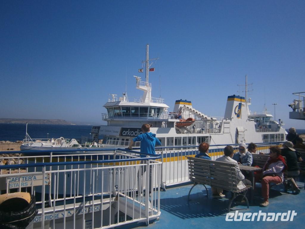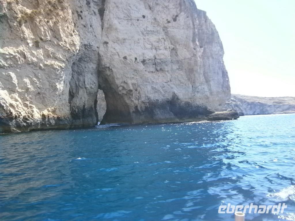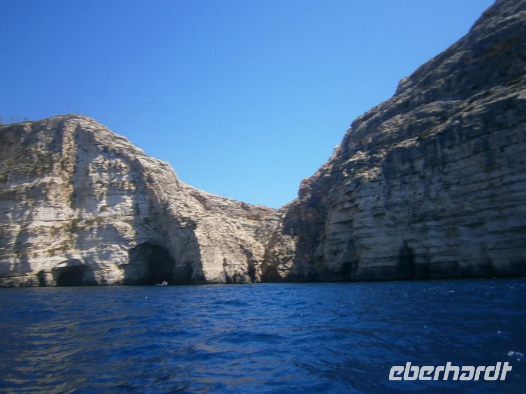 Zum Abschluss besuchten wir noch die Grotte des Odysseus. Er war nach einer 20-jährigen Irrfahrt vor der Insel gestrandet. Die Nymphe Kalypso hielt ihn 7 Jahre gefangen, weil sie sich in ihn verliebt hatte. Aber Odysseus wollte heim. Mit Hilfe der Götter lies sie ihn schweren Herzens ziehen.....Nachdem wir wieder an der Fähre waren ging es zurück nach Malta. Chris holte uns ab und brachte uns zum Hotel.
