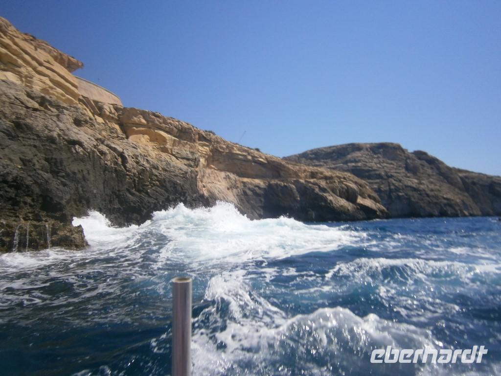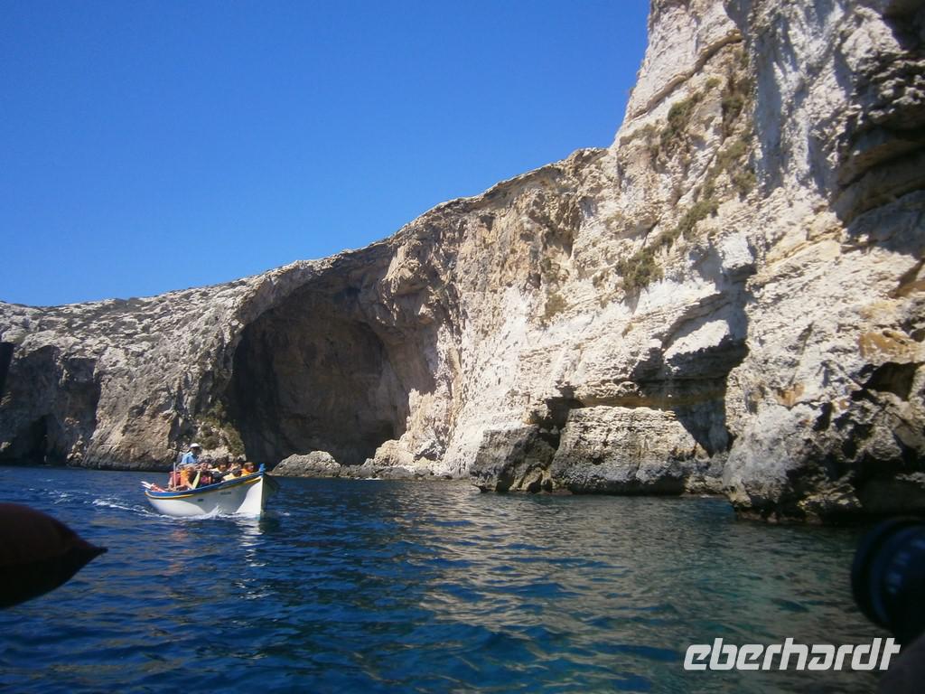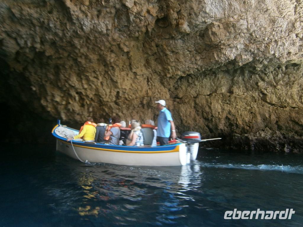 Dann bestaunten wir die Reste der Tempelanlagen. Es war beeindruckend, wie das damals entstanden ist.Weiter ging es zur blauen Grotte. Dort machten wir mit den kleinen Fischerbooten eine Fahrt durch die Grotte. Wir wurden zwar durchgeschüttelt, aber es war unglaublich schön.In Birzebbuga besuchten wir die Höhle Ghar Dalam, eine 144 Meter lange natürliche Höhle und das Museum wo unglaublich viele Tierknochen aufbewahrt werden.Im wunderschönen Fischerdorf Marsaxlokk verbrachten wir unsere Mittagspause. Die vielen farbenprächtigen Fischerboote, die am Bug mit Augen verziert sind, waren toll. Die vielen Restaurants luden zum Essen ein und durch die vielen Marktstände hier, verging die Zeit wie im fluge.Auf dem Heimweg hielten wir im Park und bei einem maltesischem Likör und maltesischem Nougat verabschiedeten wir uns.Leider vergingen die Tage rasend schnell.Wieder im Hotel trafen wir uns zum Abendessen.Wir verabschiedenten alle die noch einpaar Tage länger bleiben durften.