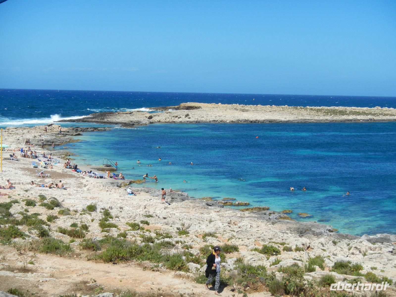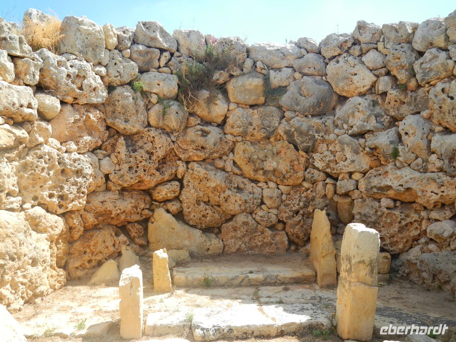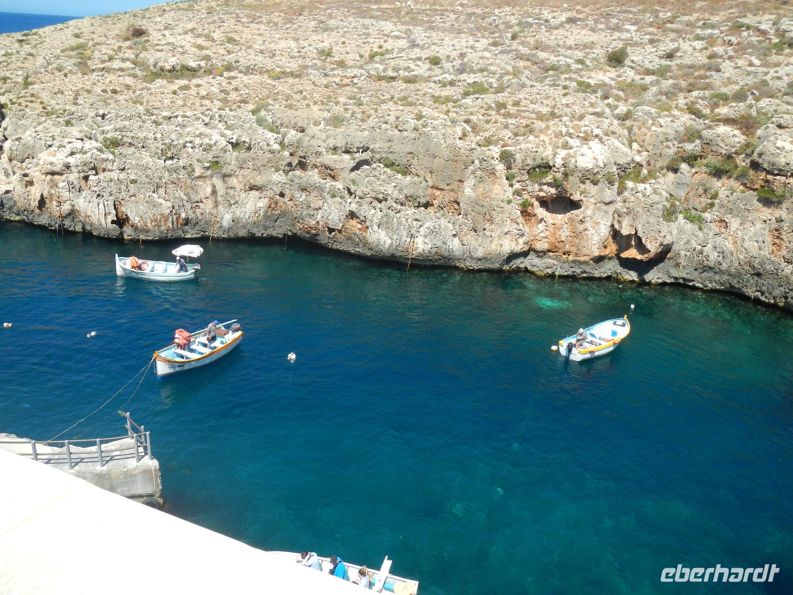 Weiter geht unsere Zeit- und Geschichtsreise auf den Felsvorsprung der Calypso Grotte mit dem Ausblick über die Bucht von Ramla Bay. Einer Sage nach hielt die Nymphe Calypso den umherirrenden Seefahrer Odyseeus 7 Jahre in dieser recht unscheinbaren Höhle fest. Ob das gemütlich war?