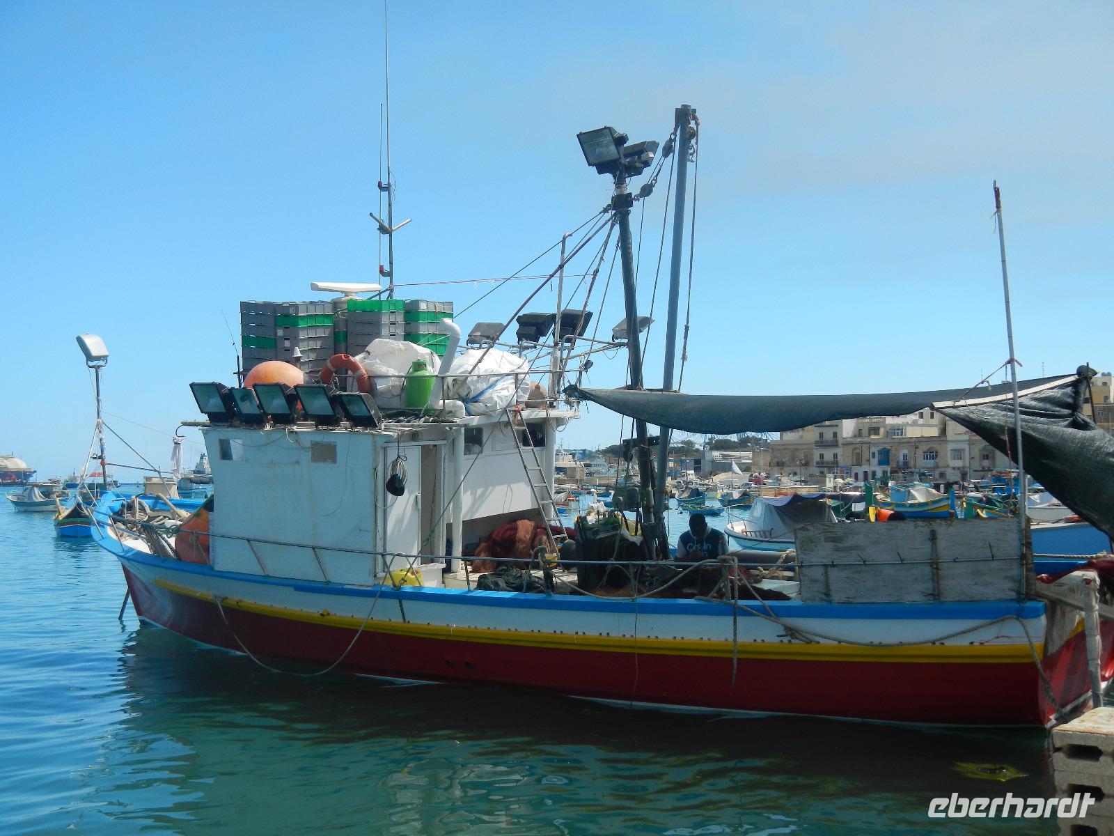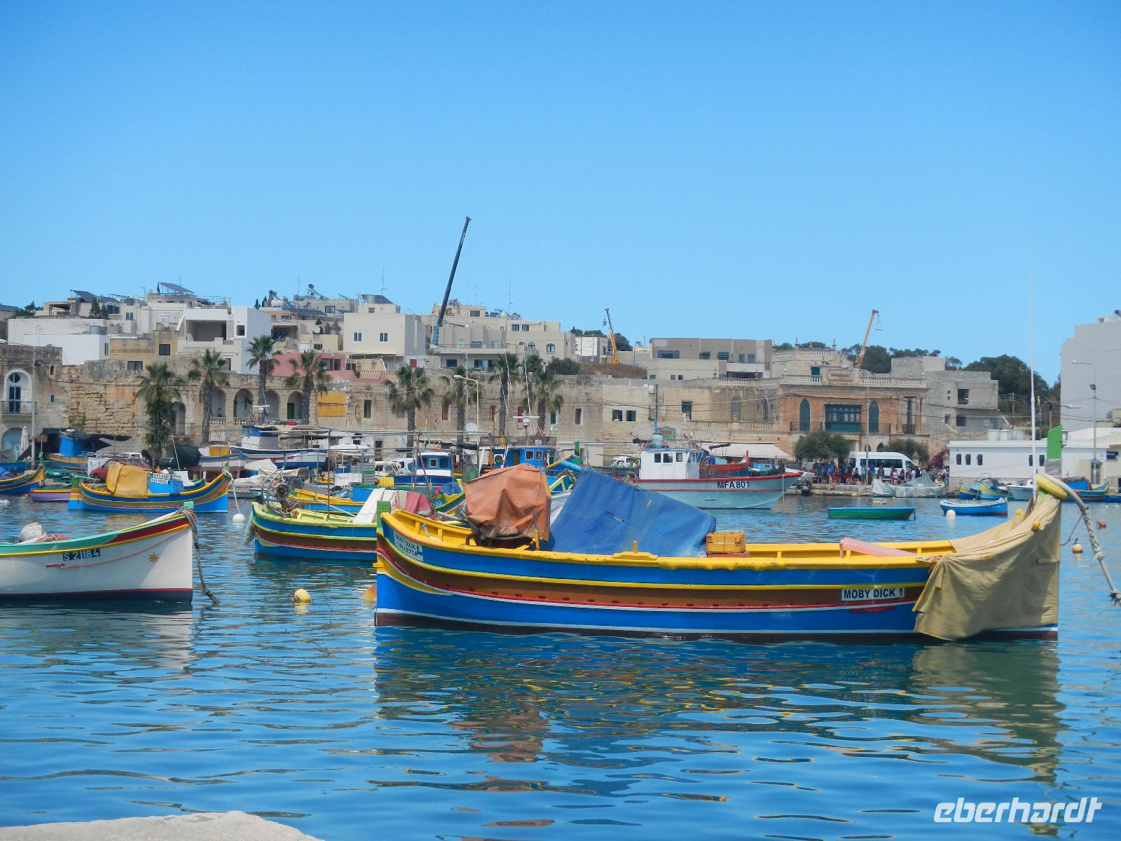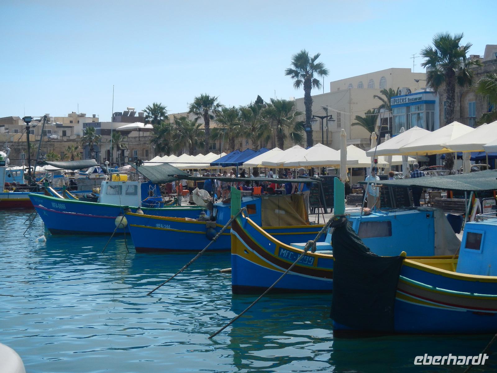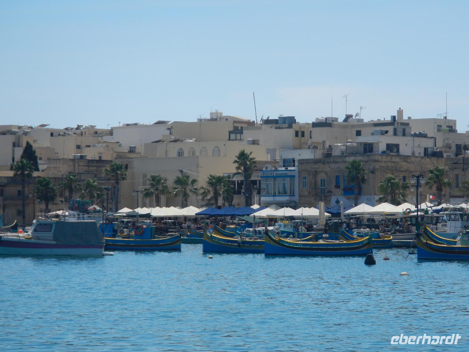 Auch erfahren wir, daß Malta nicht immer eine Insel war, denn in Ghar Dalam - "Höhle der Finsternis" wurden zahlreiche Tierknochen u.a. von Rotwild, Braunbären, Füchsen u.s.w., sowie erste Siedlungsspuren- also Werkzeug zutage gefördert. Ein malerisches Ambiente begrüßt uns in dem Fischerort Marsaxlokk (ausgesprochen: marsa-schlock) und bedeutet "Hafen des Südostwindes". Im Hafenbecken schaukeln eine Vielzahl an farbig gestalteten Fischerbooten, den Luzzi mit ihren am Bug befindlichen Augen. Diese sollen den Fischer vor den bösen Blicken des Teufels schützen. Voller Eindrücke über den ersten Urlaubstag fahren wir zurück nach Qwara in unser schönes Hotel.