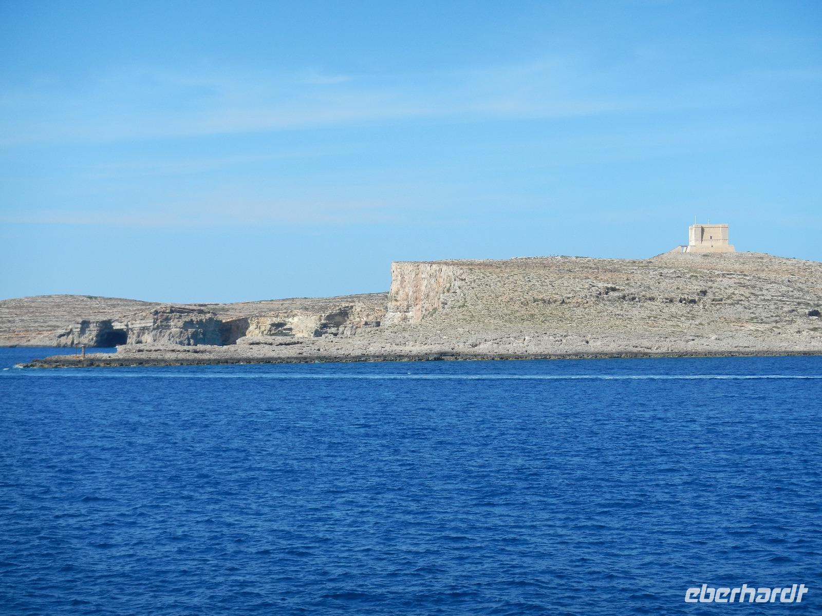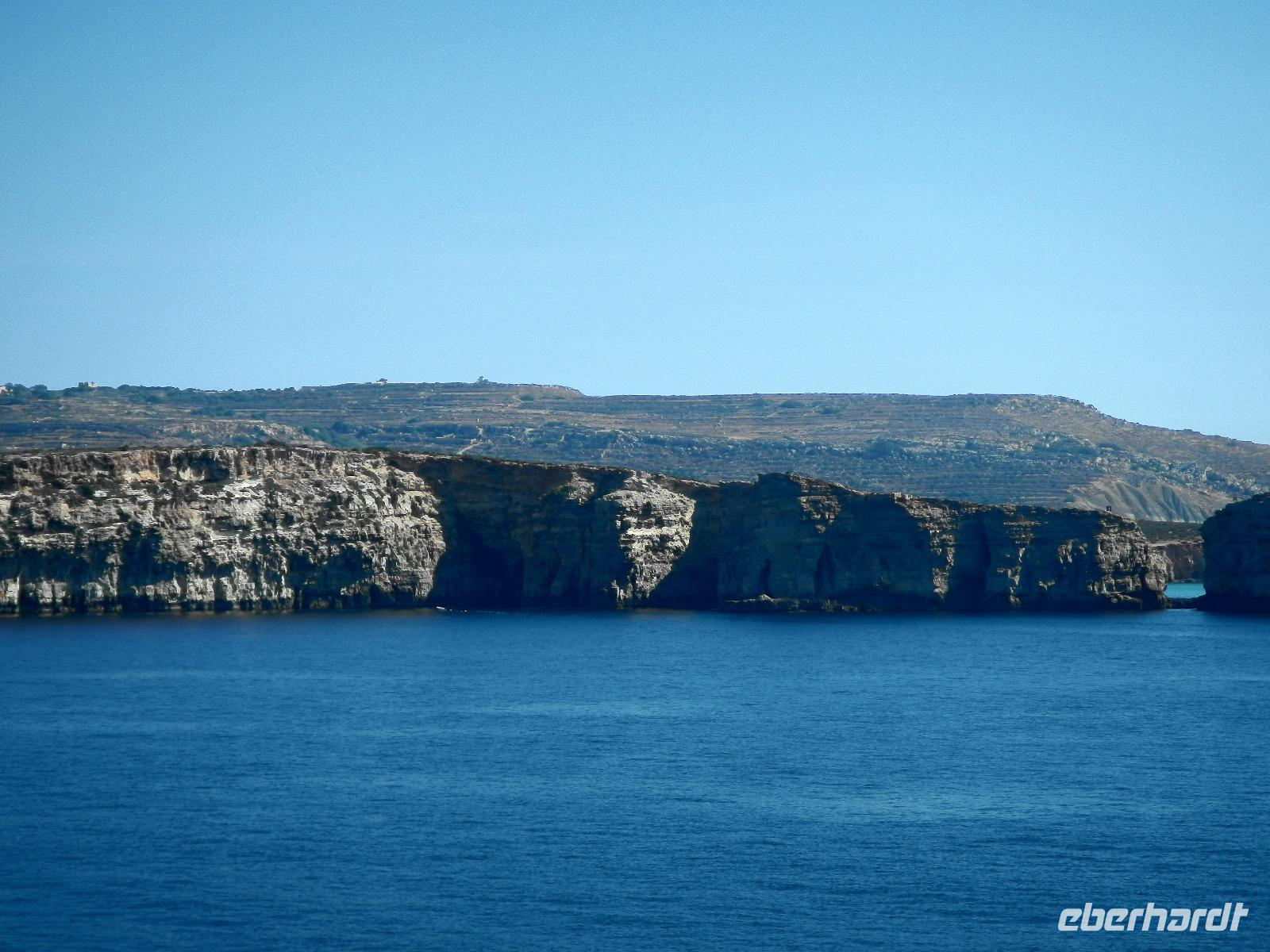 Zunächst fährt uns unser Chauffeur Paul an diesem wunderschön sonnigen Sommermorgen an die im Süden der Insel befindliche Klippenküste von Dingli mit dem Blick bis zur in der Ferne liegenden "Schwiegermutterinsel".