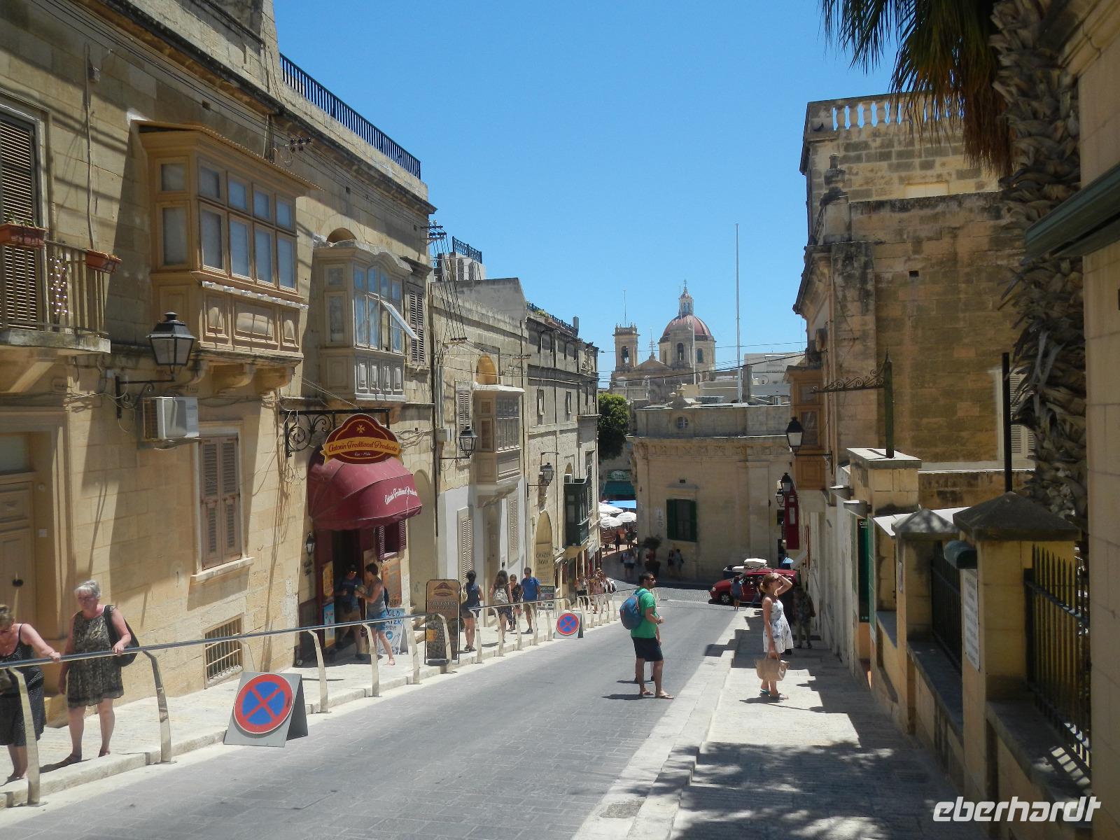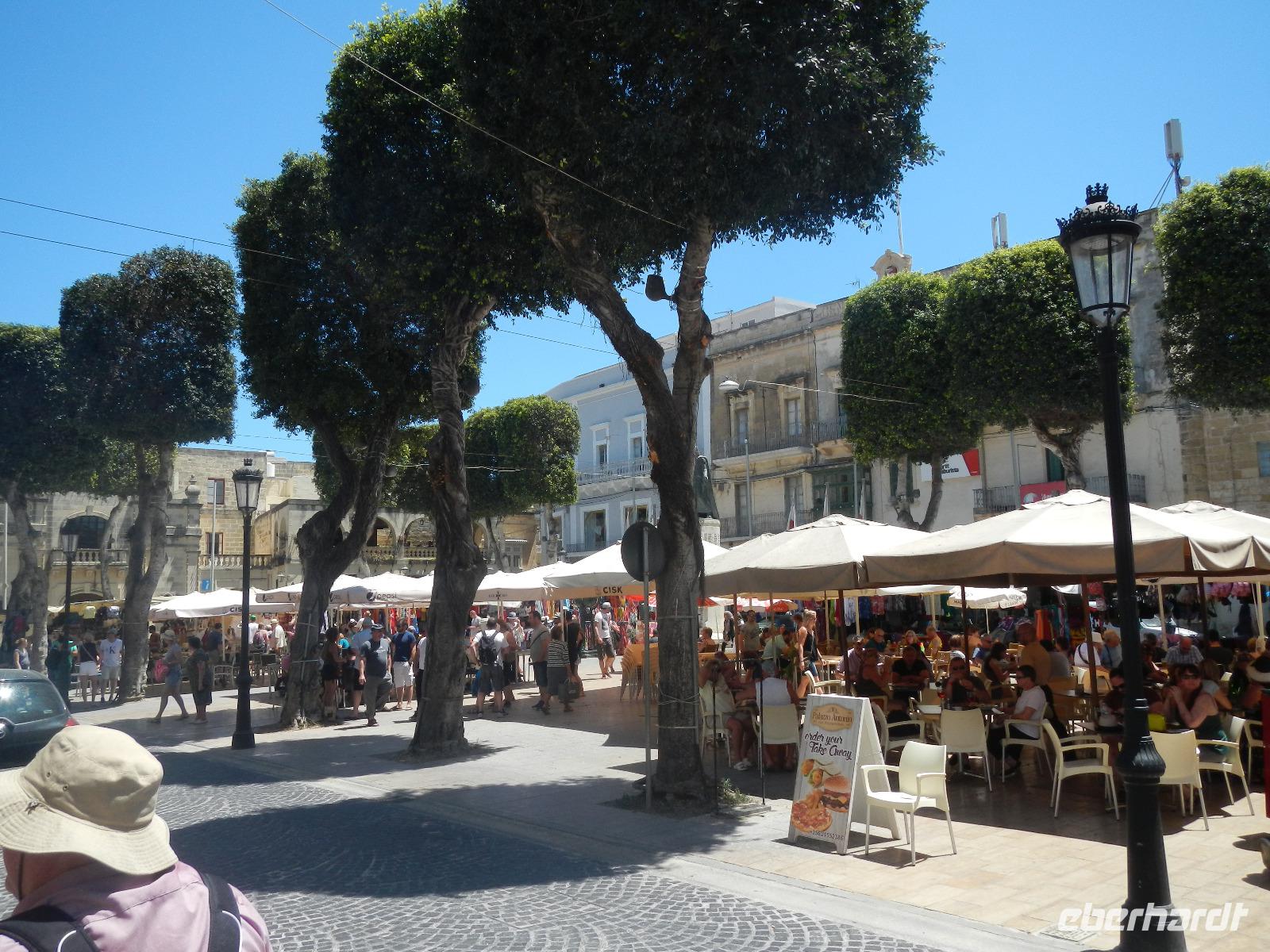 Es ist schon wieder Mittagszeit und der kleine Hunger meldet sich. In der romatisch gelegenen Bucht von Xlendi (ausgesprochen: schlendi) genießen wir Süßes, Herzhaftes und erfreuen uns der warmen Sonnenstrahlen und des schimmernden, klaren Meeres. Den Abschluss unseres Besuches auf der Insel Gozo ist der Besuch des Hauptortes Victoria. Hier spazieren wir hoch zur Festung, die von den Johannitern wiedererbaut wurde. Beeindruckt schlendern wir über die Festungsmauer und genießen eine einzigartigen Blick über die Landschaft. Einige von uns bevorzugen es, sich unter den im Schatten befindlichen Markttreiben nach Souvenirs Ausschau zu halten. Pünktlich führt uns Anita zurück zum Hafen.