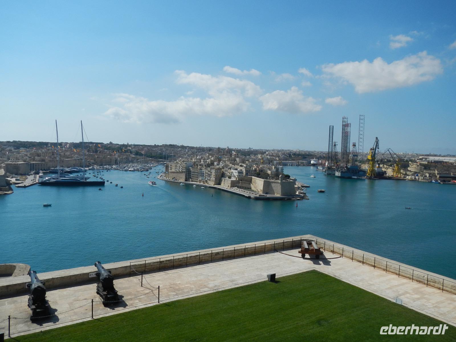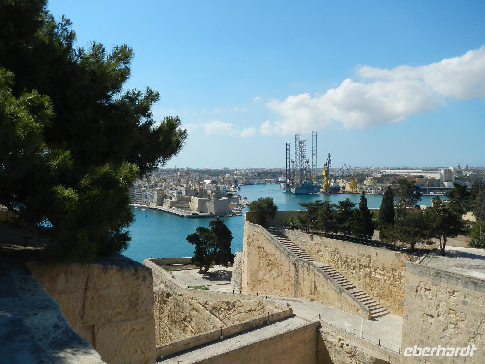 Am heutigen Tag haben wir die „drei alten Städte" Senglea, Vittoriosa und Cospicua angeschaut. Von einem Aussichtspunkt in Senglea konnten wir auf der gegenüberliegende Seite Vallettas Barakka Gärten betrachten und die Blicke über das riesige fjordartige Hafengelände schweifen lassen. Die 3 Städte sind von mächtigen Schutzwällen umgeben.