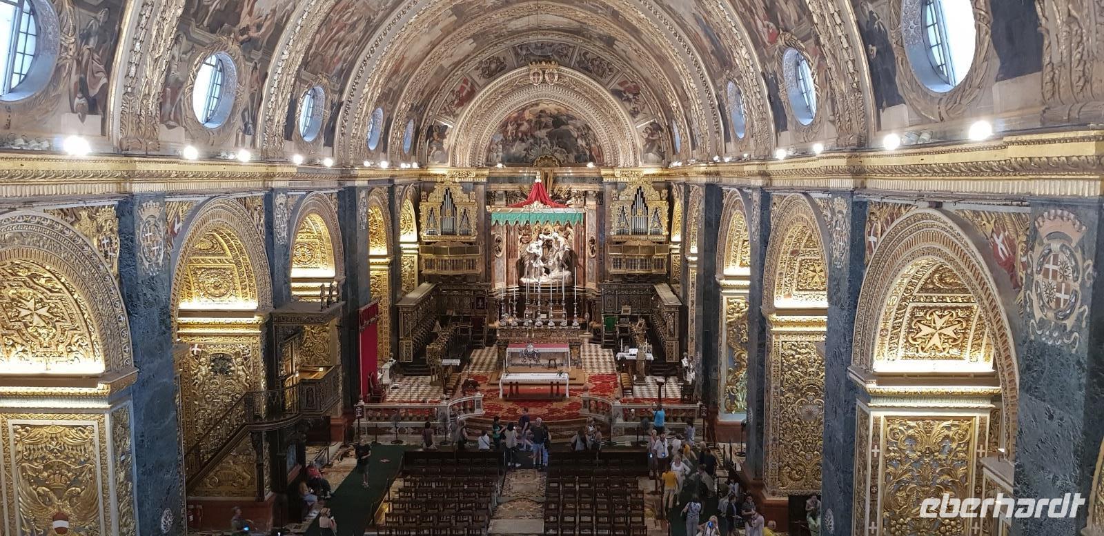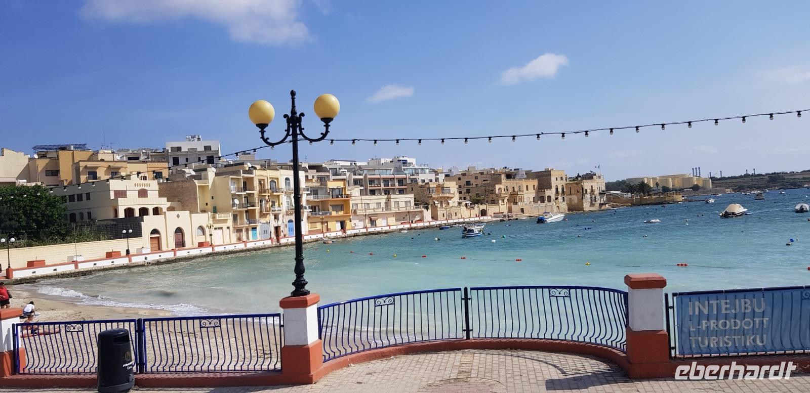 Valletta ist die Hauptstadt von Malta. Sie steht komplett unter dem UNESCO Weltkulturerbe Schutz. Wir gehen zu Fuß durch die Stadt. Vom Upper Baracca Garten aus bietet sich ein fantastischer Blick auf den Hafen von Valletta. Es ist einer der schönsten Naturhäfen in Europa. Dann geht es weiter durch die Stadt zur St. John´s Co-Kathedrale, deren Inneres mit wertvollen Bildern und Skulpturen und ca. 400 Marmorplatten, die als Grabstellen für Ritter dienten, geschmückt ist - ein tief beeindruckender Anblick. Und dann schlendern wir mit Gerlinde weiter durch die Stadt und bestaunen das eine oder andere Gebäude der Stadt.Am späten Nachmittag treffen wir dann in unserem Hotel SALINI Resort an der Salina Bay ein. Hier ist es etwas ruhiger als in der lebendigen Stadt Valletta. Paula empfängt uns wieder und ist beim Einchecken behilflich. Wir beziehen unsere Zimmer, erkunden schon etwas das Hotel und treffen uns dann zum gemeinsamen Abendessen und einem ersten Kennenlernen.Ein gelungener erster Tag unserer Reise mit vielen schönen Eindrücken geht zu Ende. Heute gehen fast alle gleich nach dem Abendessen in Ihre Zimmer, denn der Tag war recht lang und auch etwas anstrengend.