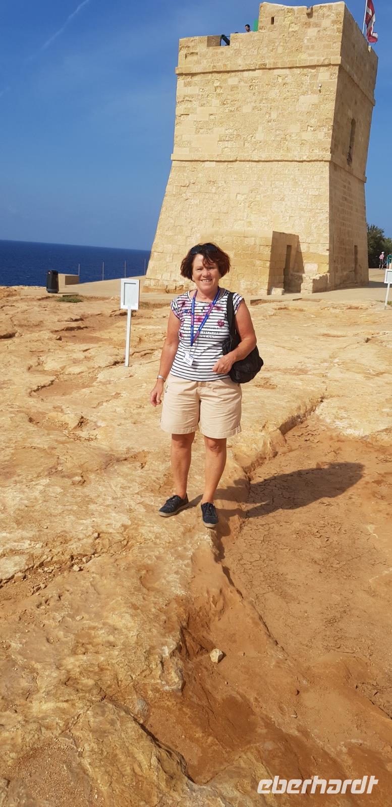 Gerlinde und der Bus holen uns um 9.30 Uhr am Hotel ab und los geht es zur Blauen Grotte. Die Grotte ist nur mit kleinen Booten über das Meer zu erreichen. Leider fahren die Boote heute nicht, da das Meer zu bewegt ist und damit die Bootsfahrt zu gefährlich ist - schade. Aber der Panoramablick von den Felsen über der Blauen Grotte entschädigt etwas. Wir verweilen ein wenig und genießen den herrlichen Blick. Dann setzen wir unsere Rundfahrt über die Insel fort. Wir fahren am Containerhafen vorbei und erreichen das Fischerdorf Marsaxlokk. Hier spazieren wir am Hafen entlang und bewundern die berühmten farbenprächtigen Luzzu-Boote. Einige probieren frisch gefangenen Fisch oder genießen einfach den herrlichen Blick auf den kleinen Hafen mit den bunten Booten. Dann geht es wieder zu unserem Hotel zurück. Wir verabschieden uns von Gerlinde, die uns sehr viel über ihre Wahlheimat Malta erzählt und gezeigt hat. Den Nachmittag verbringen wir im Hotel und genießen die Annehmlichkeiten. Einige erkunden die nähere Umgebung oder nehmen ein Bad im noch sehr warmen Mittelmeer.